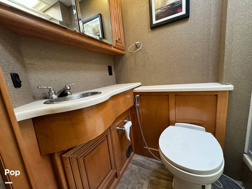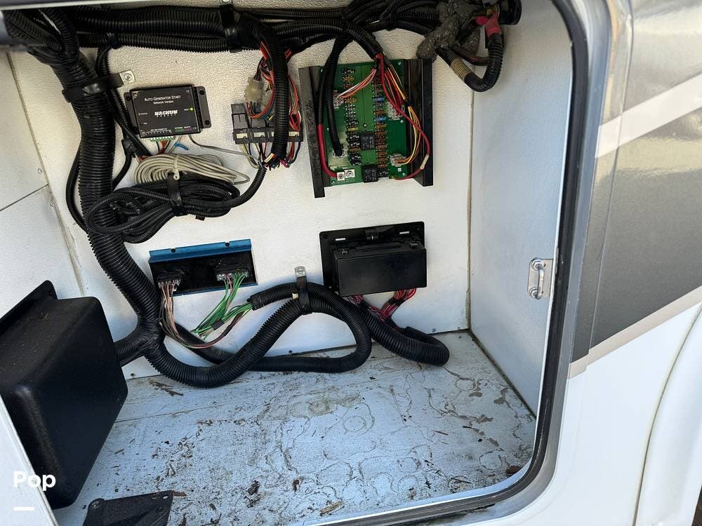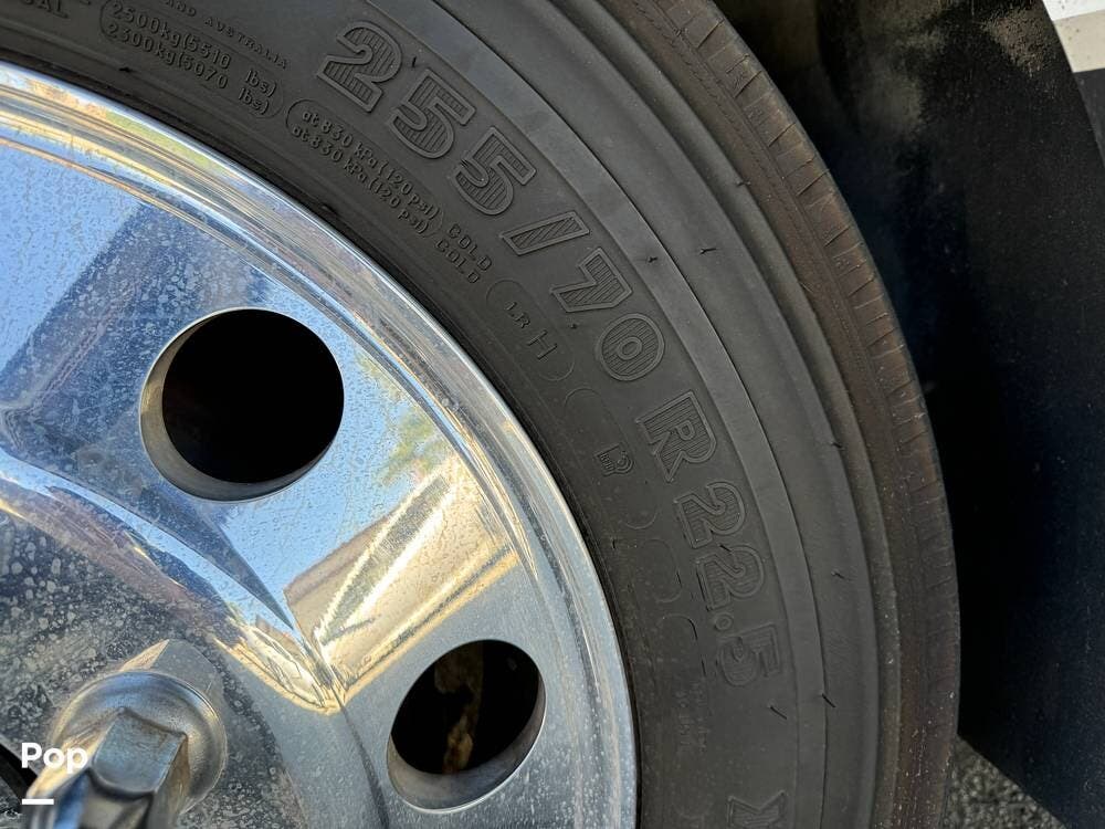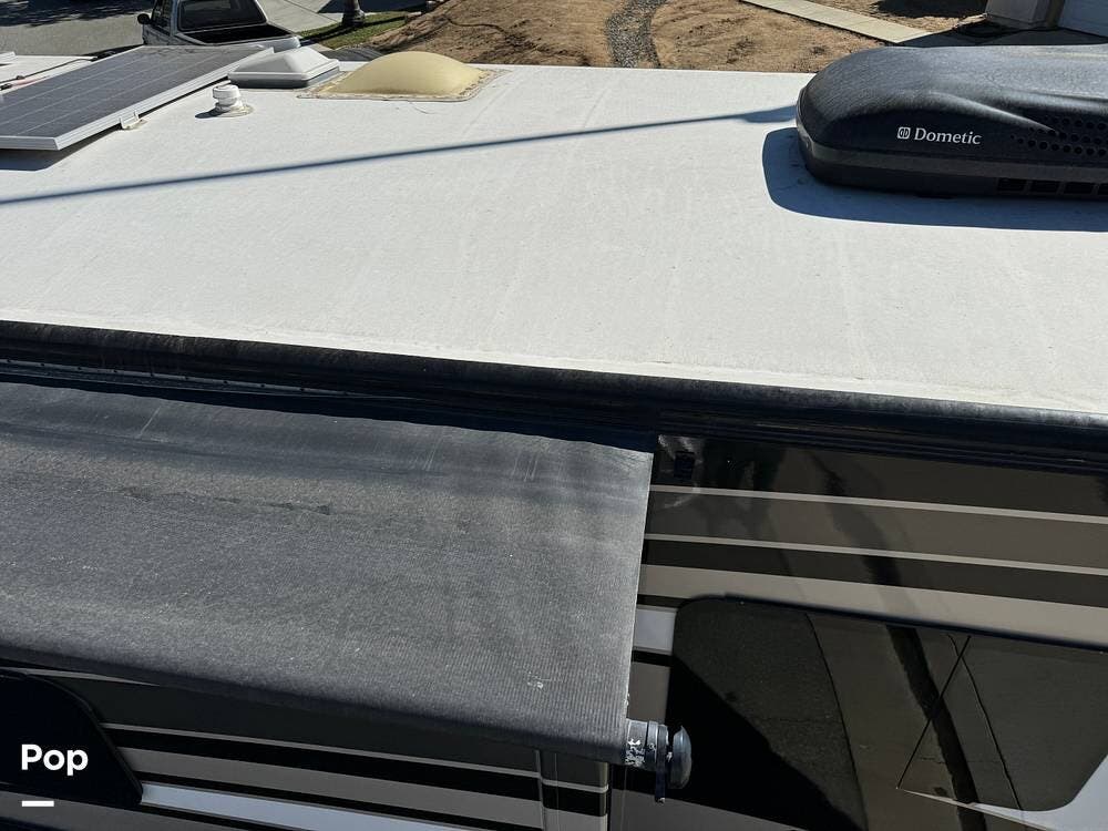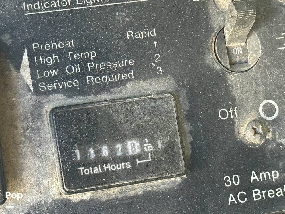 The RV has a Cummins Onan 6.0kW diesel generator, a 50-amp power cord, and dual 13,500 BTU air conditioners for your power needs.