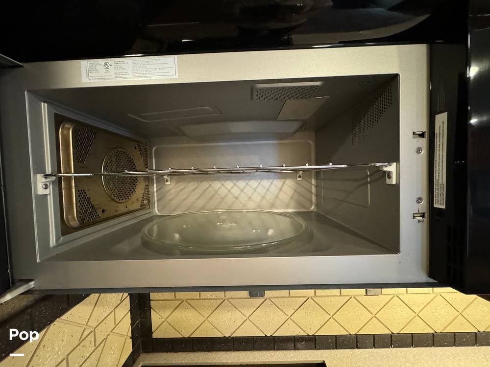 The kitchen boasts a stainless steel residential refrigerator and a microwave convection oven, making meal prep a breeze.