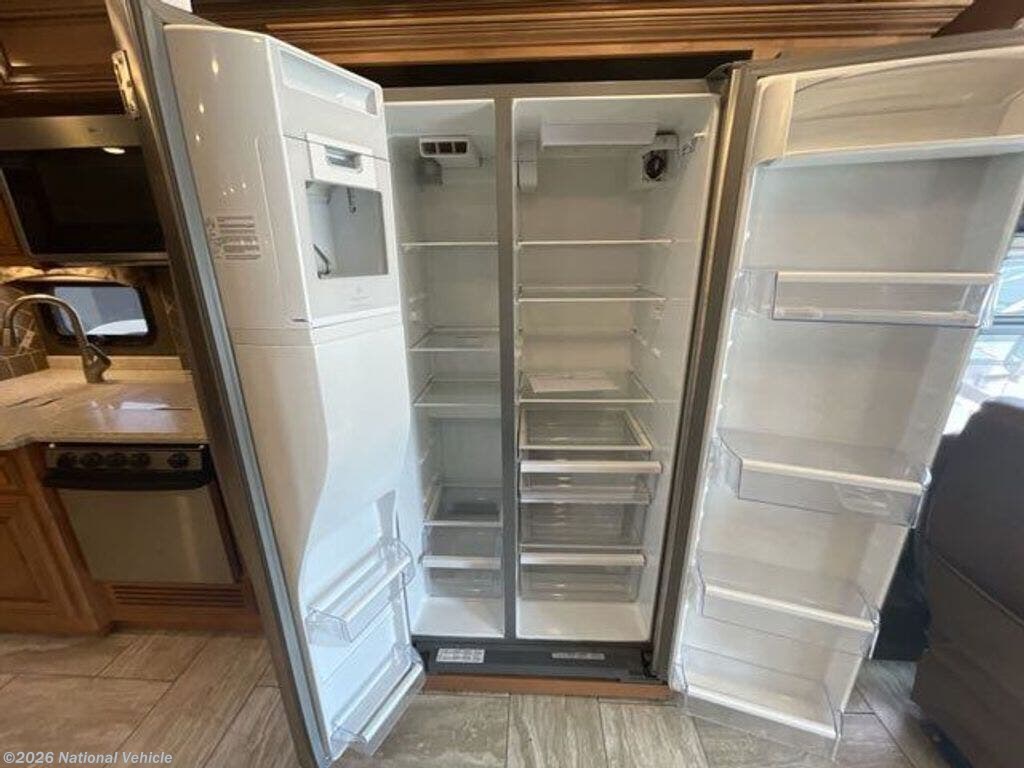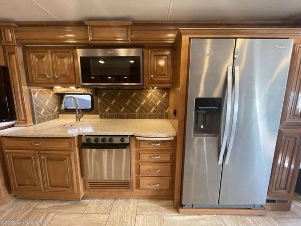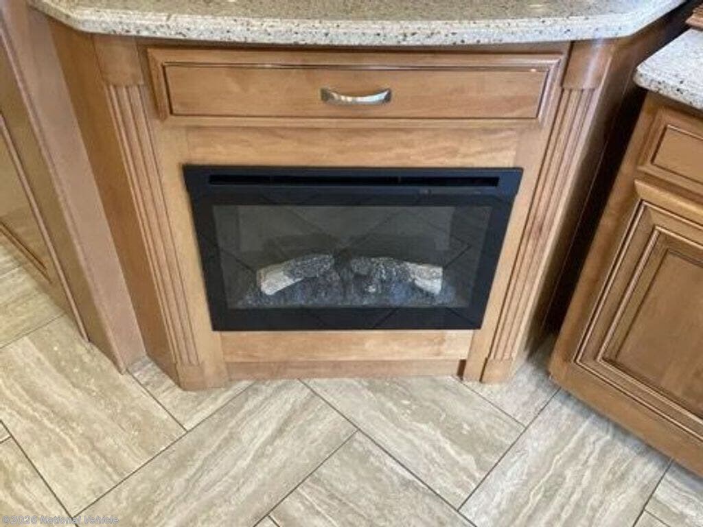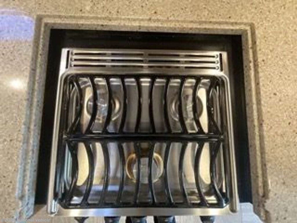 Step inside, and you?re welcomed by elegant high-gloss cabinetry, porcelain tile flooring, and upscale furnishings that create a true home-on-wheels feel. The open living area features dual sofas, a dinette, and a large entertainment center, perfect for relaxing in comfort. The gourmet kitchen is equipped with polished solid-surface countertops, a residential refrigerator, propane cooktop, microwave, and ample storage for extended stays.