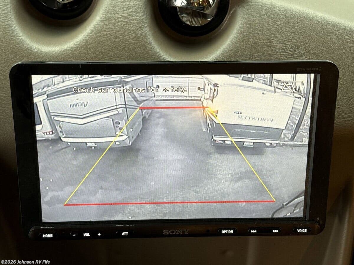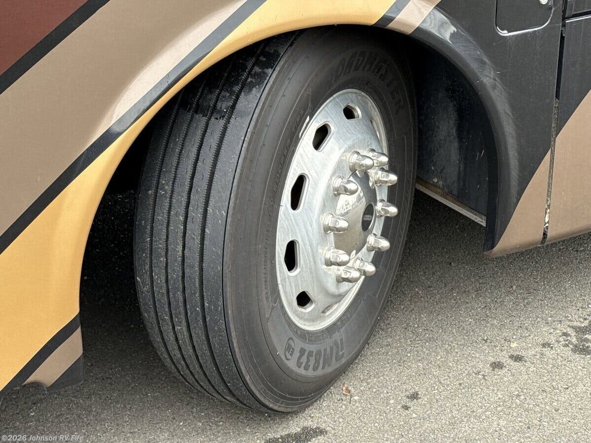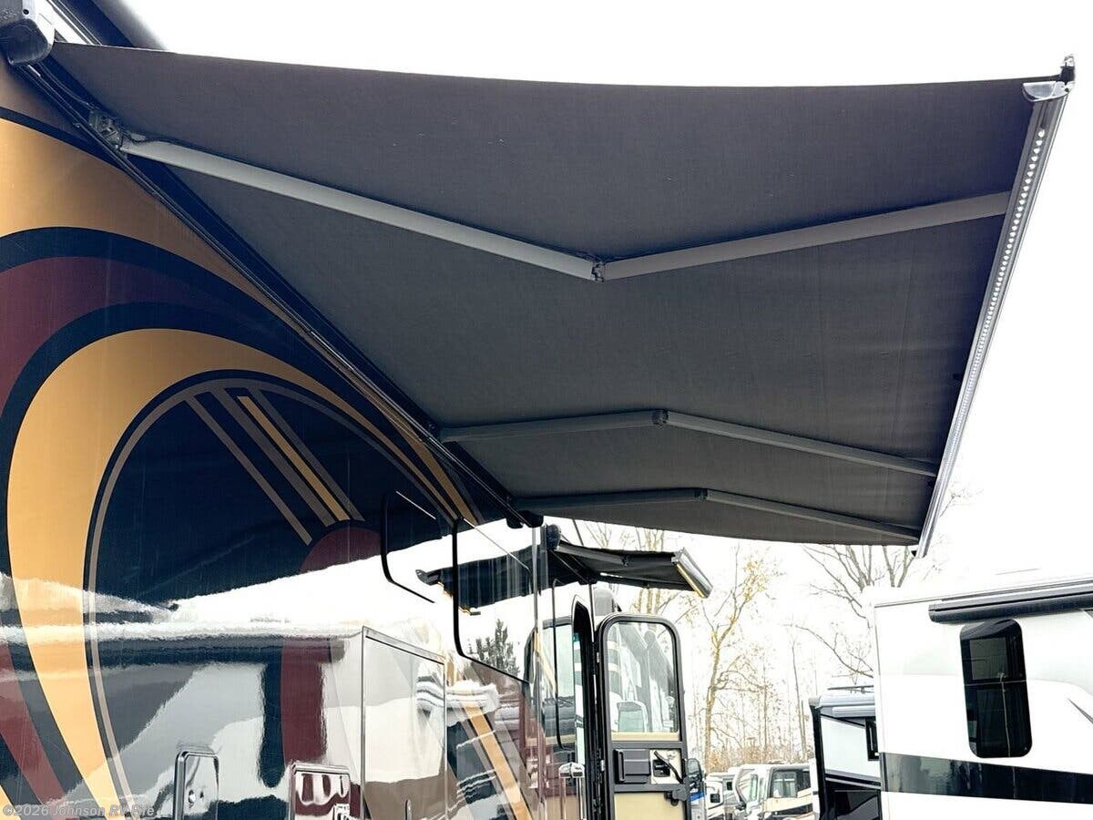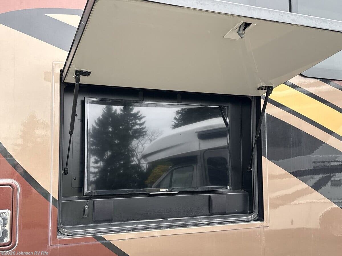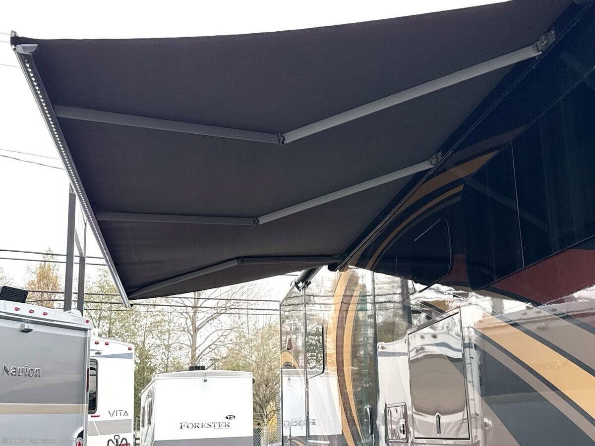 Features Include: 100-Gal Fuel Tank, Air Ride Suspension, Exhaust Brake, Aluminum Wheels, 10000# Hitch, Air Horn, Driving Lights, Fog Lights, Cab Features, Living Spaces, Electric Step Cover, LED Accent Lighting, Entertainment Center, Buffet Dinette (vbm), Pantry, Designer Backsplash, High-Rise Faucet, 3-Burner Gas Cooktop, Systems Center, Large LED HDTV, Blu-Ray Home Theater, Overbed Storage, Reading Lights, King Bed 72x80, Pillowtop Mattress, Nightstands, Wardrobes, Dresser Drawers, 32-inch LED HDTV, Two 13-inch LED TVs, DVD Player Bathroom, Medicine Cabinet, Vanity Sink, Linen Storage, Porcelain Toilet, 126# LP Capacity, Four House Batteries, 50-Amp Service Cord, 100-Amp Converter, 2000w Inverter, EZ Flow Water Panel, 10-Gal DSI Hot Water, Welded Aluminum Cage, Fiberglass Laminate, Seamless TPO Roofing, Roof Access Ladder, LED Accent Lighting