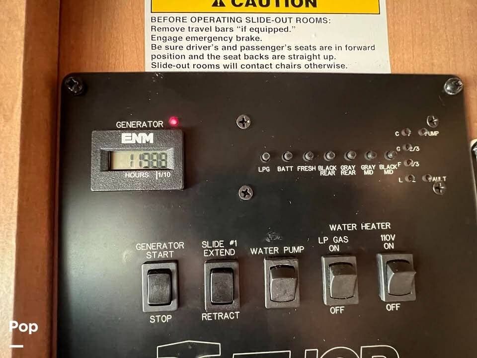 The coach features a big 5500 generator and plenty of propane capacity to go off the grid for a good while.