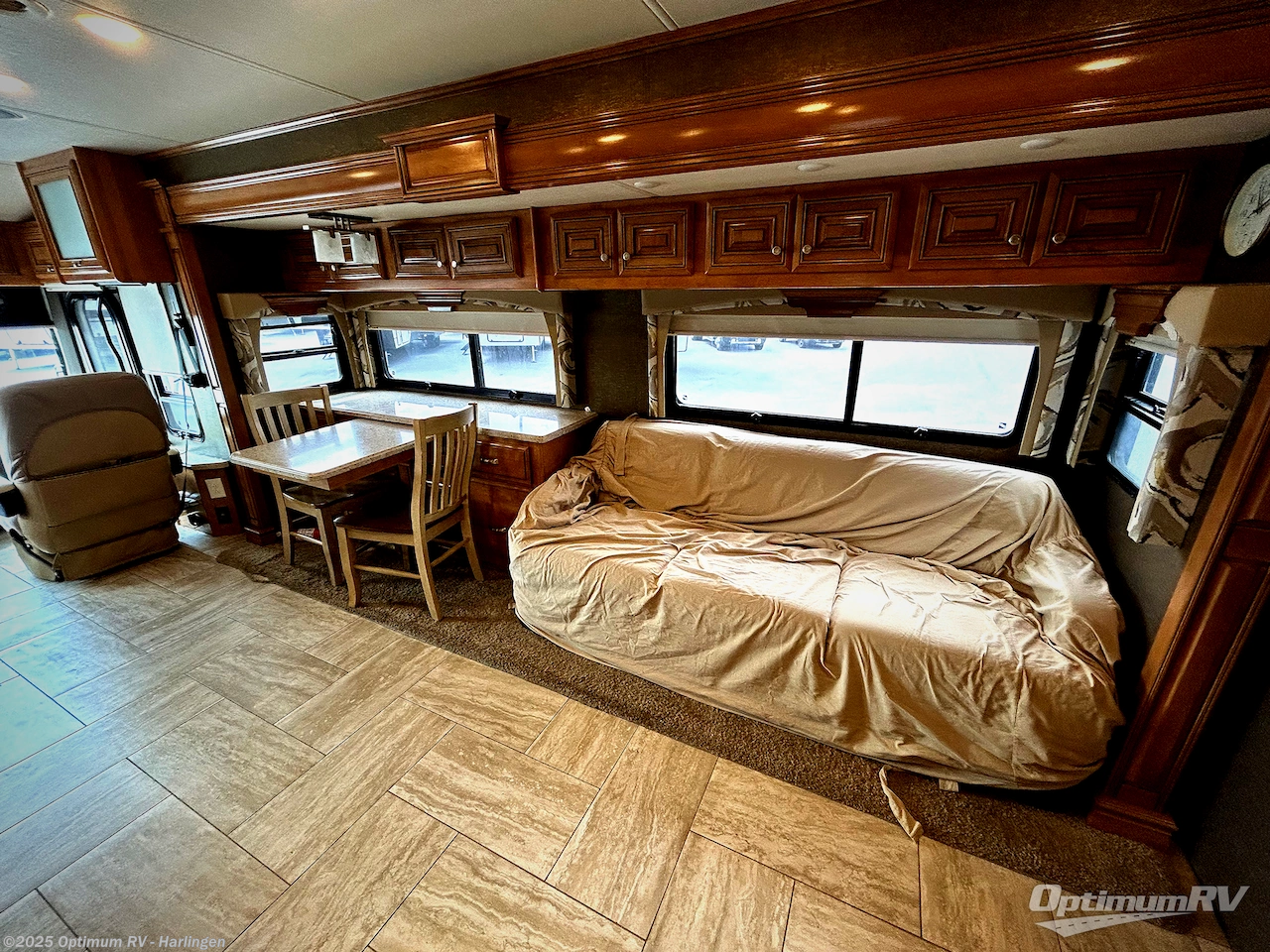 As you enter the coach, a generous slide to your left holds a buffet dinette and an expanding sofa with air bed. You may choose an optional dream dinette in place of the buffet dinette. When choosing the dream dinette option, an exterior TV is not available. You may also choose an optional sofa with queen air bed in place of the expanding sofa.