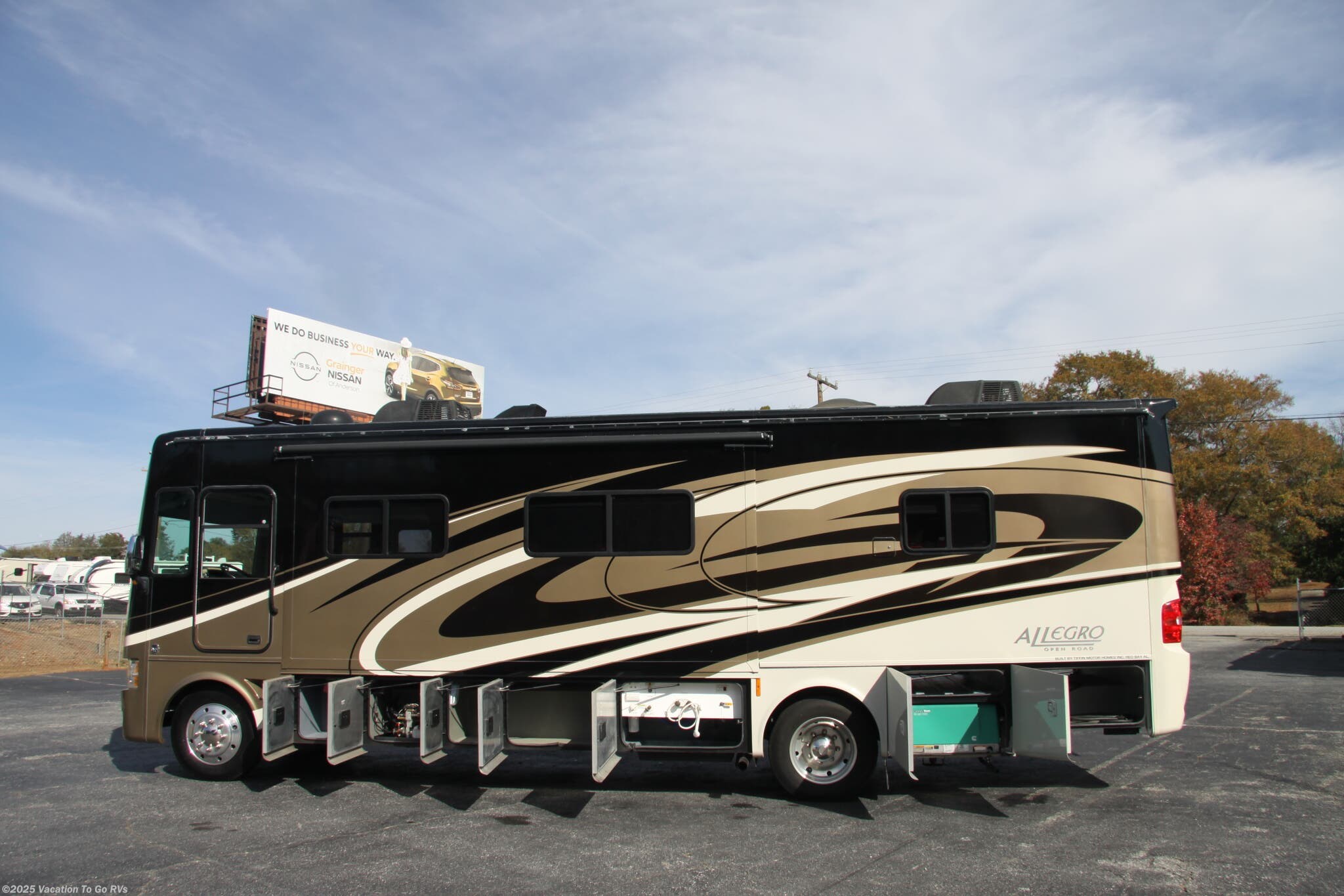 2016 Tiffin Allegro Open Road 32SA – 34' Gas Class A Motorhome on the reliable Ford V10 chassis. This coach features two slides, a spacious interior layout, and Tiffin’s well-known build quality.