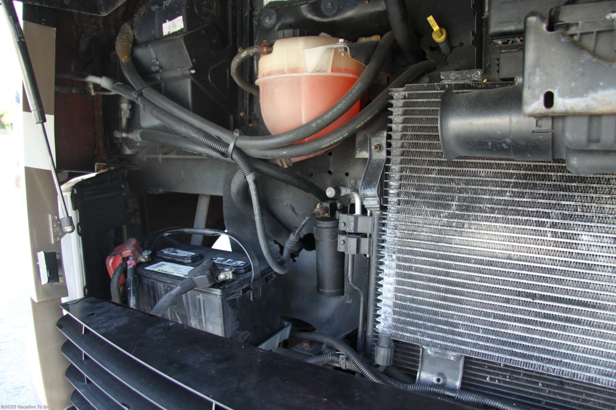 full fuel, full LP, fresh engine oil and filters, generator service with new oil and filter, a thorough 2–3 hour walk-through showing the coach is camping ready, and a temporary tag. There are no additional dealer document fees.