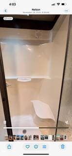 The spacious bathroom includes a large shower with a skylight, vanity, and ample storage. High-end finishes, handcrafted cabinetry, and quality furnishings throughout give the Allegro a residential feel that sets it apart.