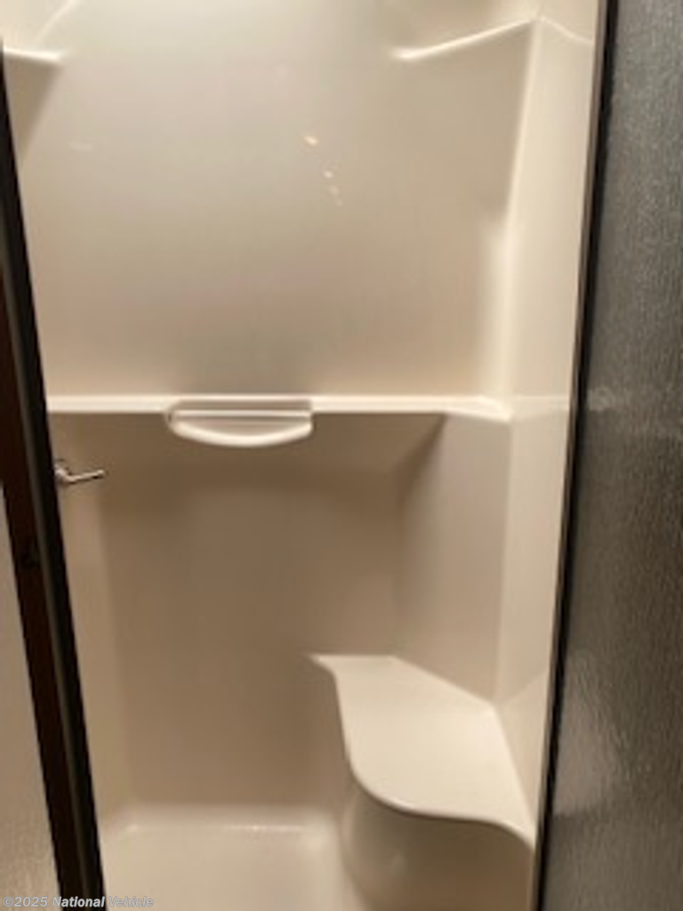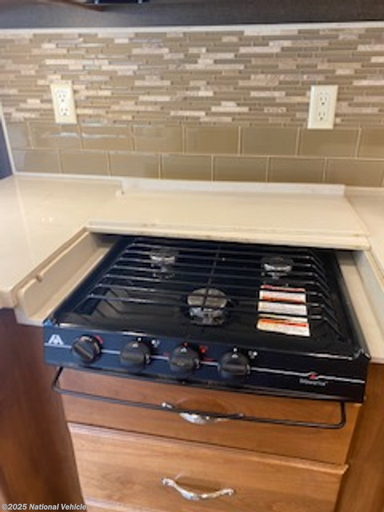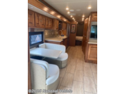 The standout four-slide floorplan creates a spacious, open layout with upscale finishes throughout. The main living area features ultra-leather seating, a fireplace, flat-screen TV, dinette, and solid-surface flooring, giving you the comfort of home wherever you roam. The gourmet kitchen includes solid-surface countertops, residential double-bowl sink, 3-burner cooktop, convection microwave, residential refrigerator, and abundant storage.