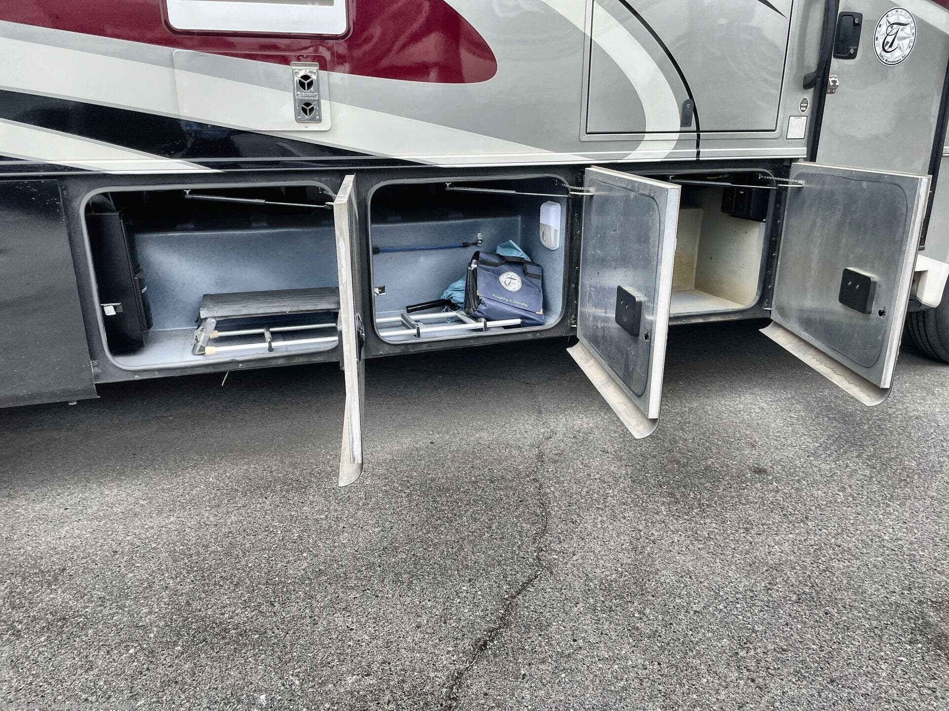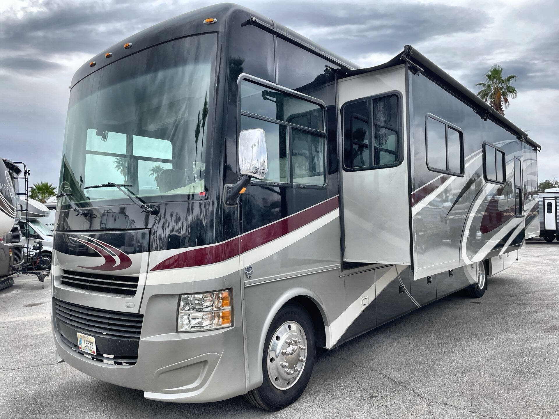 Step into the Allegro 36 LA class A motorhome to find two captain's chairs and overhead cabinets at each side in the front of the coach. You may choose an optional center TV and an optional driver side door.
