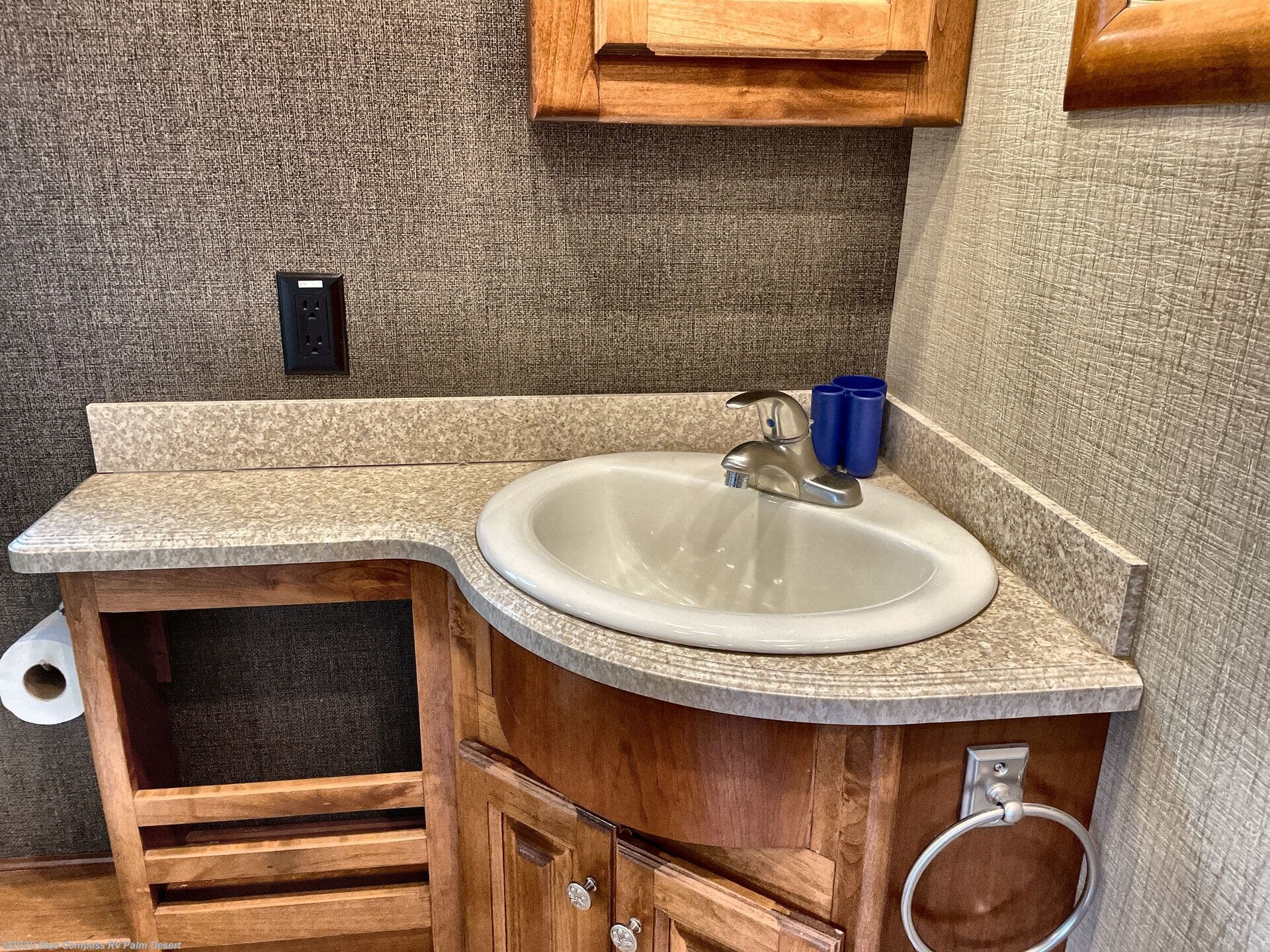 The rear bathroom provides lots of overhead cabinets, a shower, an optional tub, toilet, large corner vanity and sink as well as the option for under counter combo washer/dryer, and more!