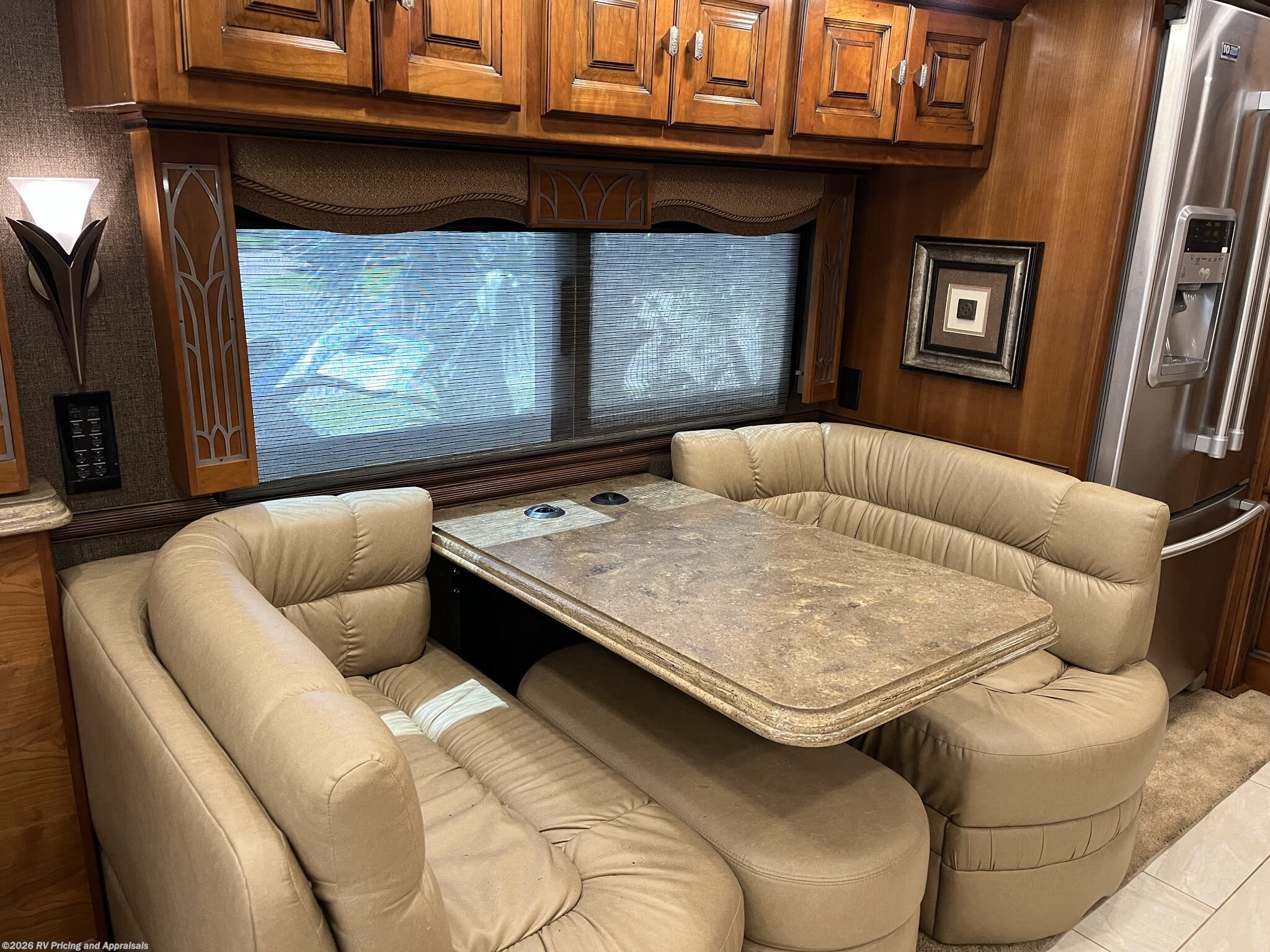 - Living Space: Fireplace above the entertainment center with one recliner; Ultraleather booth dinette, Ultraleather air coil hide-a-bed sofa, king sized bed
