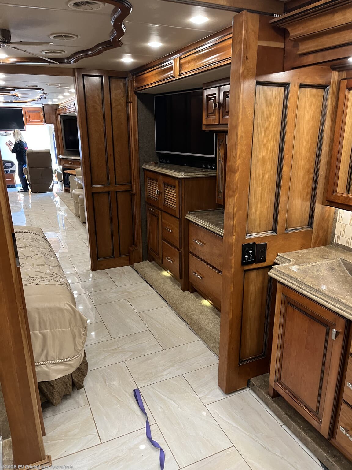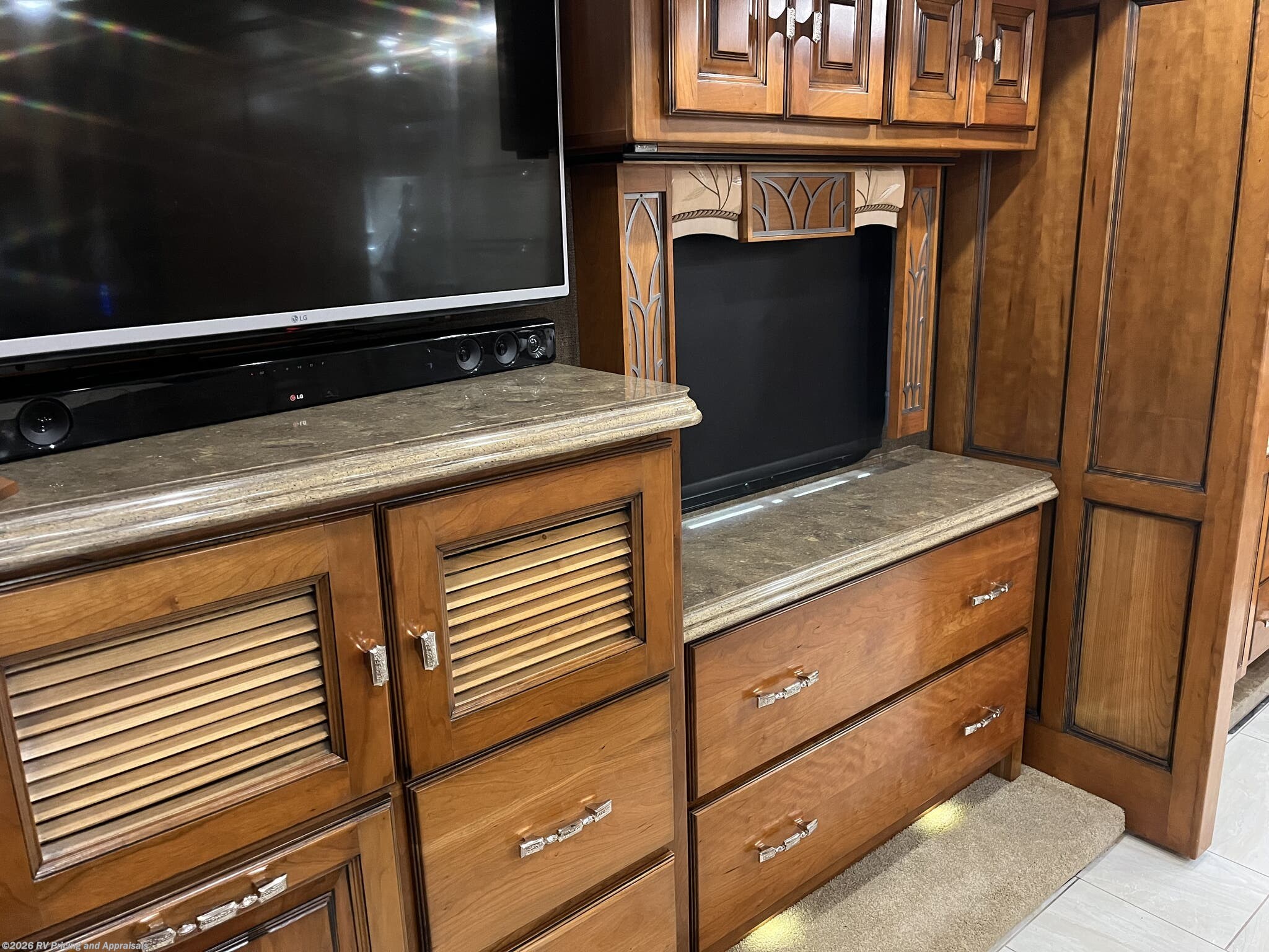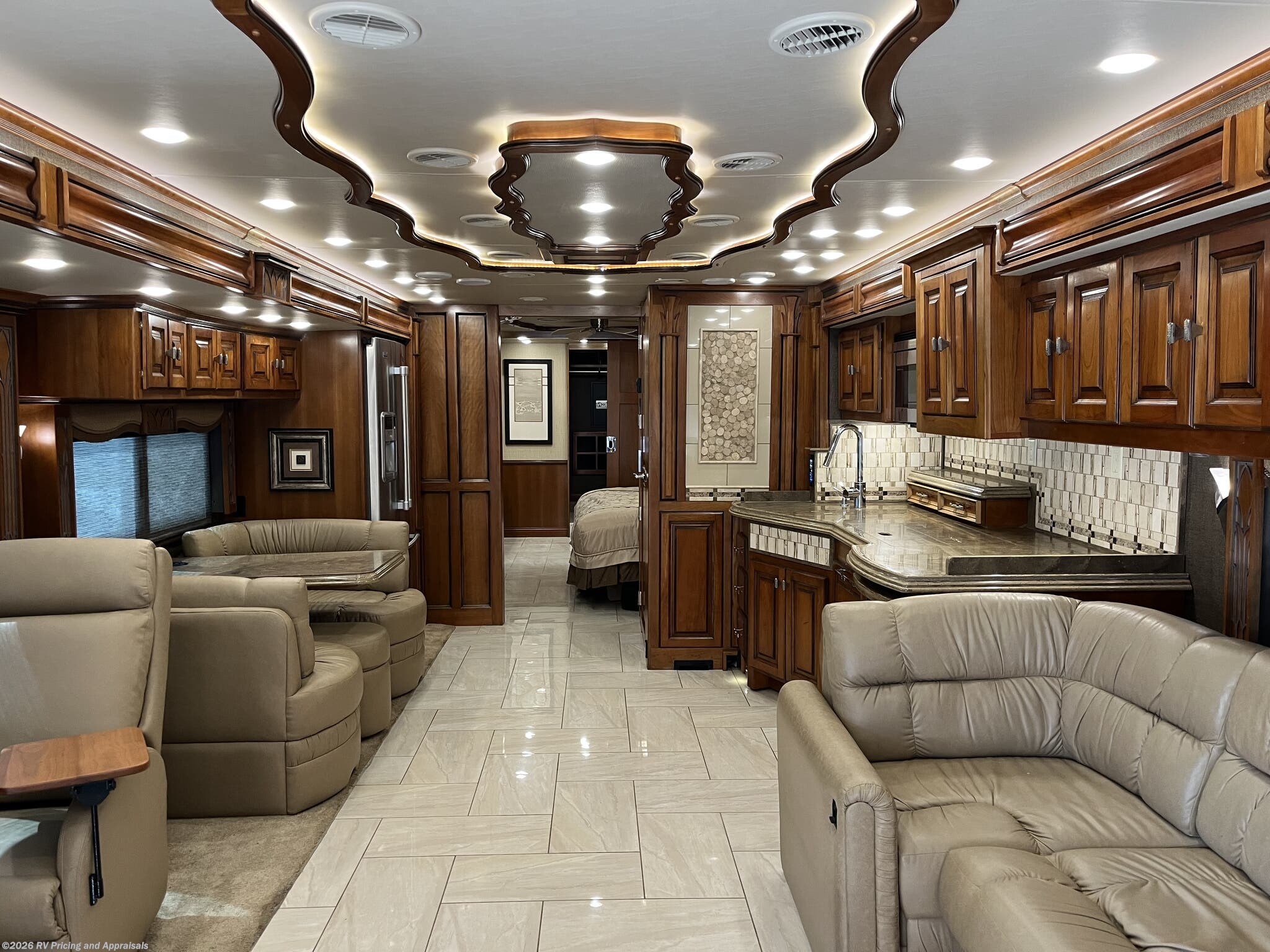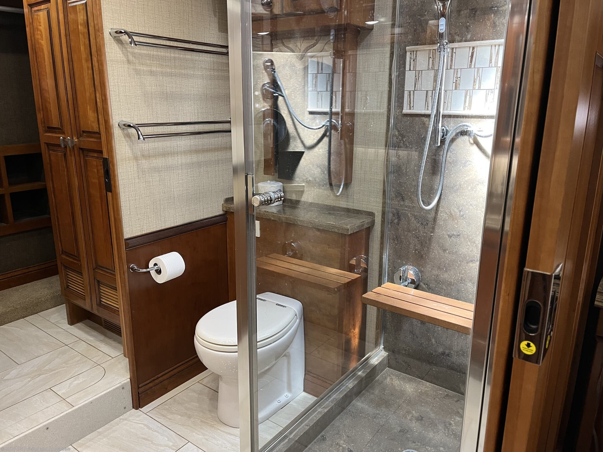 - Comfort and Finish: Bamboo interior with Cherry Wood hardwood cabinets; solid surface counters throughout, dual zone porcelain heated tile floors in living areas