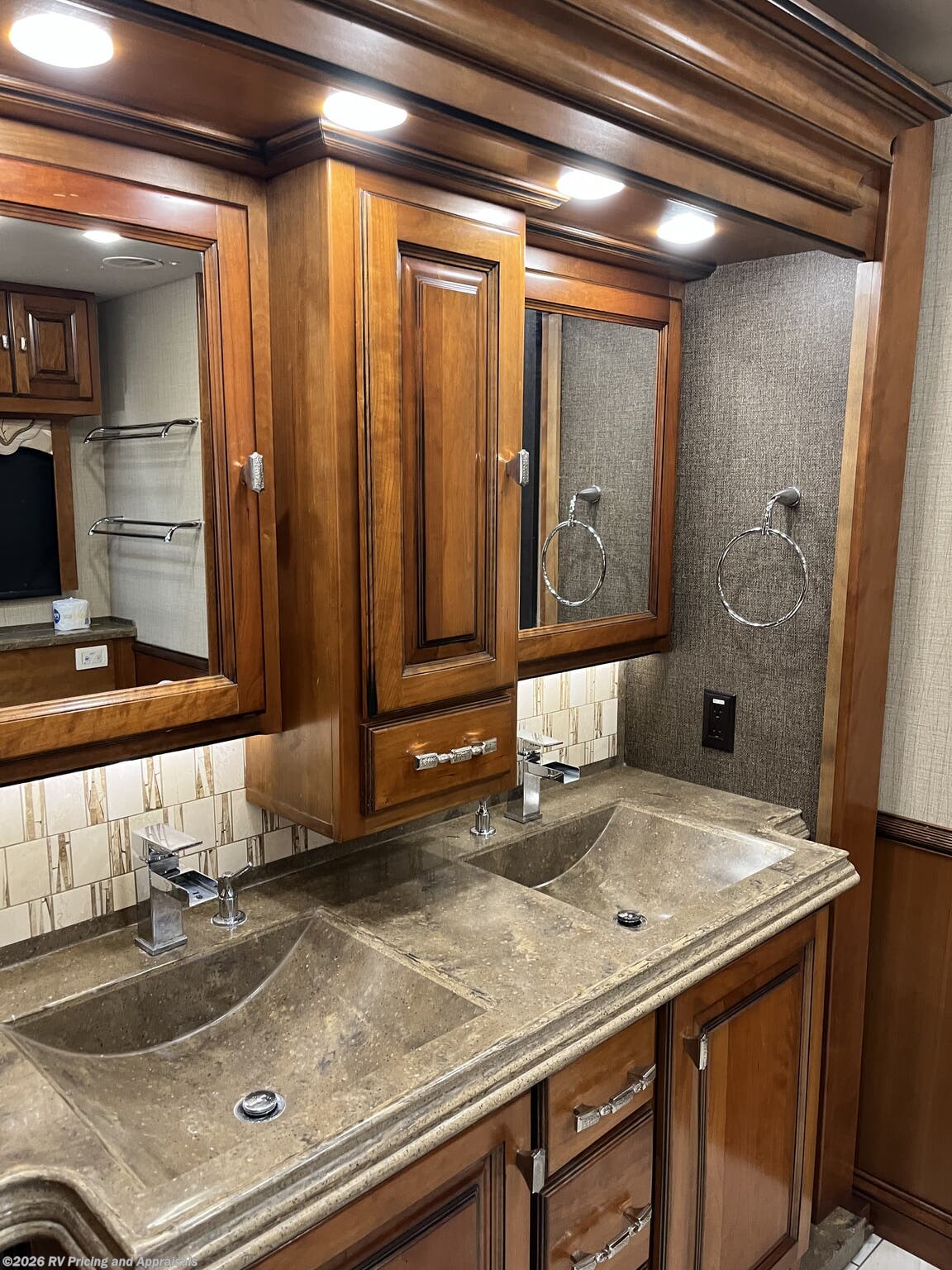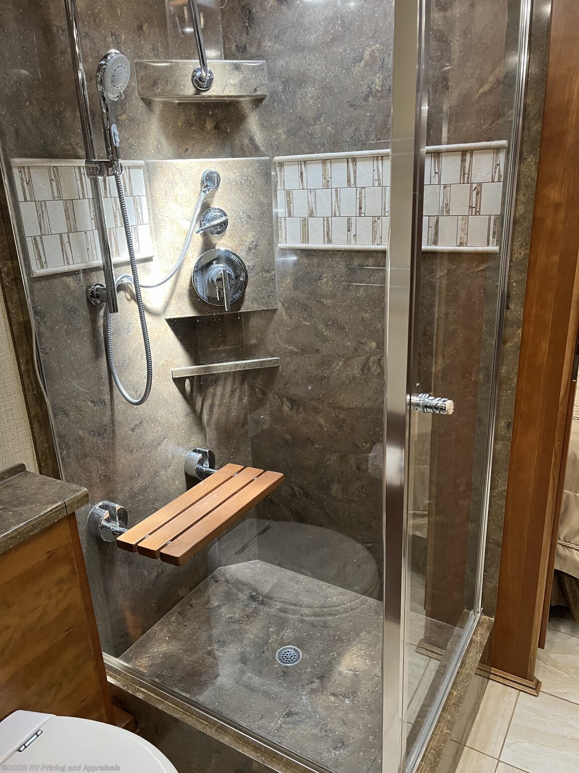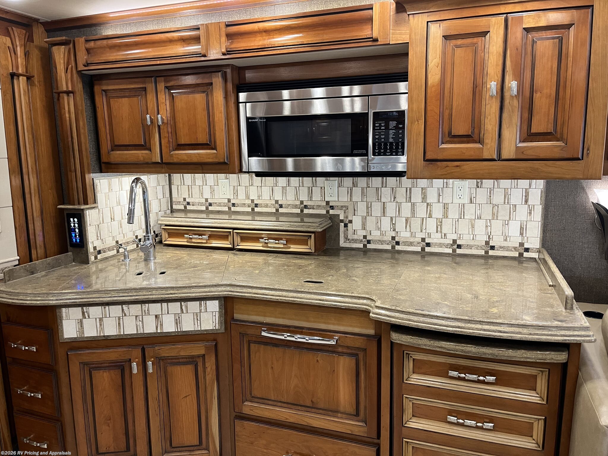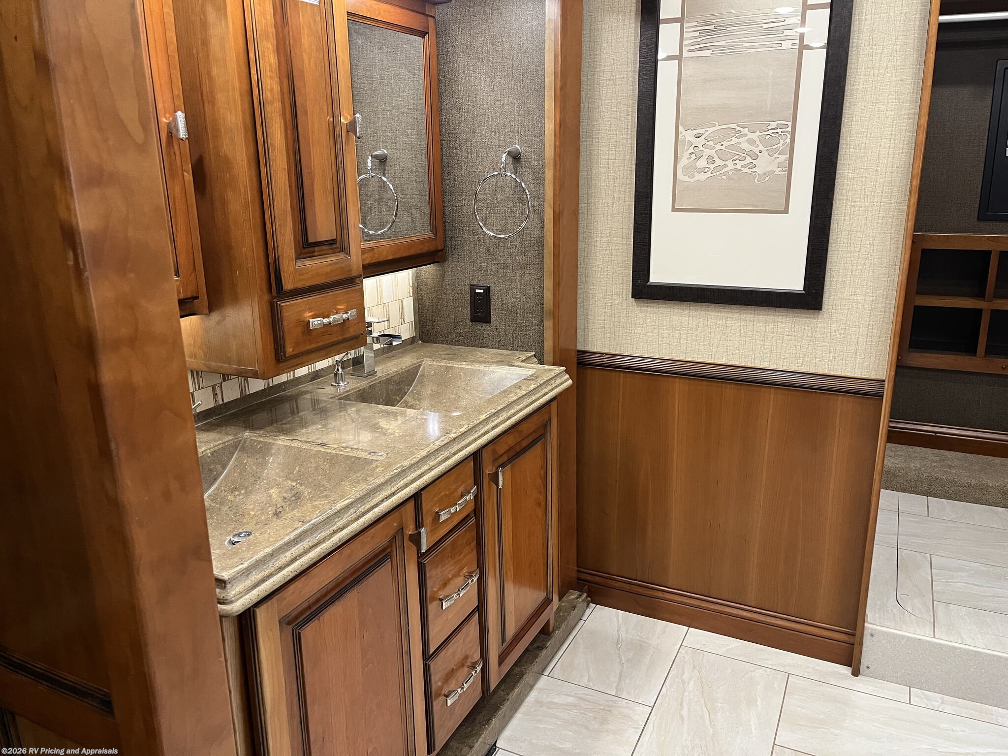 - Comfort and Finish: Bamboo interior with Cherry Wood hardwood cabinets; solid surface counters throughout, dual zone porcelain heated tile floors in living areas