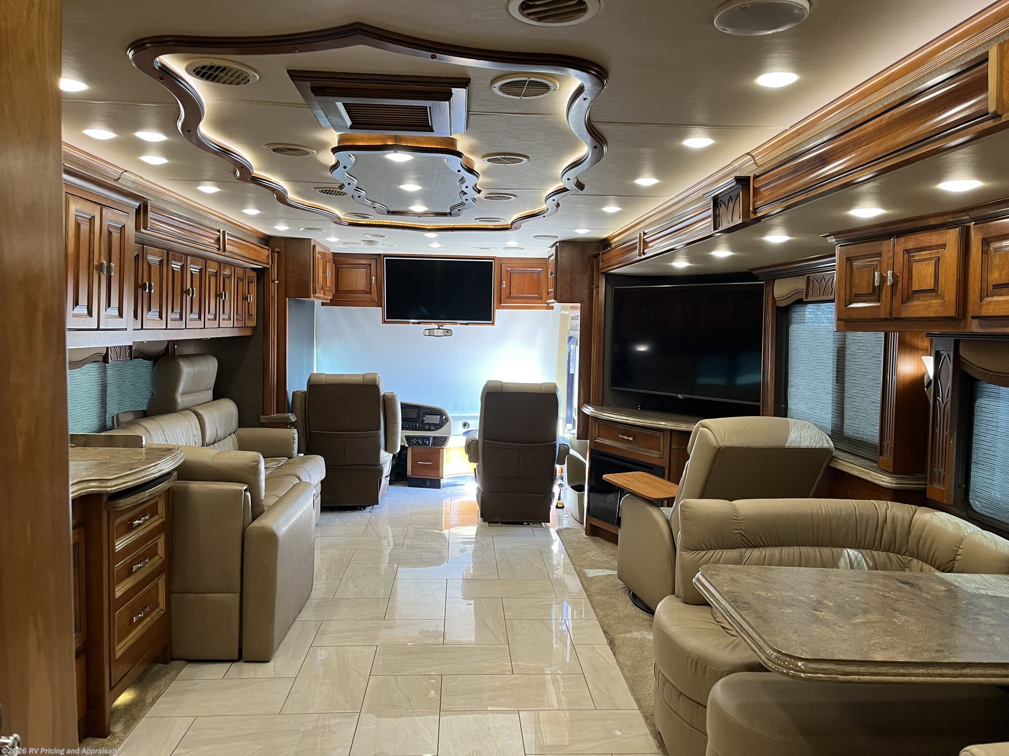 - Climate Control: Three roof-mounted A/C units with heat pumps for year-round comfort, power day/night shades, Energy Management System, Solar Panel