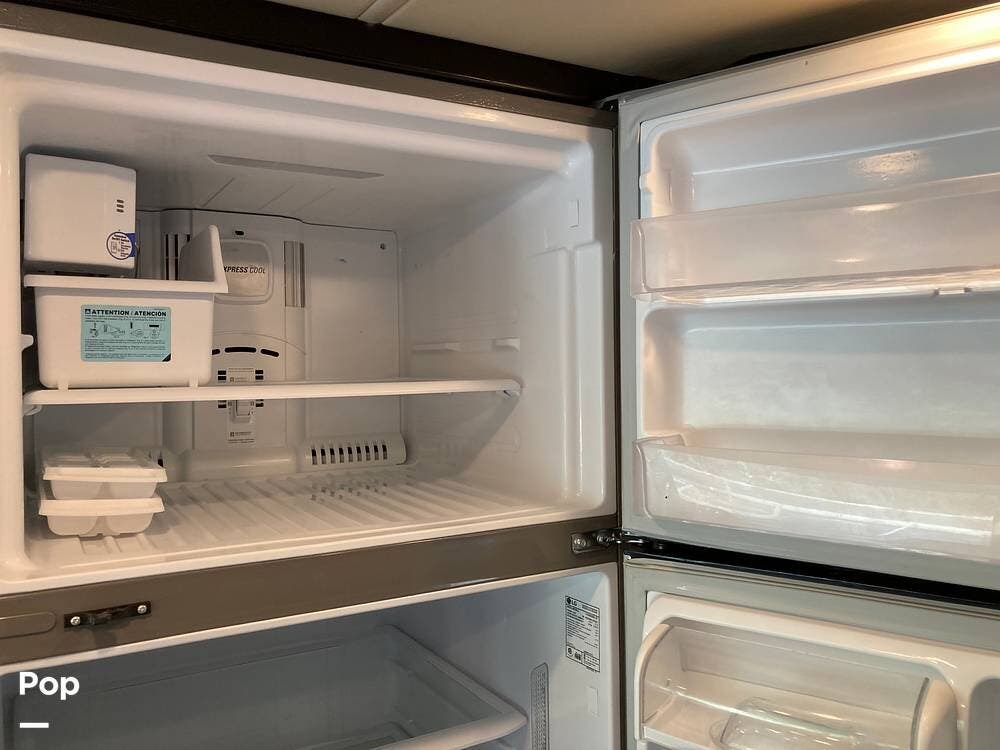 The kitchen is well-equipped with a double sink, a three-burner gas stove top with cover and oven, a residential-size refrigerator/freezer with an ice maker, a pantry, and plenty of drawers and cabinets.