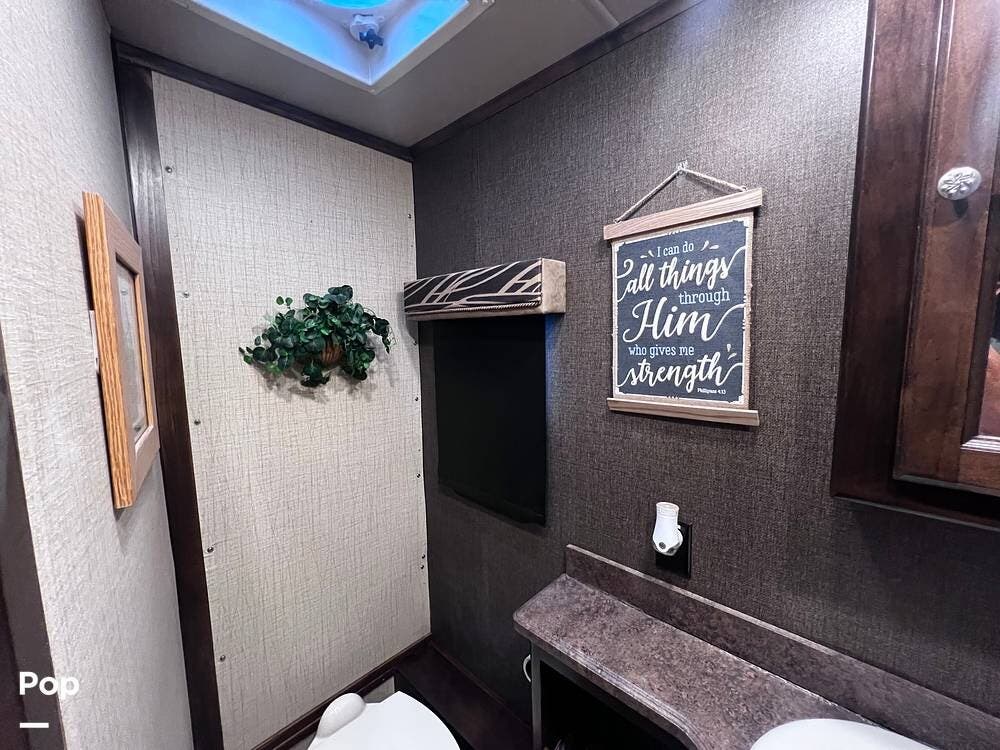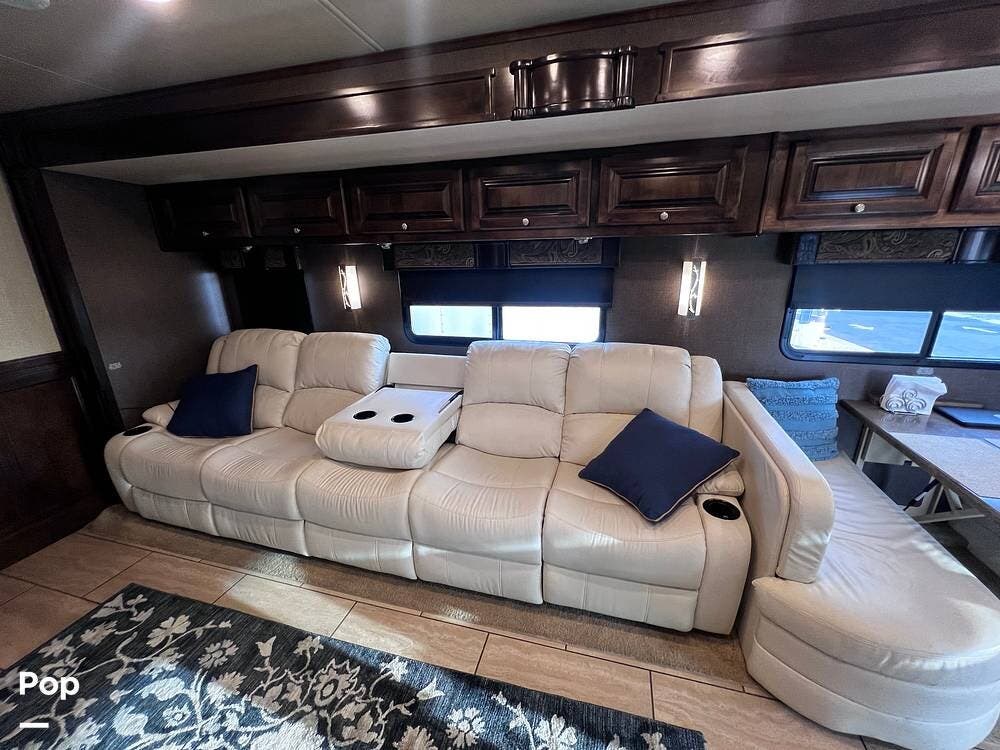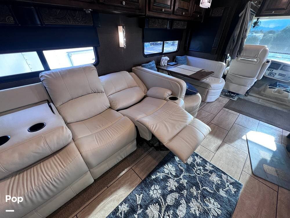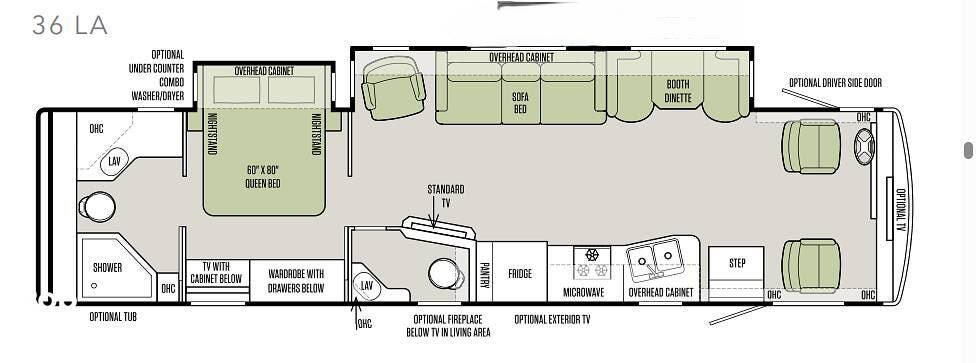This luxury RV is well-appointed, from the full-body paint to the leather furniture. Everything about it feels upscale.