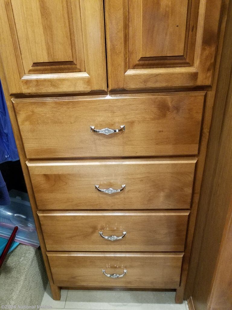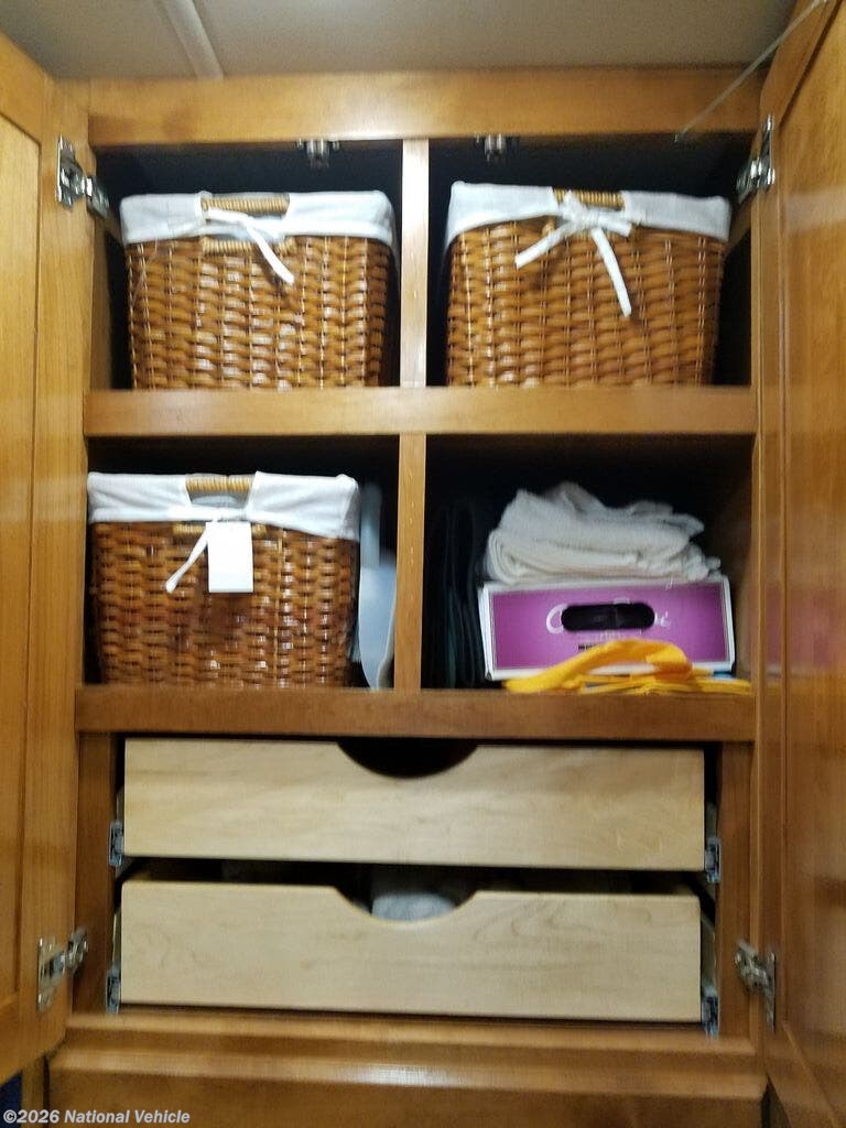 Step inside to discover spacious elegance with high-end finishes, including solid wood cabinetry, porcelain tile floors, and ultra-leather seating. The master suite features a king-size bed, large bathroom with dual vanity, large wardrobe, and stacked washer/dryer for residential comfort.