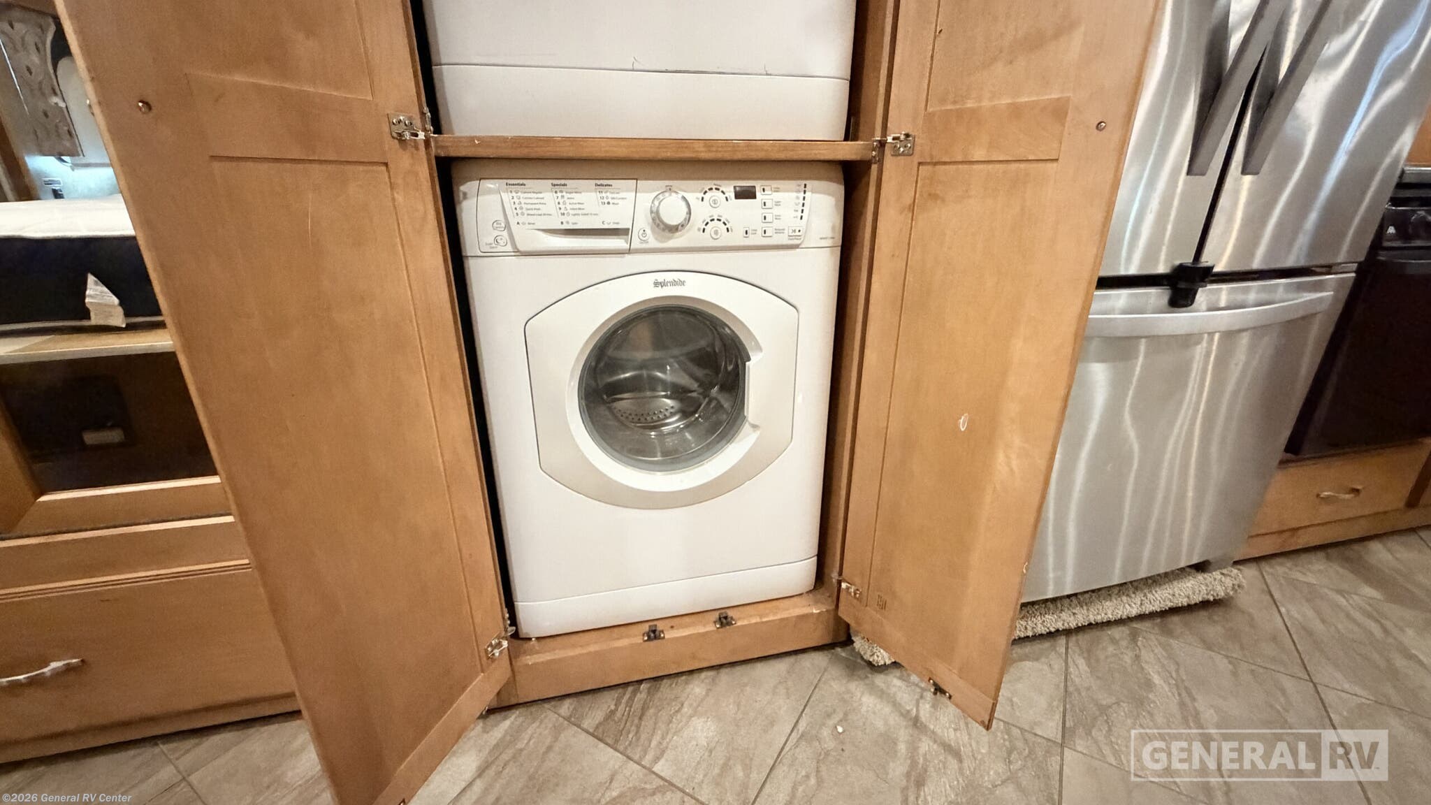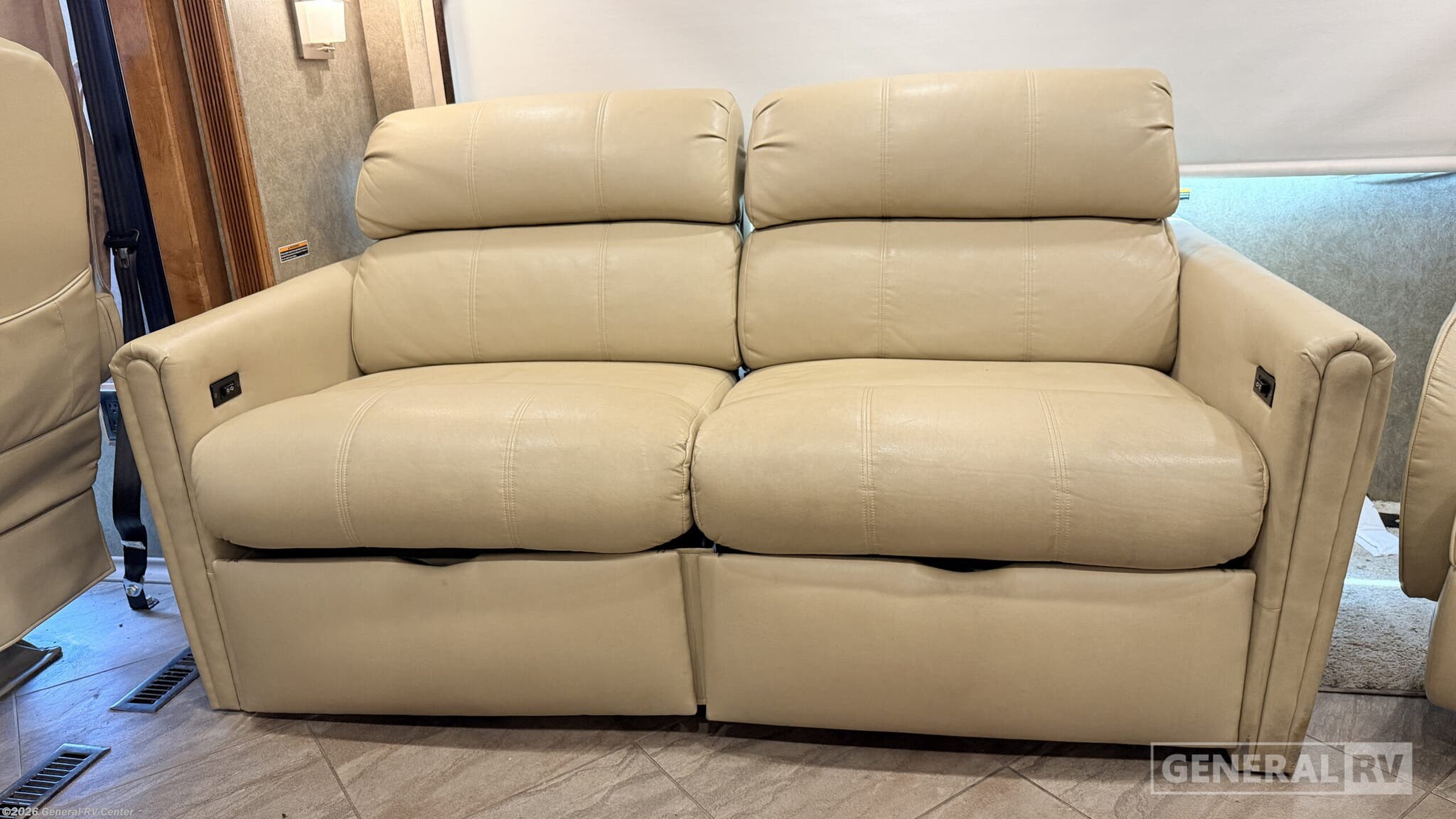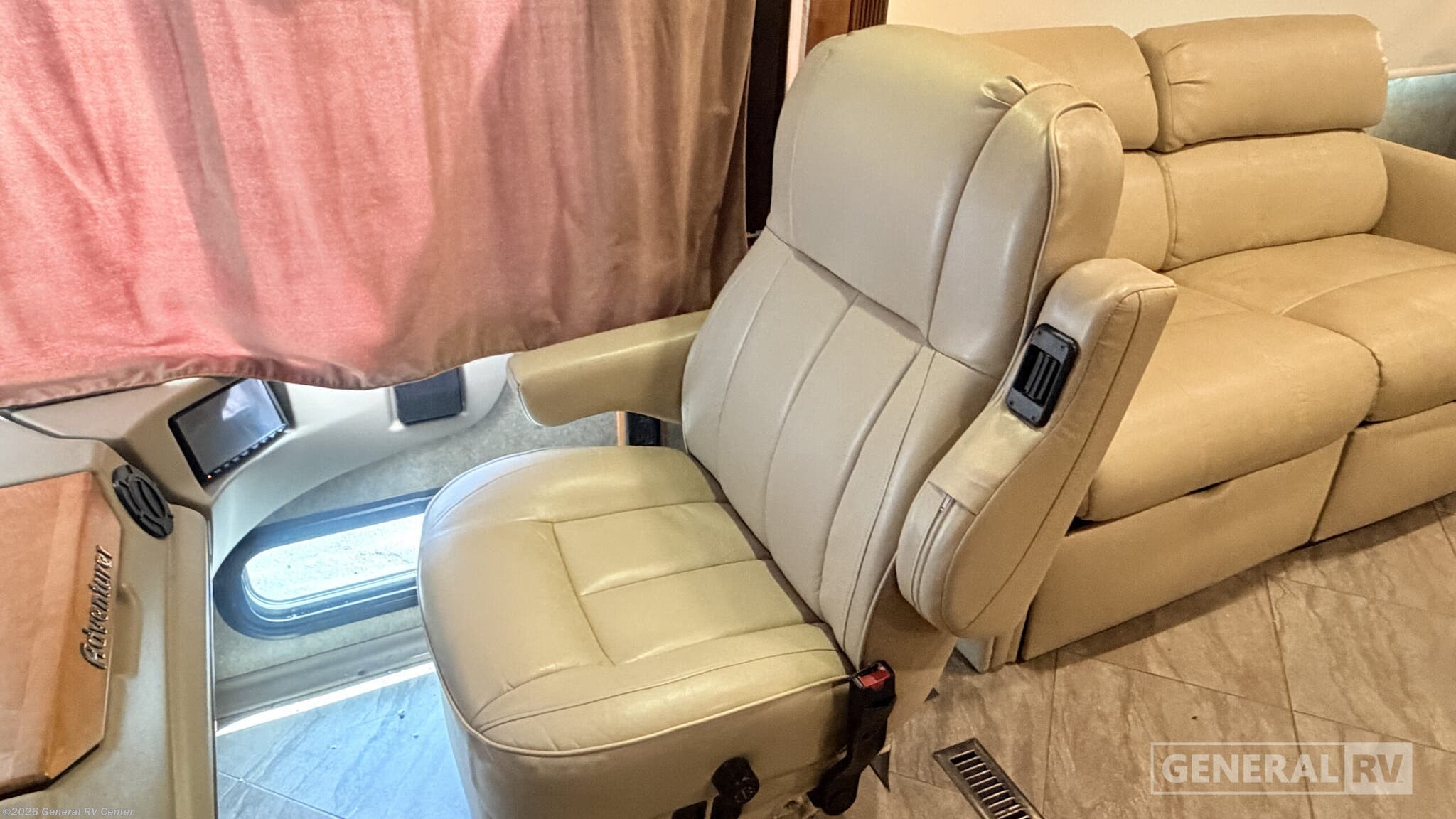 This Winnebago Adventurer model 37F offers you a wide open home on wheels with a full wall slide, two additional slide outs, plus so much more! You can enjoy the convenience of an en suite bath, king bed, plus many amenities that feel just like home. Step into this class A coach and see for yourself how much space is available. There is a Euro recliner and Rest Easy Sofa to the right of the entry door for seating. The sofa features seat belts for safe traveling. Opposite the door side towards the front, enjoy your meals at the Glide and Dine dining table and chairs along with a buffet, plus retractable 48" HDTV location found in the full wall slide. There is also an angled double kitchen sink and counter space, a three burner range, and a 4-door residential refrigerator. Beyond the refrigerator within this full wall slide you can also choose to have a storage cabinet, or add an optional washer and dryer if you like in the space for added convenience. The slide finishes up in the bedroom with a wardrobe and drawers, plus the location of a 28" HDTV as well. There is a half bath featuring a large vanity with sink, and toilet with overhead storage just to the left of the entry door. Double sliding doors to the rear of the coach open up to a spacious bedroom featuring a recline/incline king bed slide out with nightstands on either side. You can also choose a recline/incline queen bed with nightstands in place of the king if you like. Another sliding door leads to the rear full bath which features a BIG shower, a long vanity with sink, and toilet plus overhead storage, and so much more!