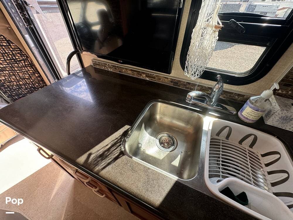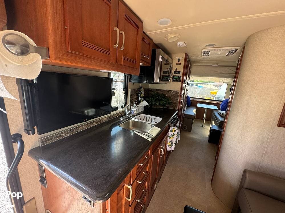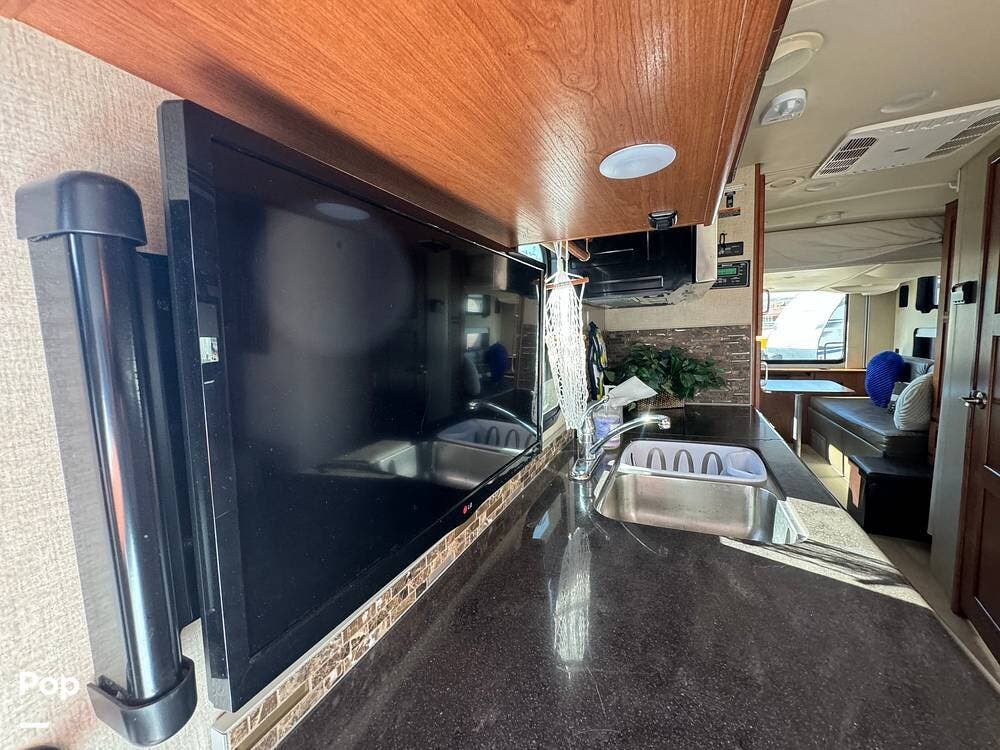 A Ford V10 6.8L engine with 305hp powers this 2016 Aspect 27D. It offers reliable performance and smooth handling, enhanced by newer front shocks, front sumo springs, a steering stabilizer, and an upgraded front sway bar.
