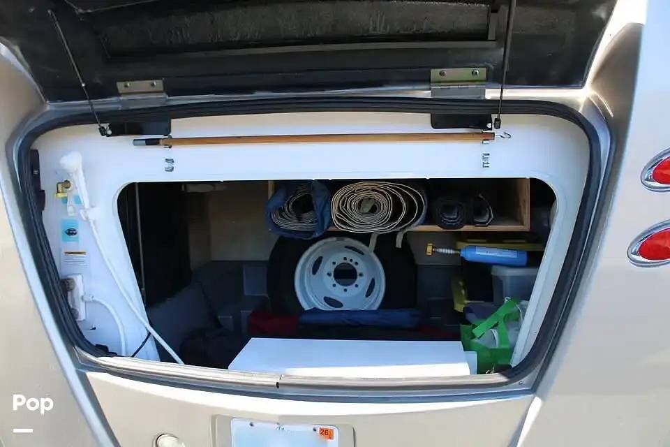 On the exterior there is a generous pass thorugh storage in the rear. Large power awning includes LED lighting!