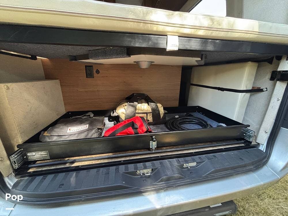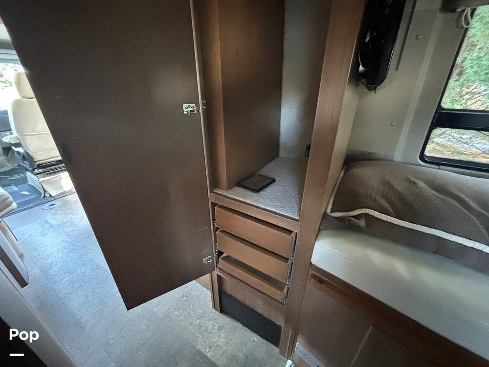 Entertainment comes with two TVs, a stereo, Bluetooth/aux capability, a CD/DVD player, and a digital TV antenna. Inside, you'll find cab swivel seats, blackout roller shades, a shower, toilet, skylight, and storage throughout.