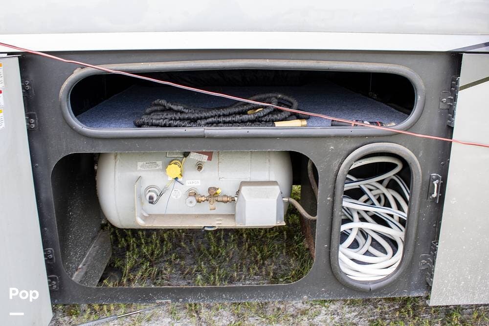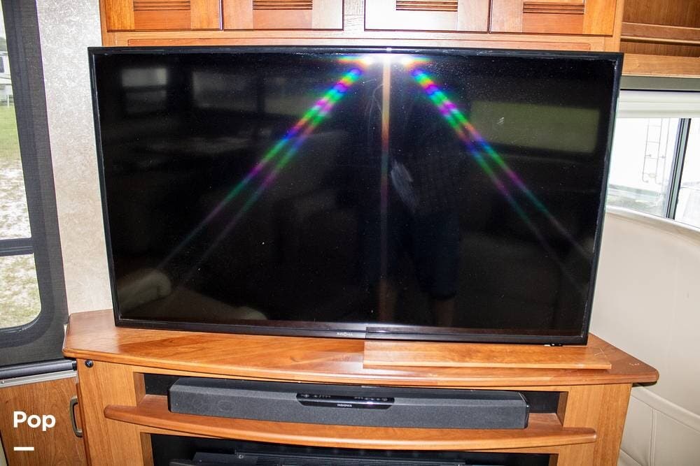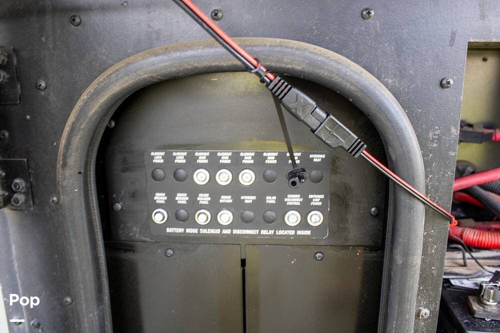 This coach comes with several valuable upgrades, including newer house and chassis batteries, a Winegard internet system, and a Dish satellite antenna with two Wally receivers. It's also equipped with a Blue Ox tow hitch, Power Watch surge protector, and an exterior 32" Smart TV.