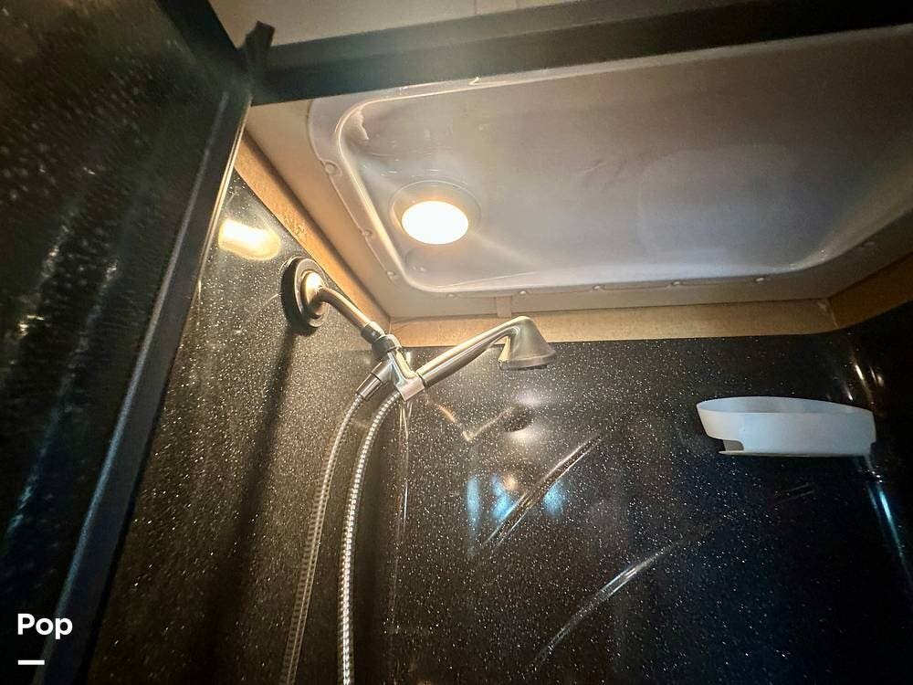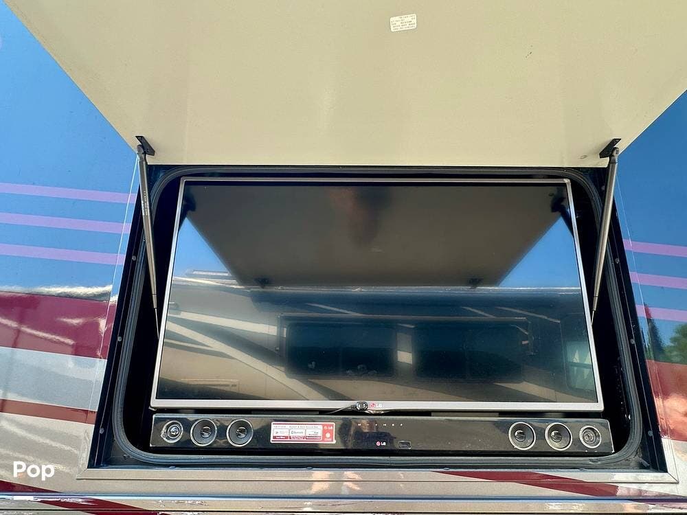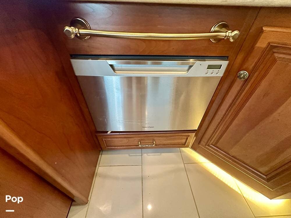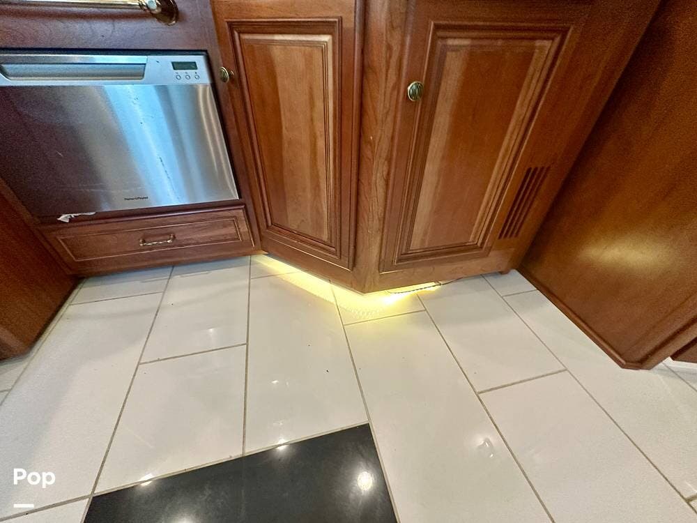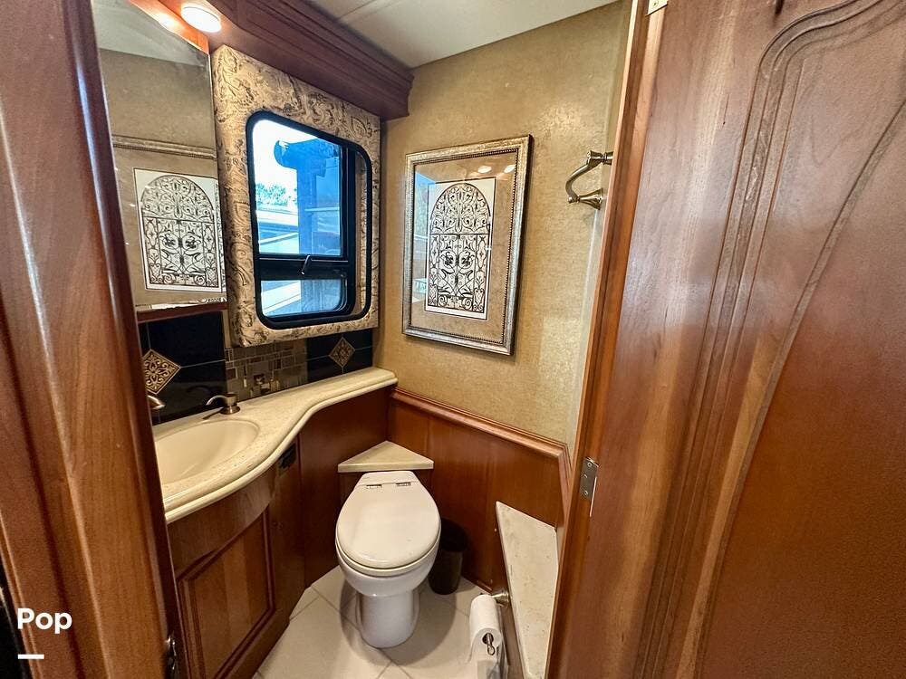 The spacious 43-foot layout showcases an expansive interior enhanced by a bath and a half, offering convenience for both daily living and entertaining on the road.