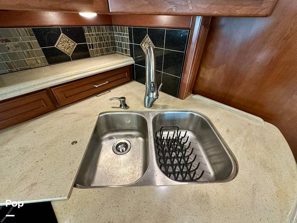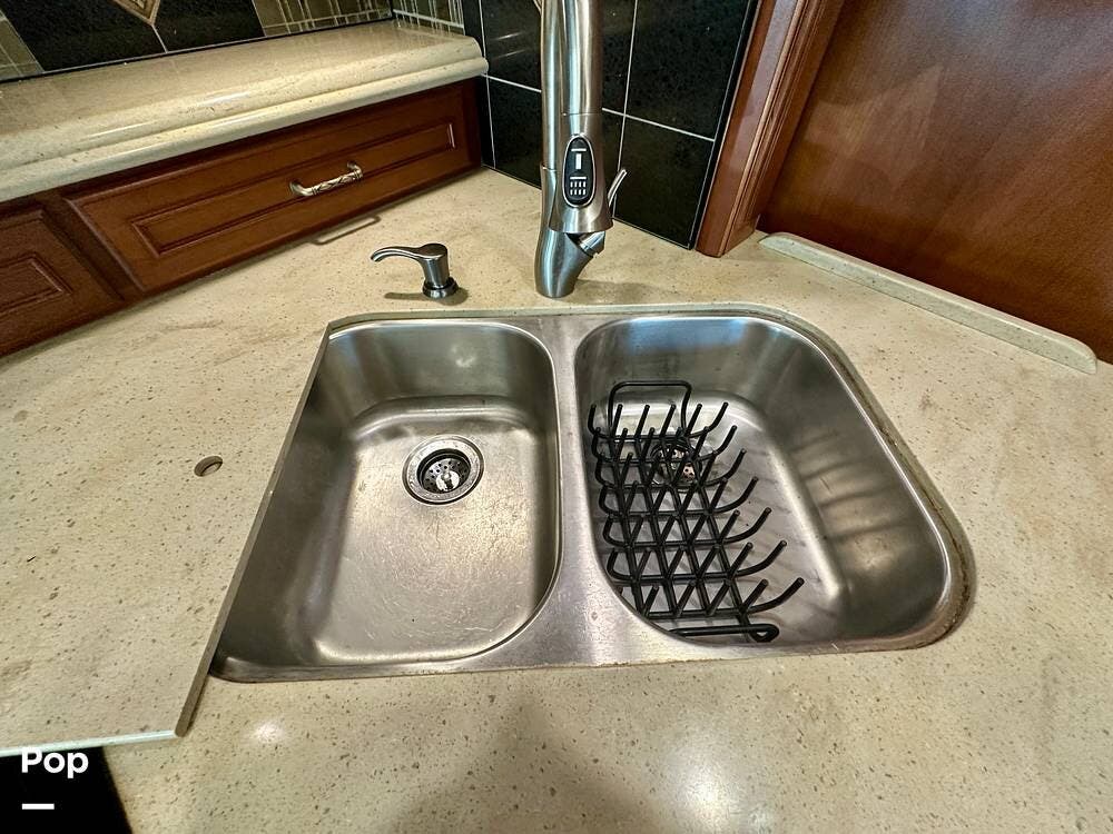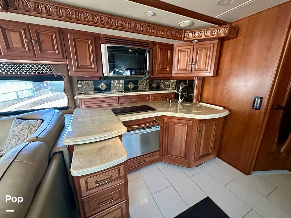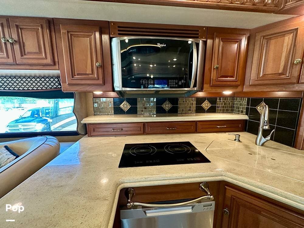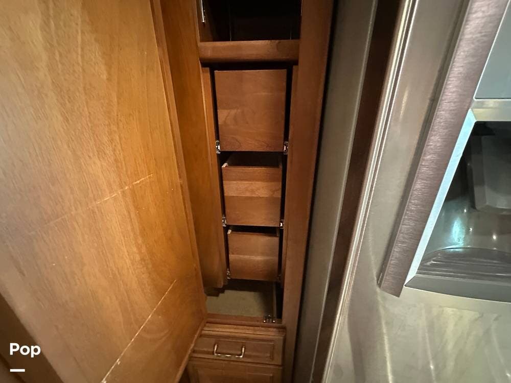 The spacious 43-foot layout showcases an expansive interior enhanced by a bath and a half, offering convenience for both daily living and entertaining on the road.
