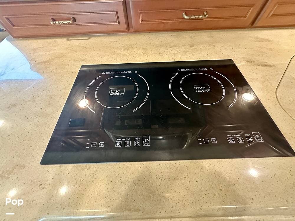 The kitchen is well equipped with a full-size fridge/freezer, dishwasher, induction stove, and convection microwave. There is lots of storage, including a pantry with extra pull-out storage.
