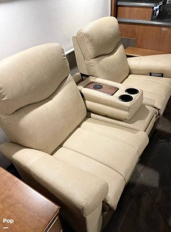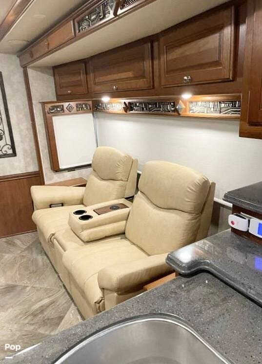 The Journey's owner loves this coach's onboard space. Luxury features include the king bedroom suite, three air conditioning units, tankless hot water, 1-1/2 baths, and power theater-style recliners.