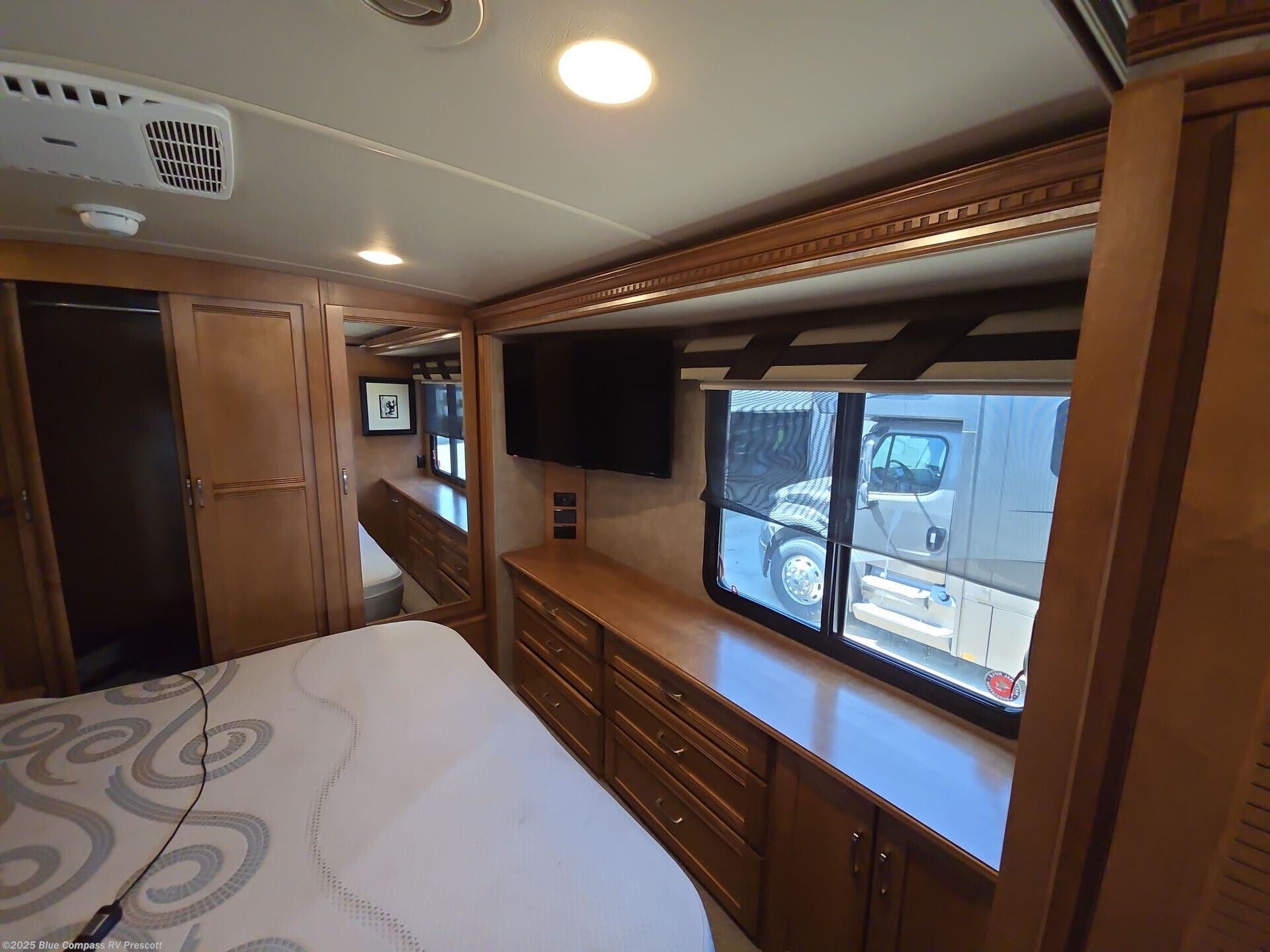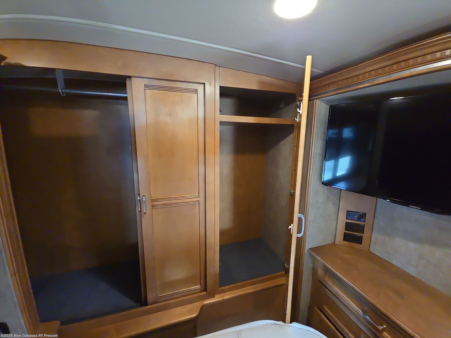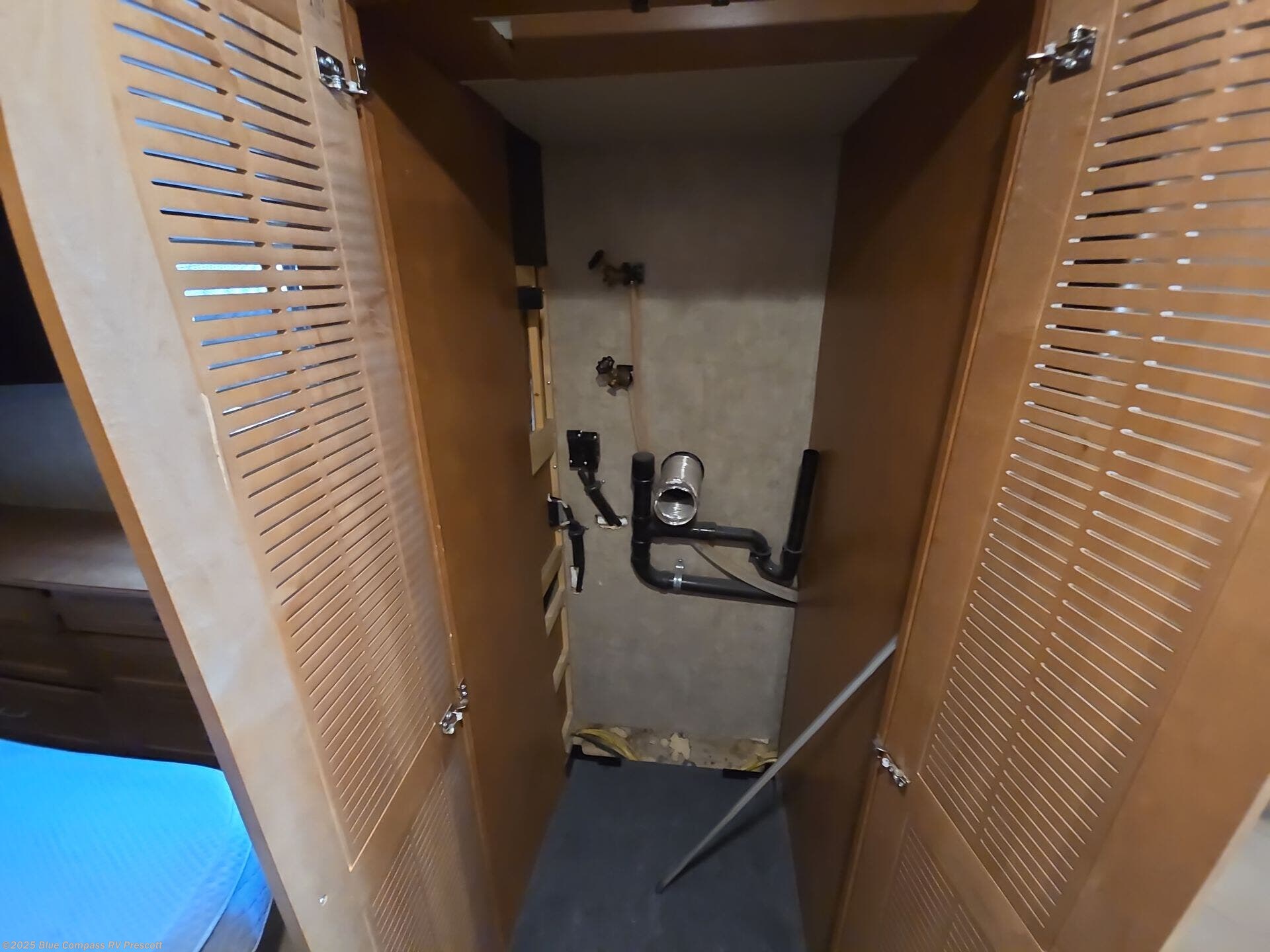 The rear master bedroom features a queen bed slide including nightstands and overhead storage. The chest of drawers opposite is part of the large slide on the road side that also features the kitchen appliances. Here you will enjoy storage drawers for your things, plus there is a HDTV location as well. Along the rear wall find even more storage with a wardrobe and cabinet. You can choose a king size bed if you wish for a bit more sleeping space, plus so much more!