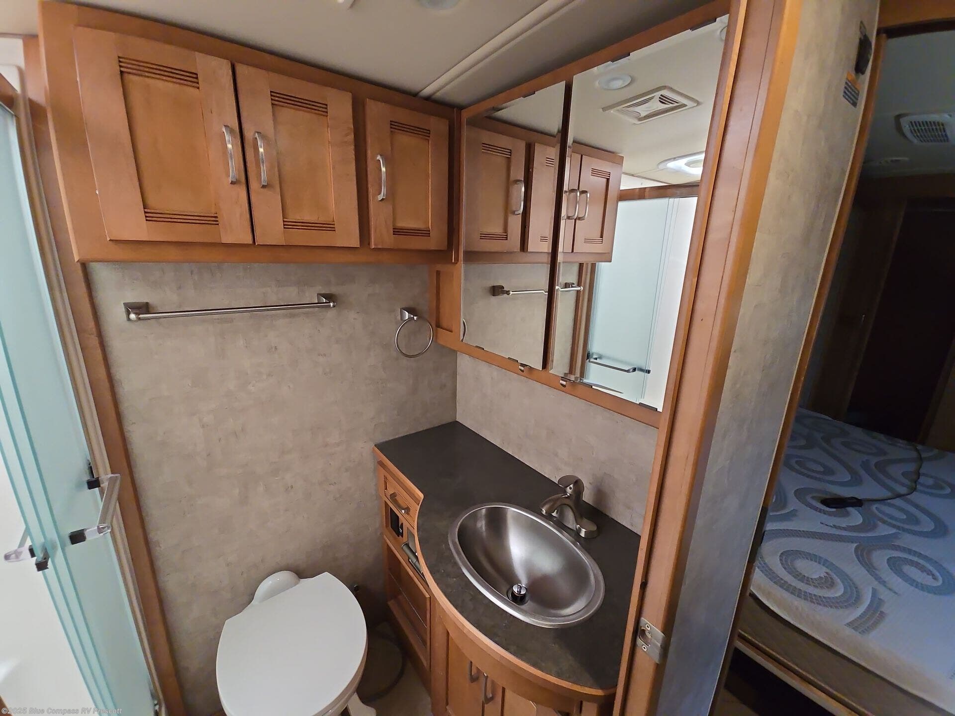 The complete bath is also centrally located and provides a shower, toilet, and vanity with sink, plus overhead storage.