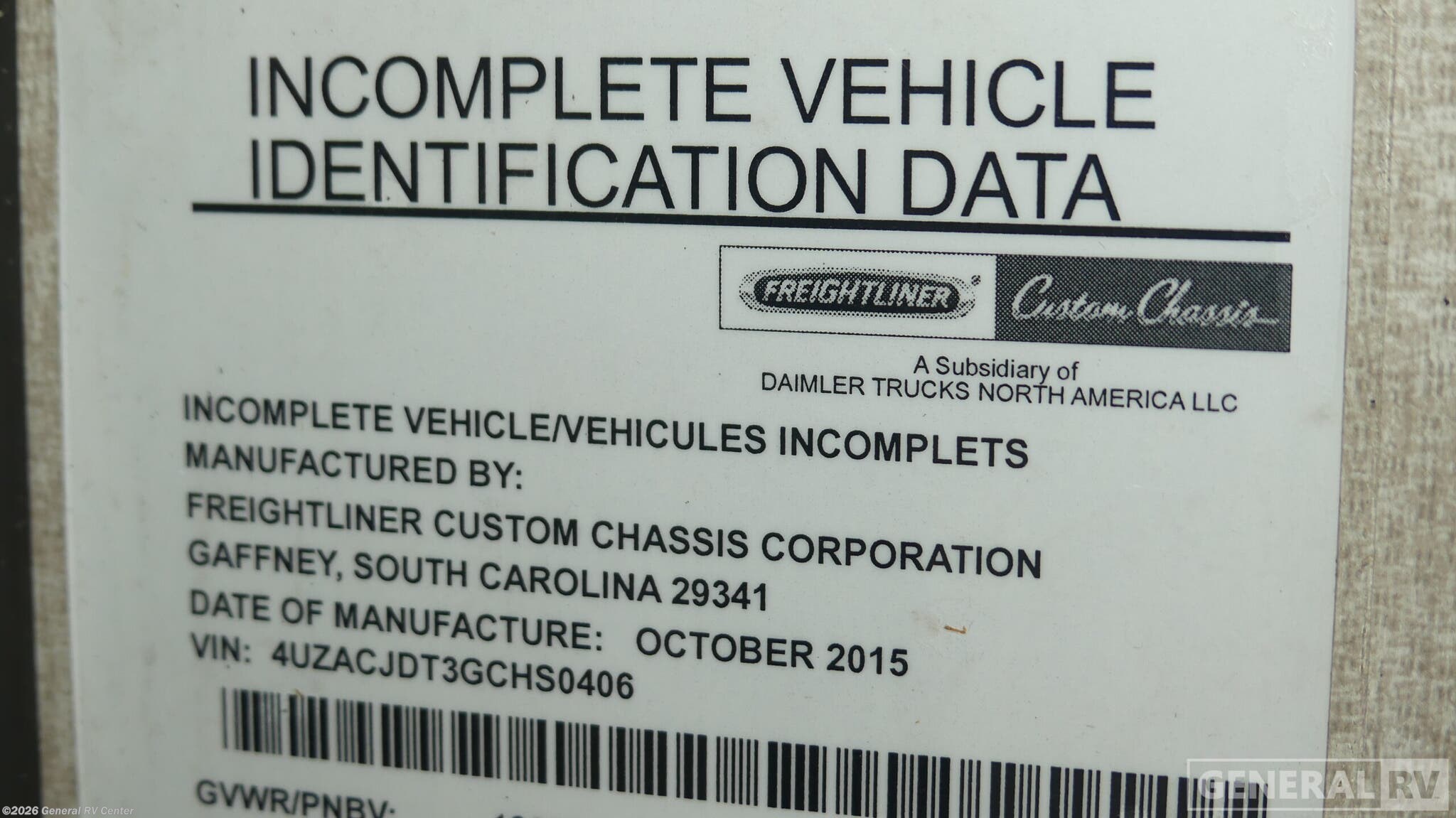 - VIN4UZACJDT3GCHS0406