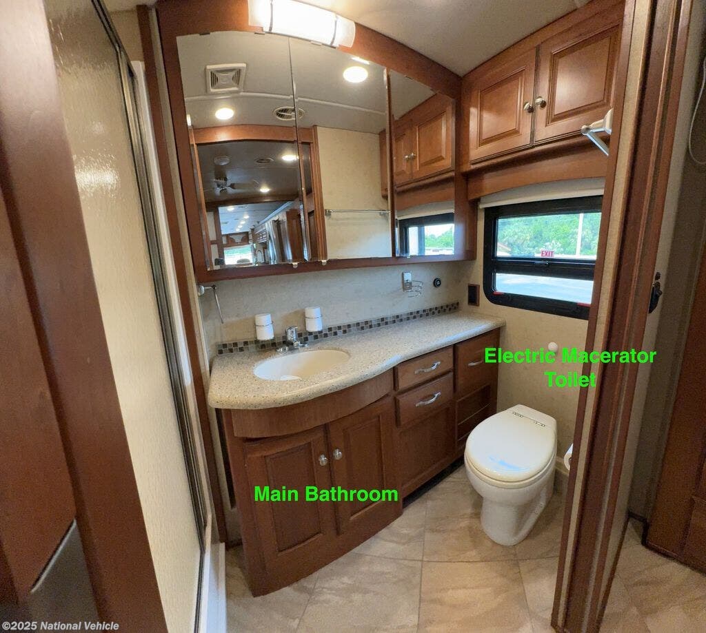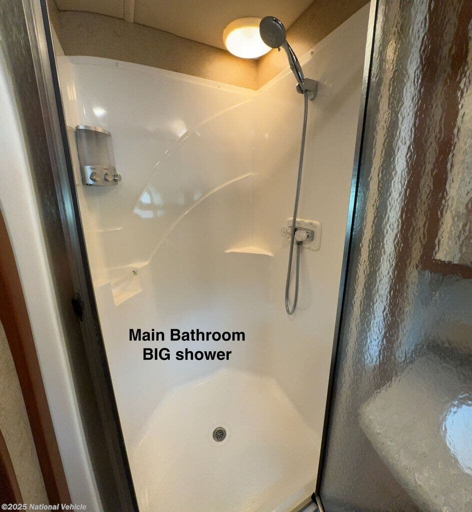 Main rear bath: Extra-large shower with seat Long vanity with solid-surface sink Electric toilet Overhead and under-sink storage