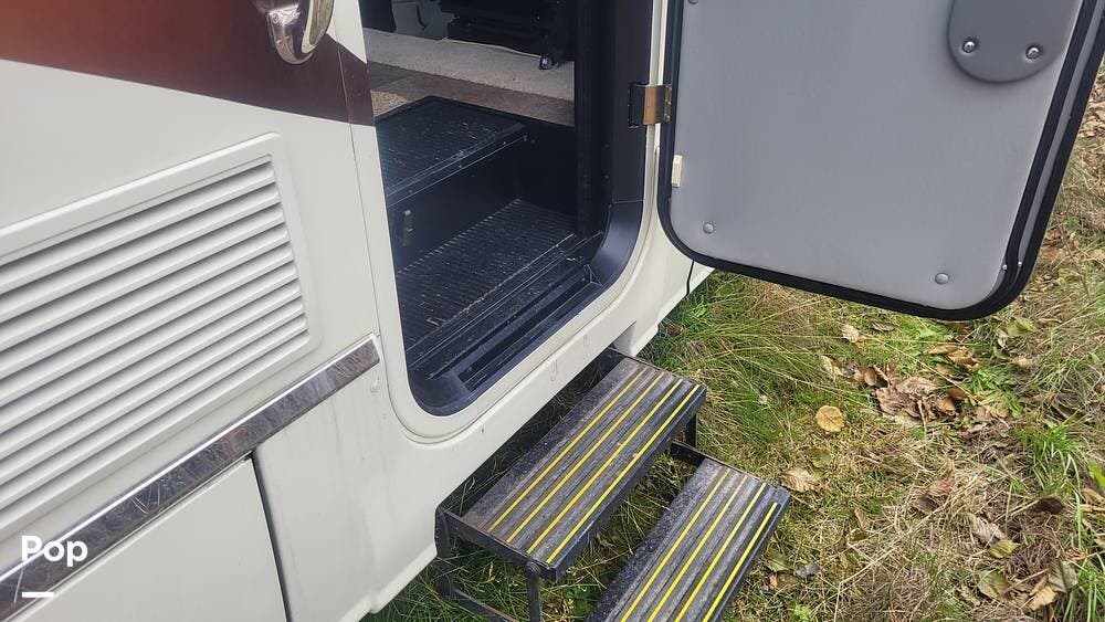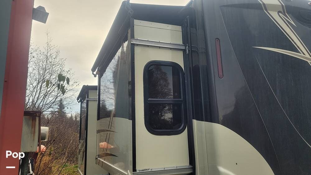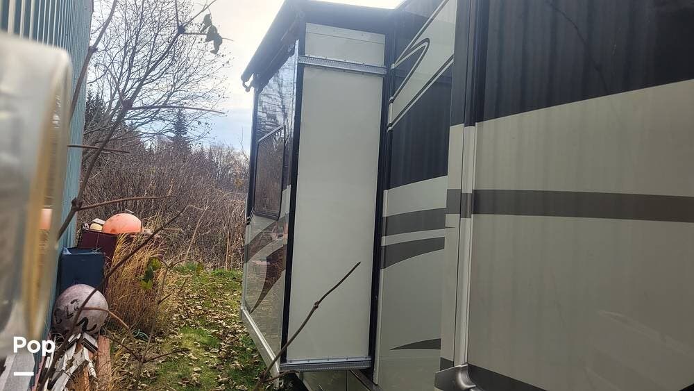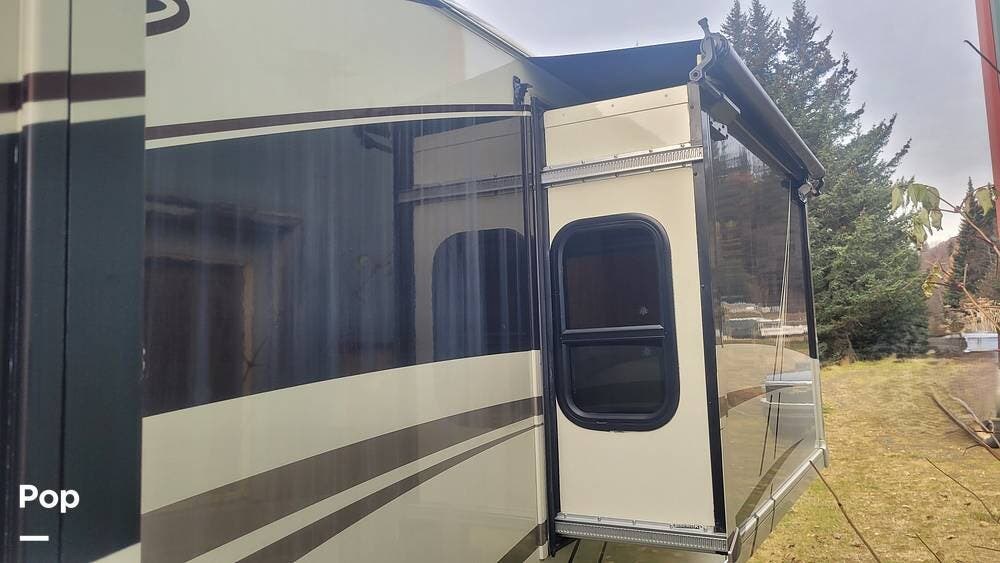 A large power awning on the passenger side and one on each slide-out provide protection from the elements. The power entry step is super easy to navigate. This model also has a driver's side door, making access even more convenient.