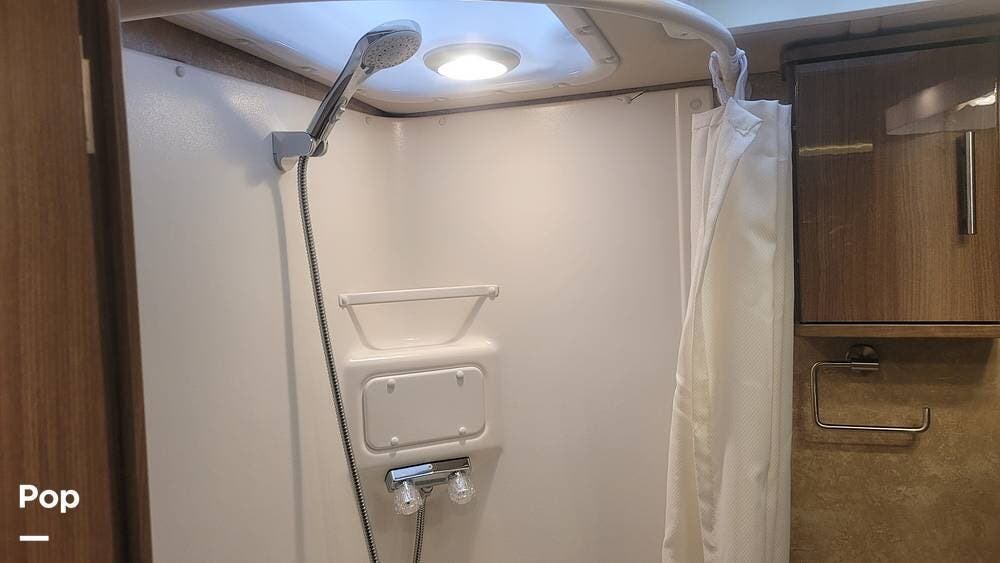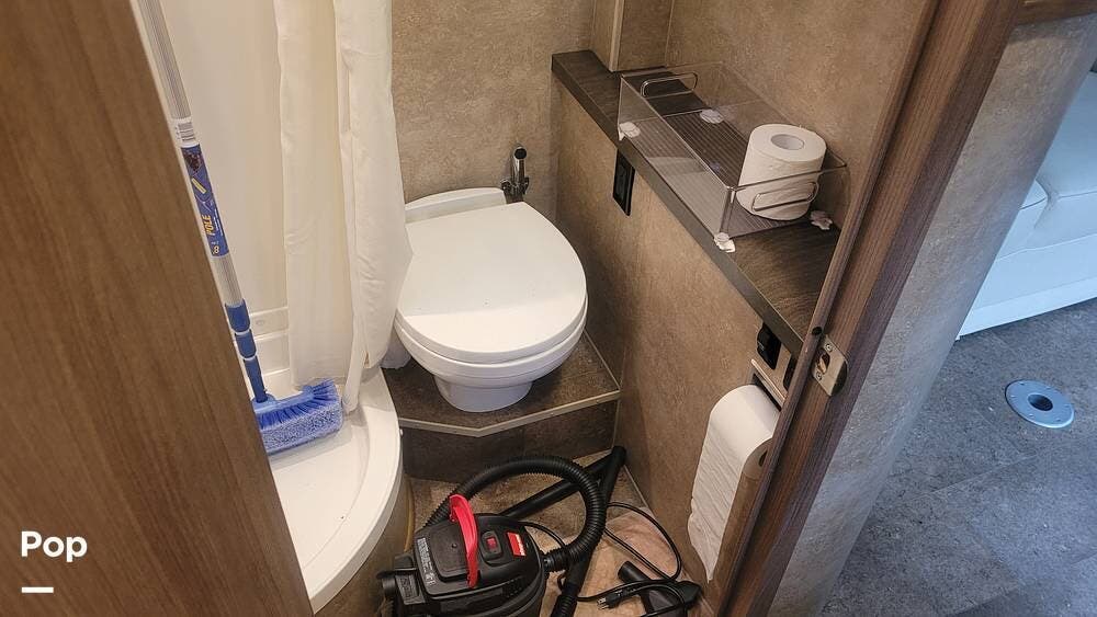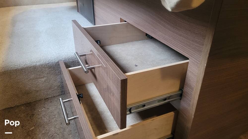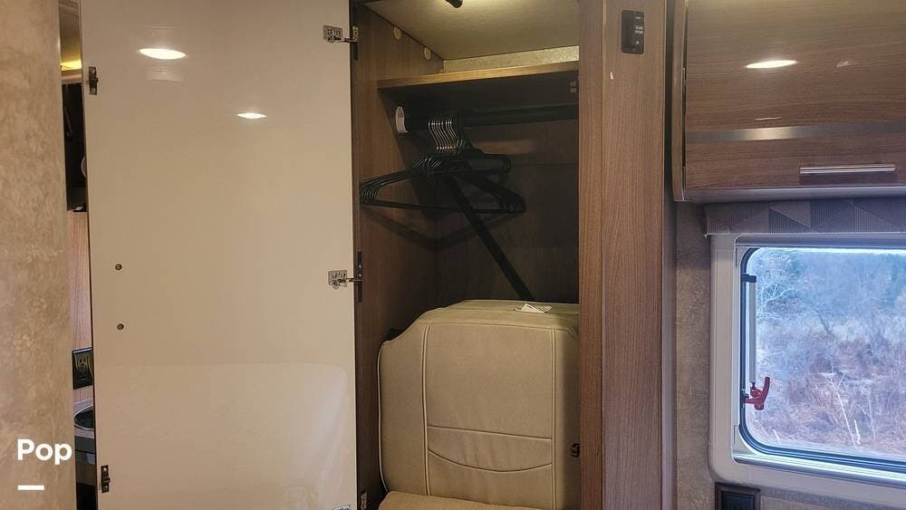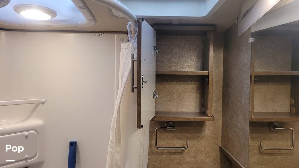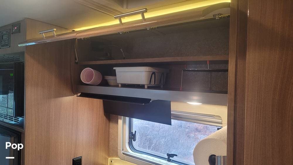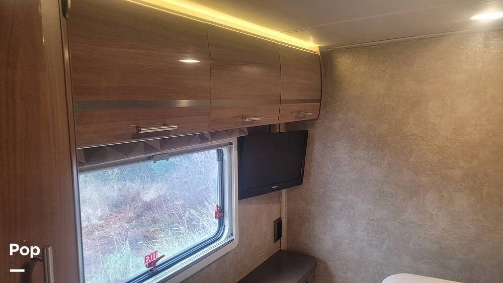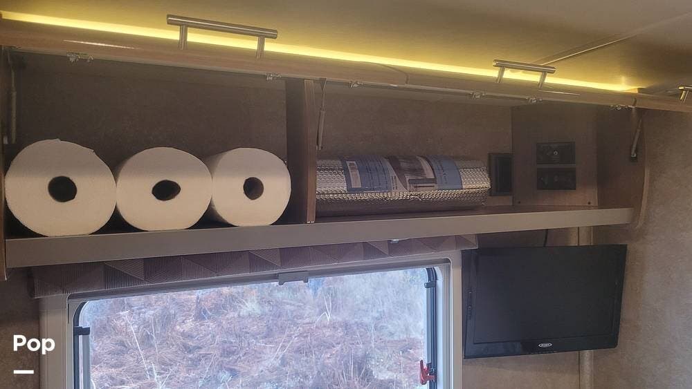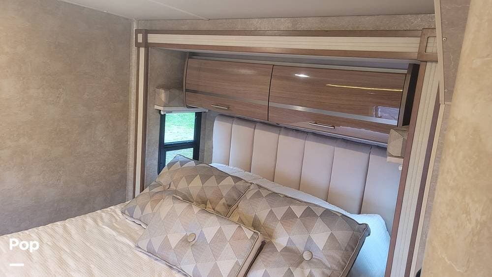This 25 'Class A is top-of-the-line, with all the features and comforts of a much larger RV. The fit and finish are incredible, to say the least. The leather seats are buttery soft!