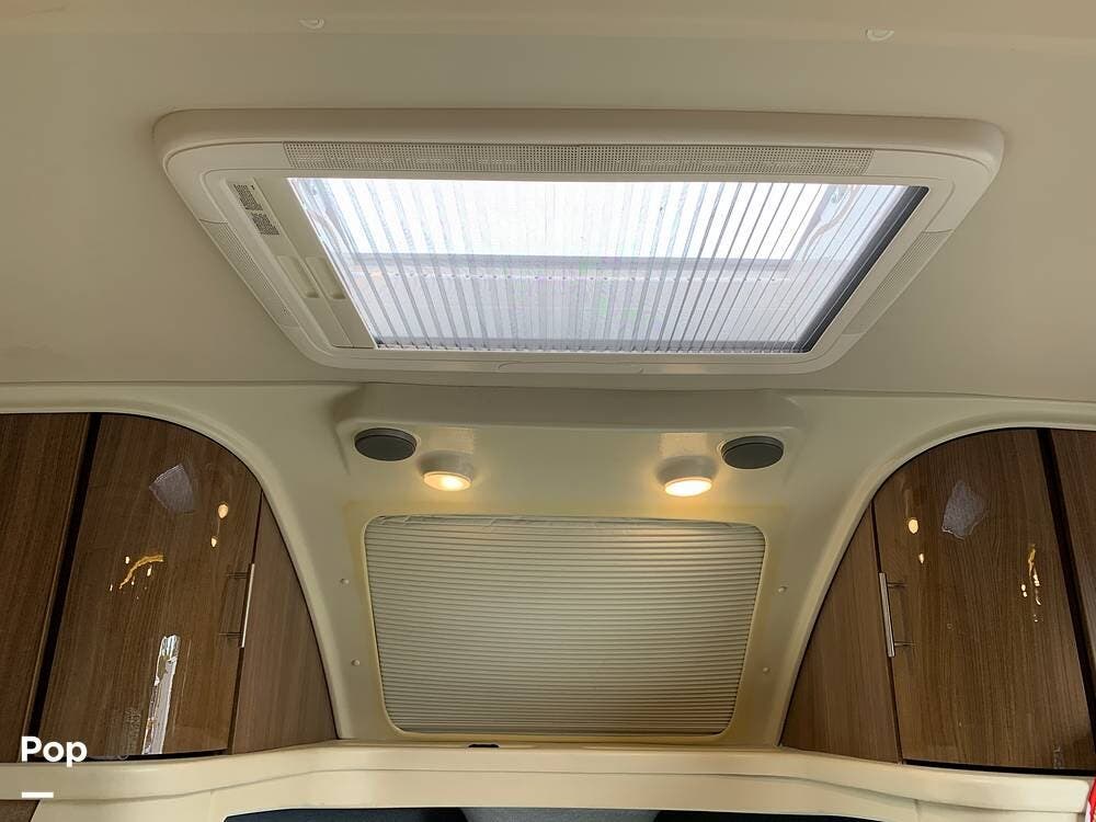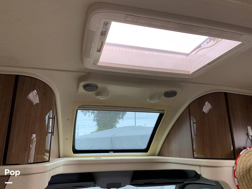 Two skylights with pull-down shades in the living area.