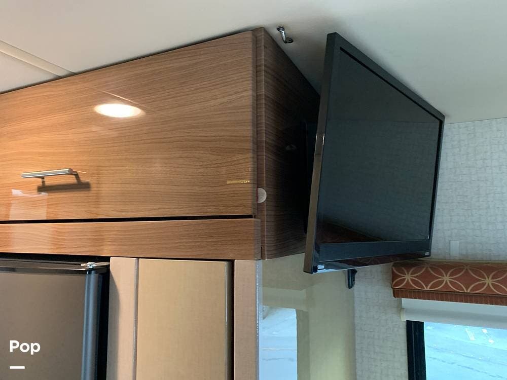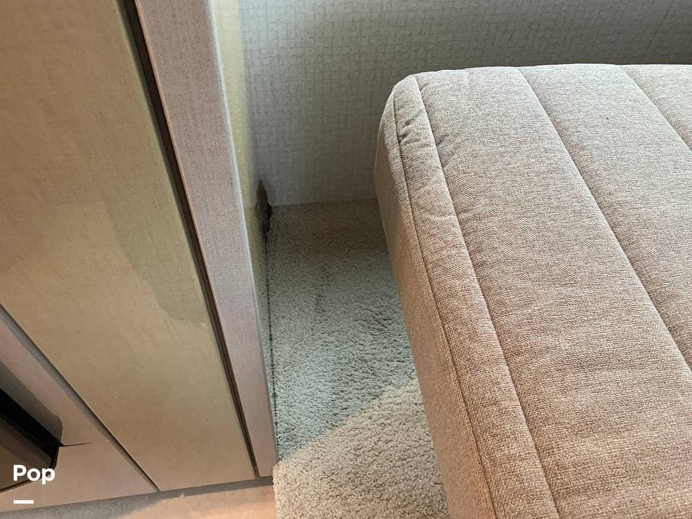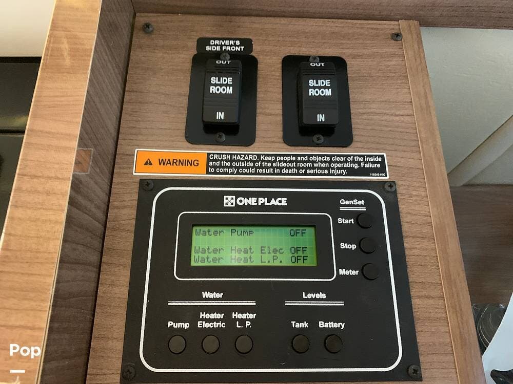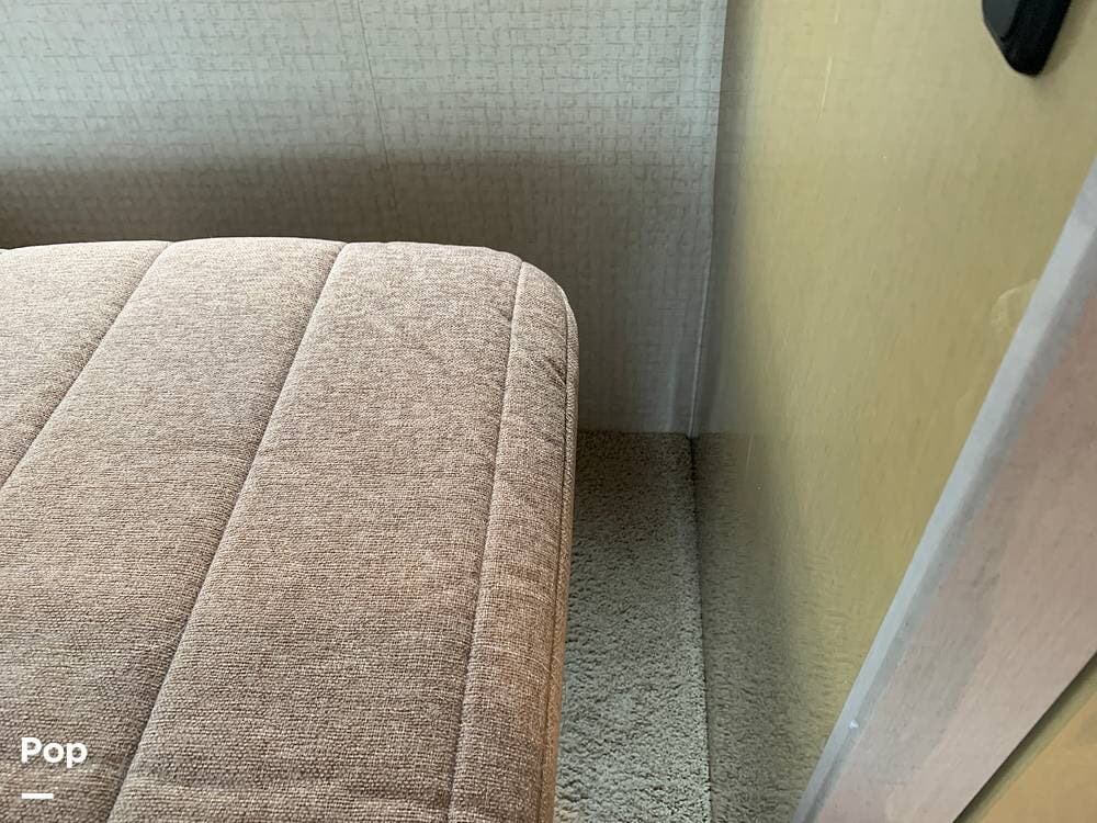 The well-appointed interior boasts ample living space, featuring a slide-out room that expands the living area to provide plenty of room for relaxation and entertainment.