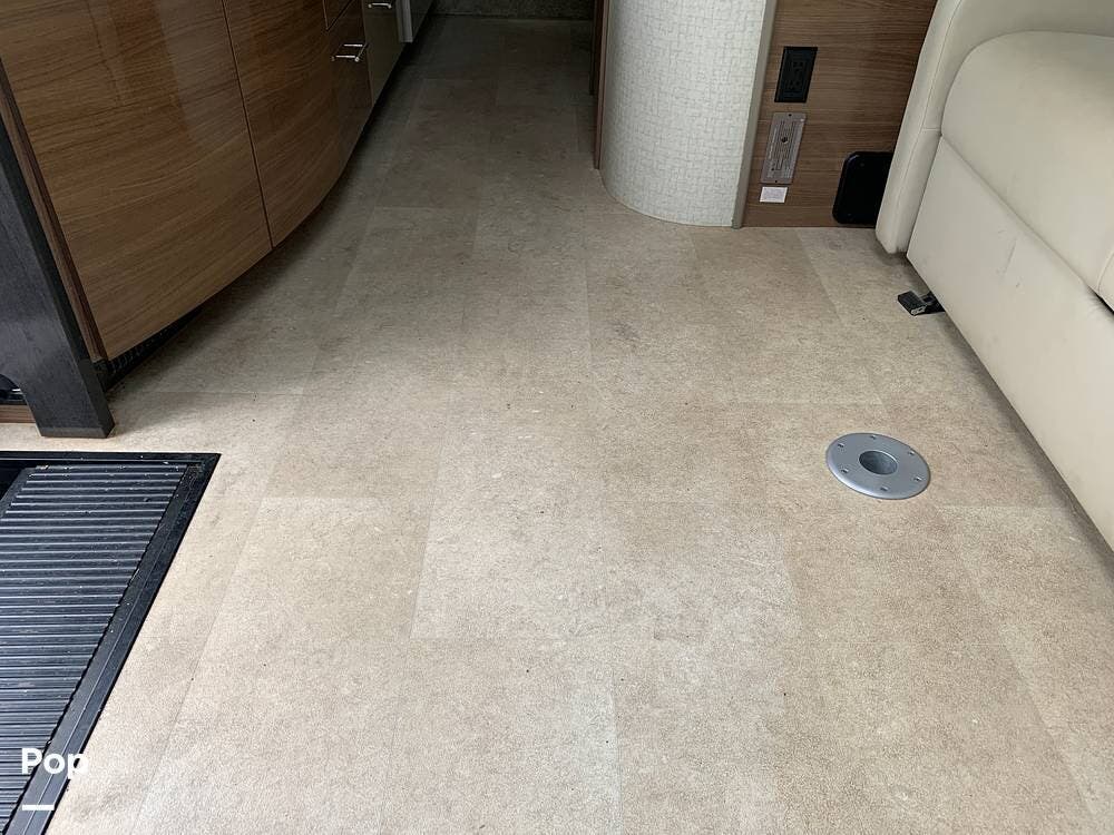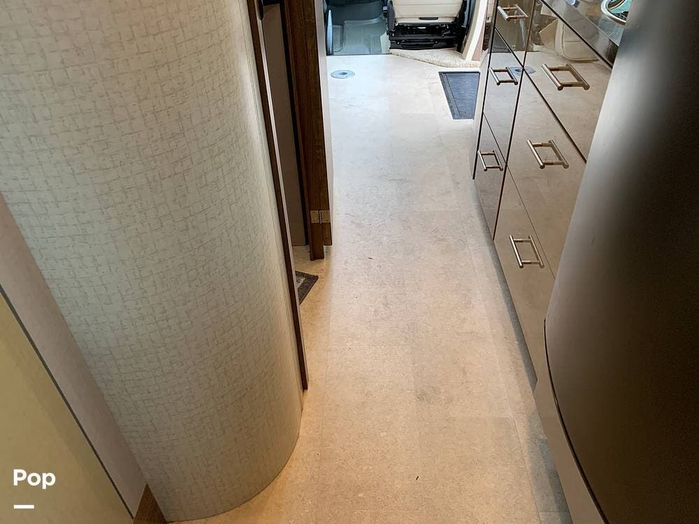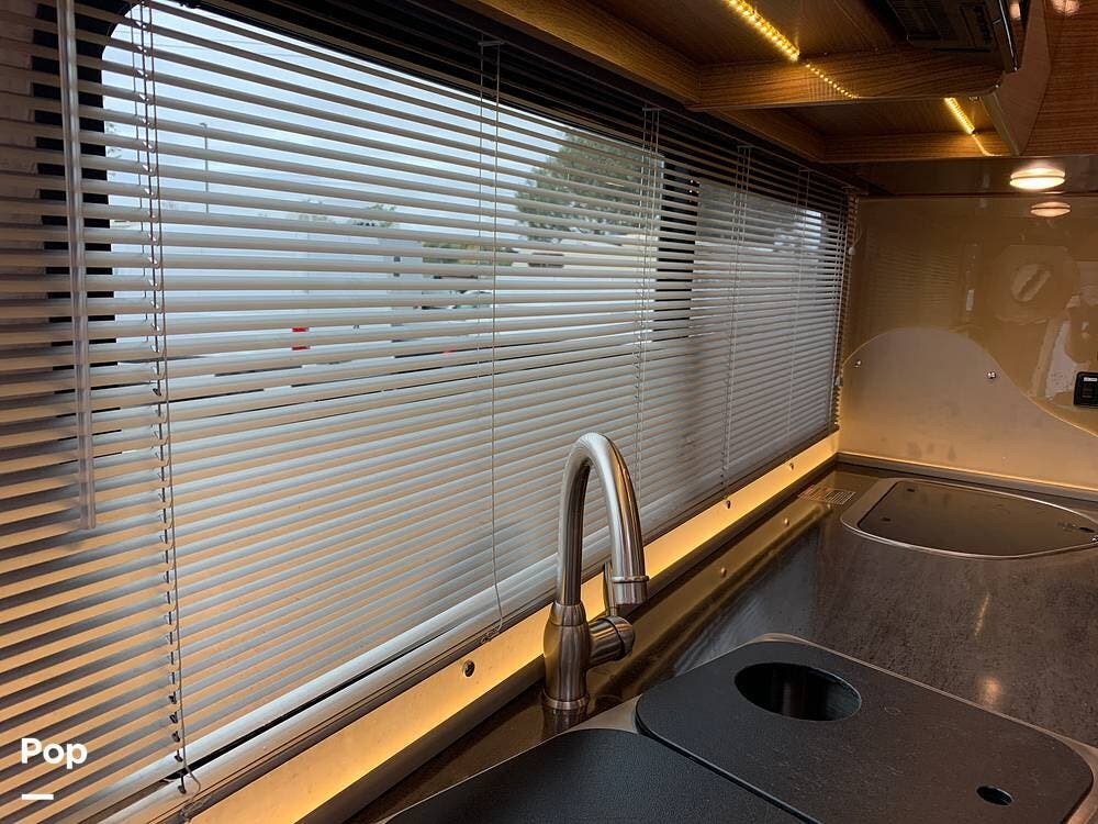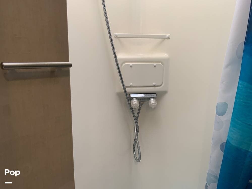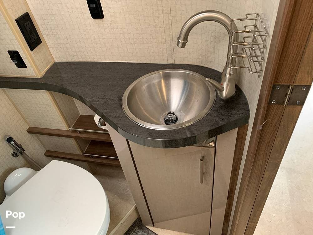 The well-appointed interior boasts ample living space, featuring a slide-out room that expands the living area to provide plenty of room for relaxation and entertainment.