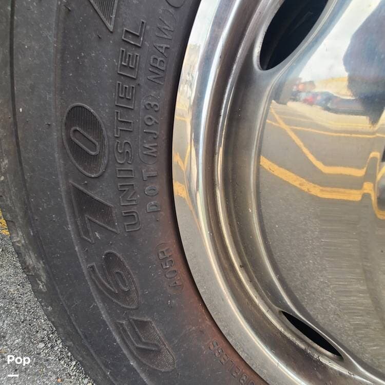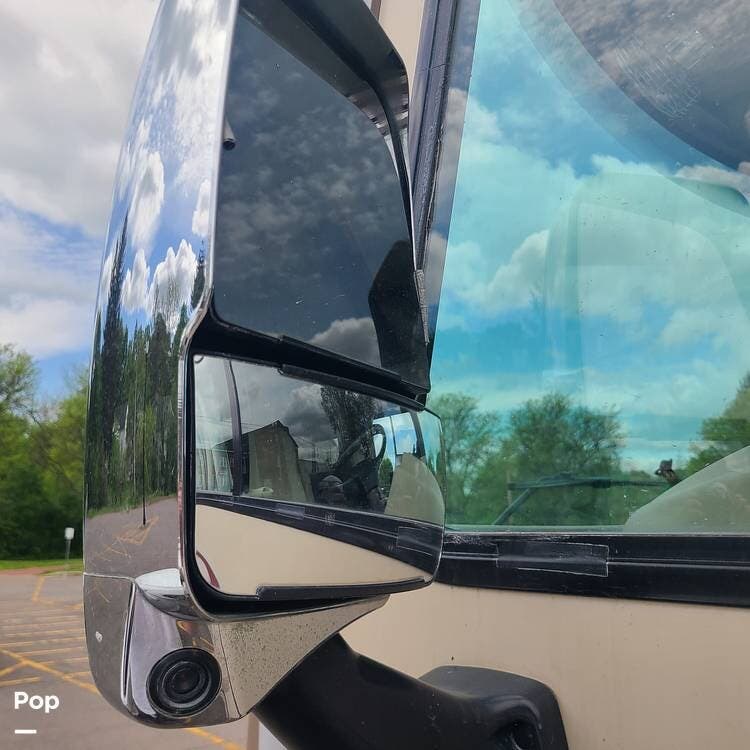 Main features include an Onan 4.0kW generator, opposing slides in the living area, a fully appointed kitchen, a recessed main TV with a pop-out dining table, upgraded shocks and springs, and much more!