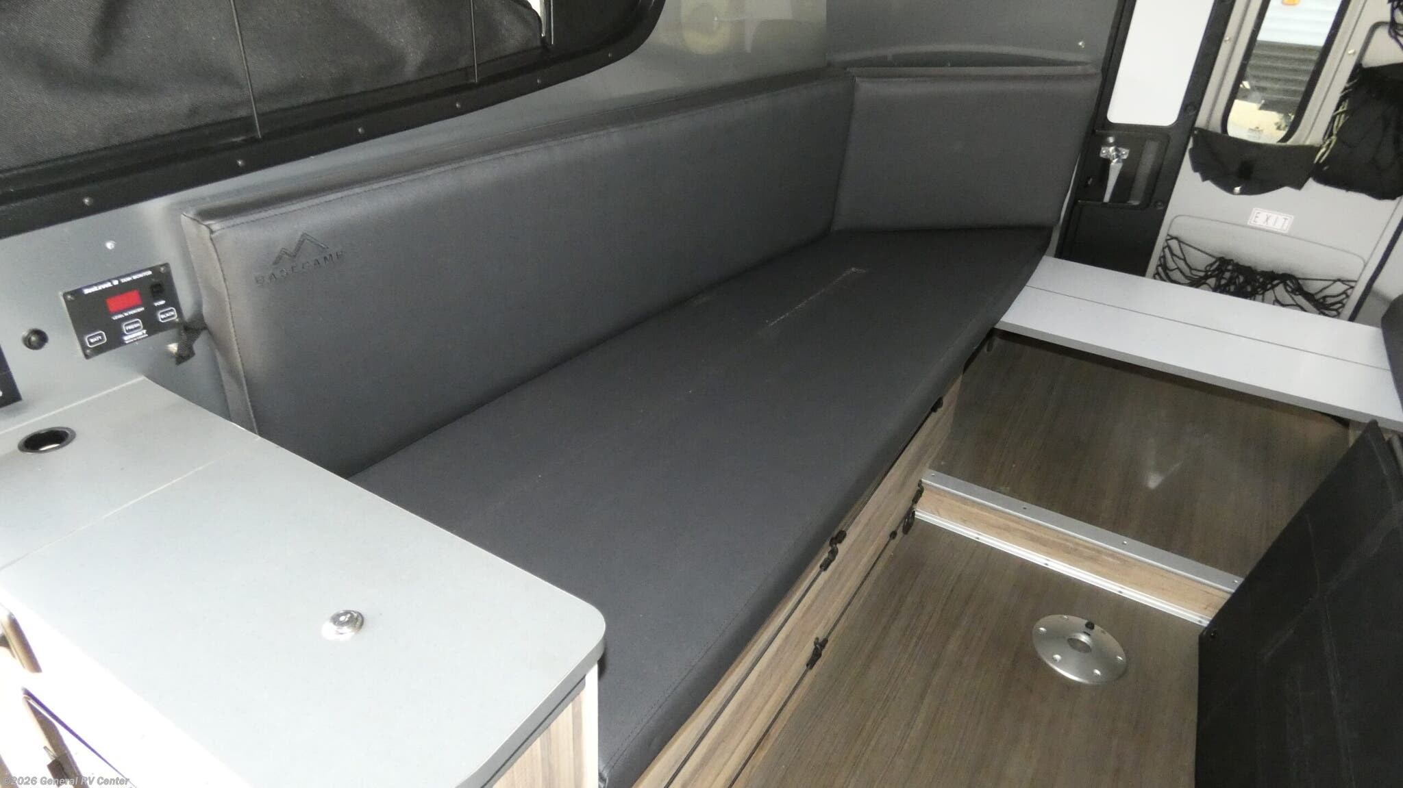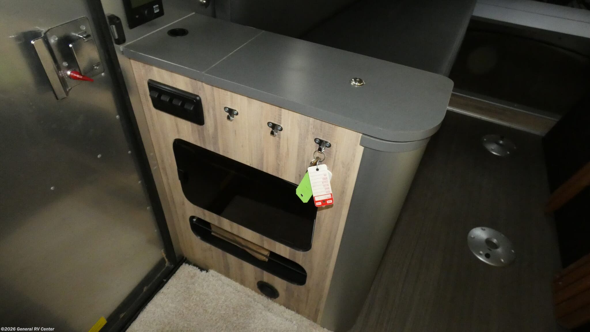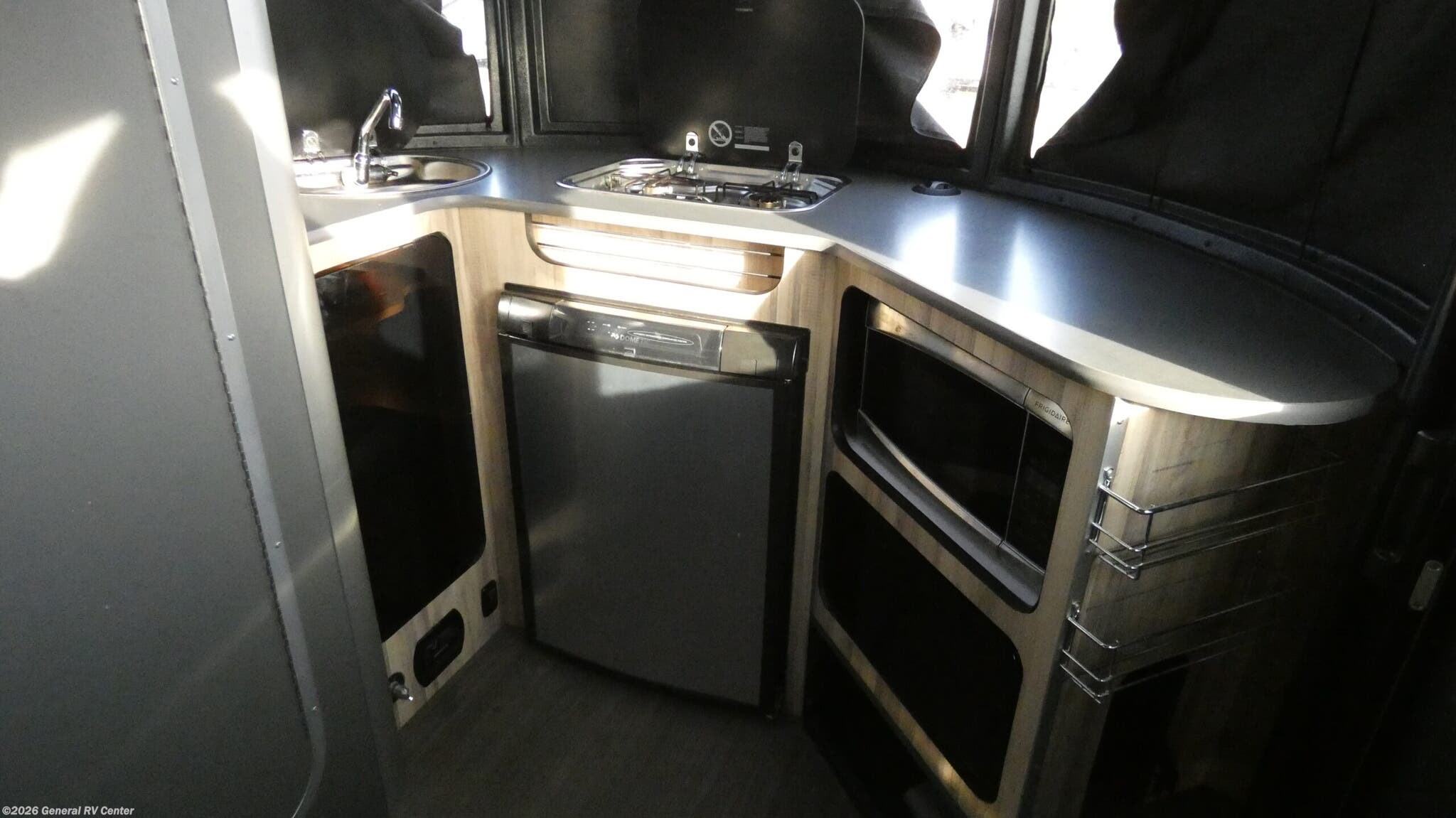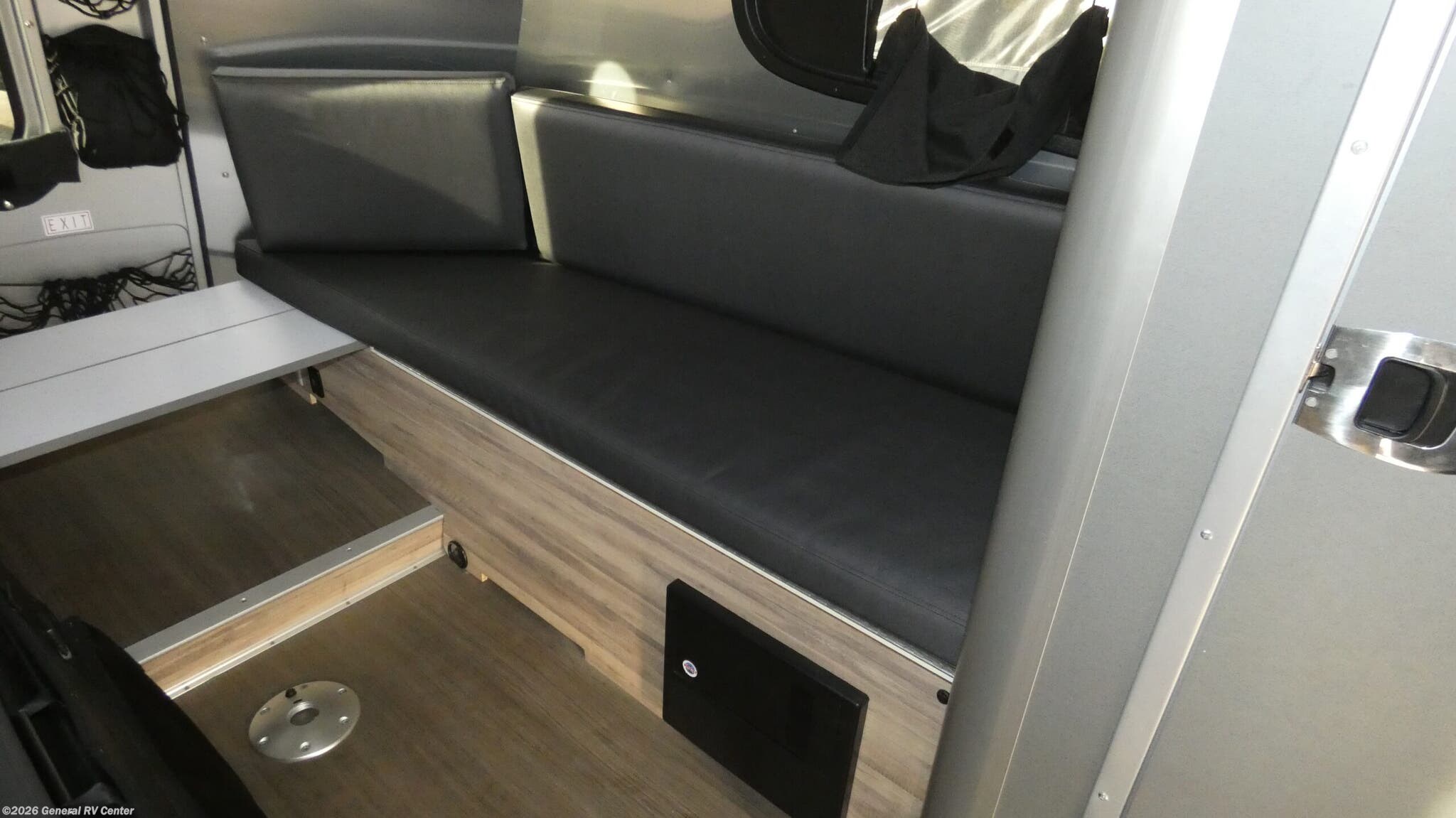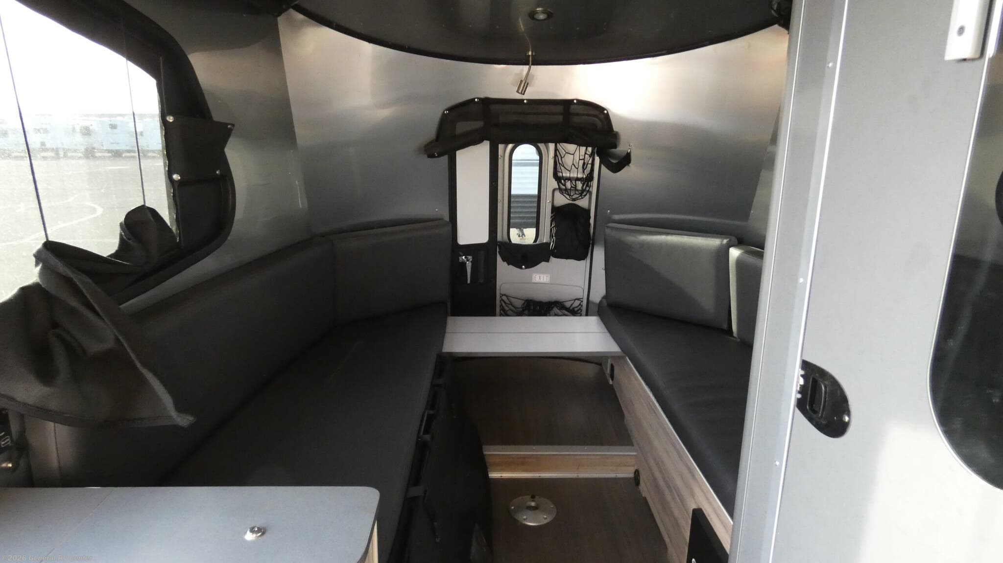 This super versatile Airstream Basecamp travel trailer is ready for your next adventure! Model 16 features a variety of sleeping and seating configurations so you can change it up easily depending on the adventure, and who you are taking along. Step inside and notice a kitchen area up front. There is ample counter space and storage along with a two-burner cook-top and single round bowl sink. You can keep your cold things cold in the 3 cu. ft. refrigerator, and add an optional microwave oven if you like. It will be super easy to cook up something light indoors, plus there is plenty of storage for your things as well. The rear seating/sleeping area is quite accommodating with the center pedestal tables. You can even create a u-lounge that provides seating for five. You will love all of the storage beneath both bench seats for camping gear, blankets, or even a bit of fishing gear if you like. Plus there is a ton of natural light inside with all of the windows and skylights too. When it is time to pull the curtains and catch a few Zzz's you can configure the seating arrangement by lowering the tables to create one large full 76" x 76" bed, or a half bed that is 38" x 76". You will also appreciate the on-board wet bath that features a removable hand held shower, china toilet, plus retractable clothes line for damp towels and more. Maybe you would enjoy adding the two optional tents which provide a total of 120 sq. ft. of extra living space. This way you can sit outside in the evening and keep the mosquitoes away. There is one available to add off the side entry door, and a second one that can be added off the rear door. This door is great for loading and unloading your things as well. Let the versatility of this Airstream Basecamp easily take you to all of the places you have been waiting to explore!