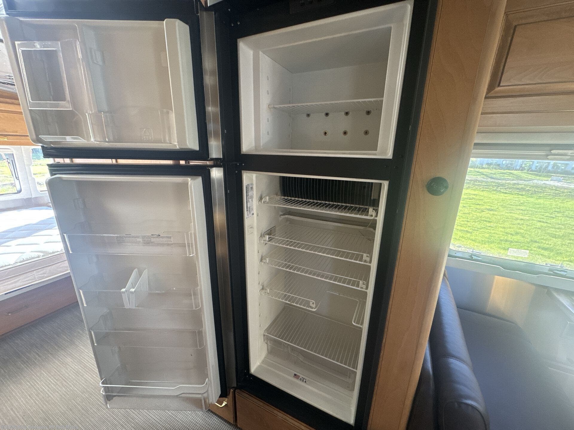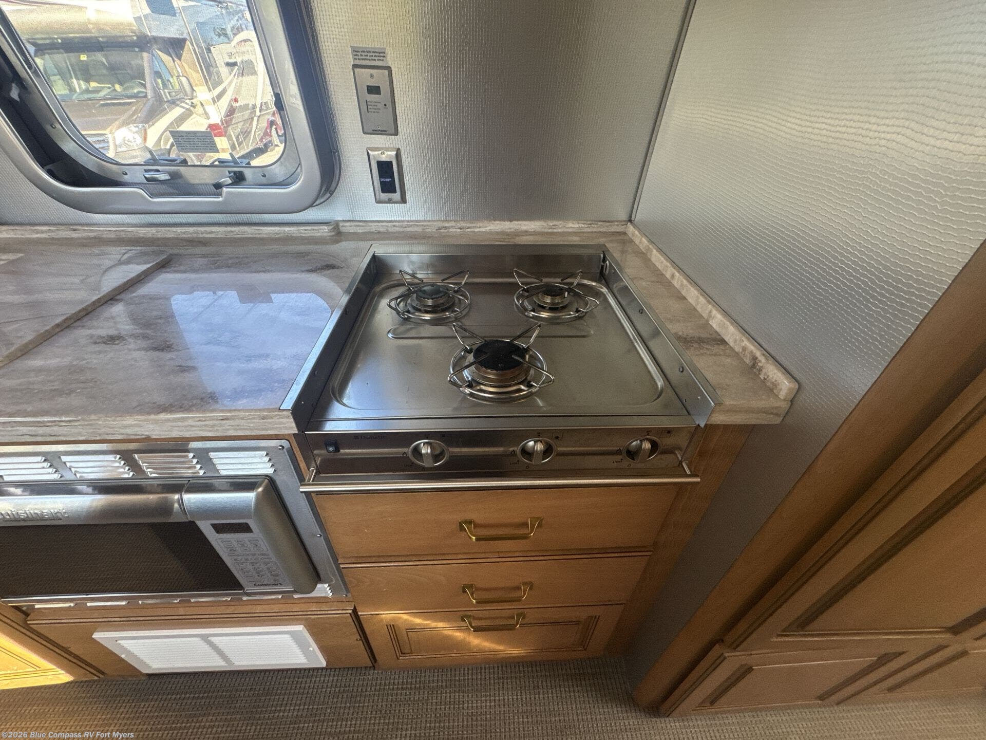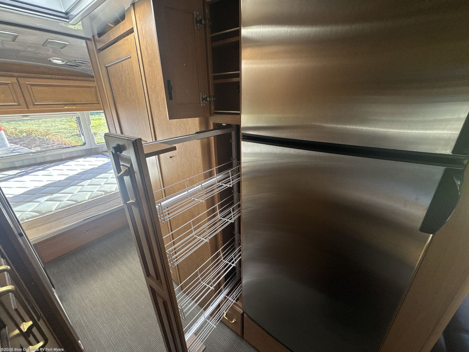 You can easily cook up meals and snacks within the kitchen area provided. There is a large single bowl sink, a convection microwave oven, and a three burner range. You will also find a 9 cu. ft. refrigerator, and a slide out pantry for canned and other food items, plus storage for your daily dishes and other kitchen necessities.