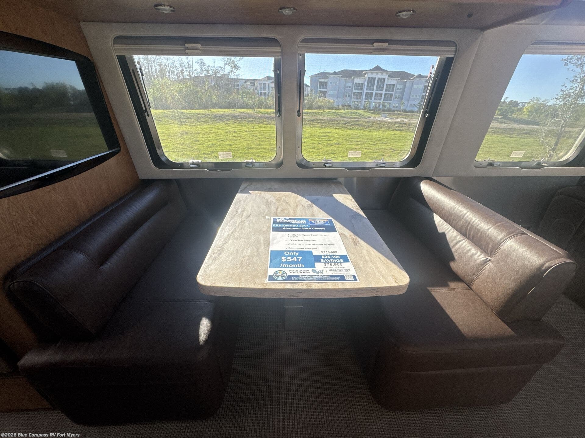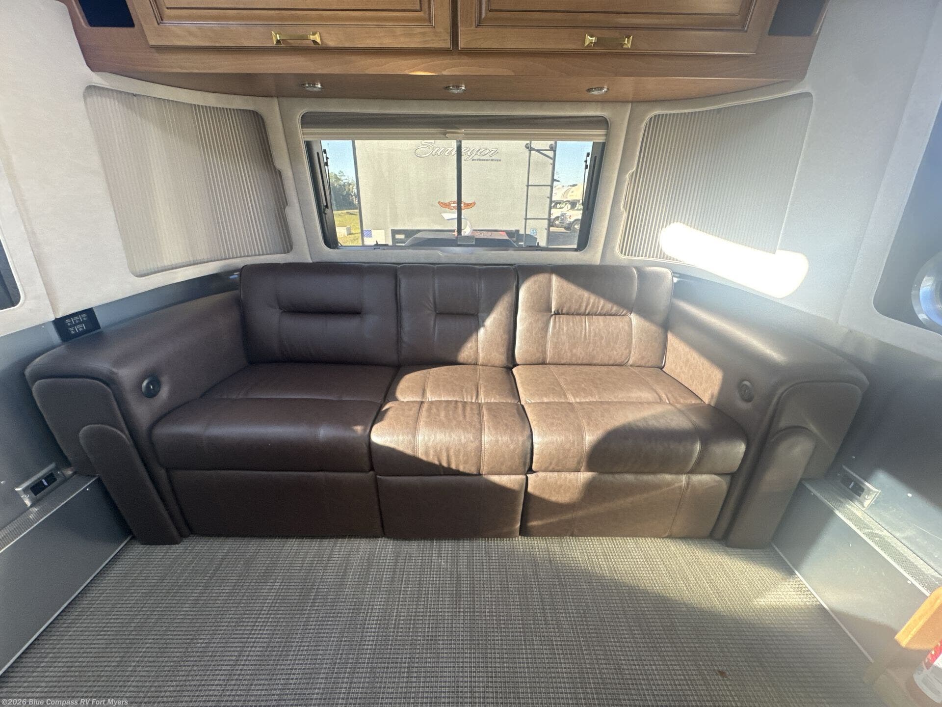 Step inside and find a rear sofa with power recliners. This is the perfect seating spot to enjoy the LED TV found just beyond the booth dinette which features a 42" x 76" bed if needed for an extra traveler.