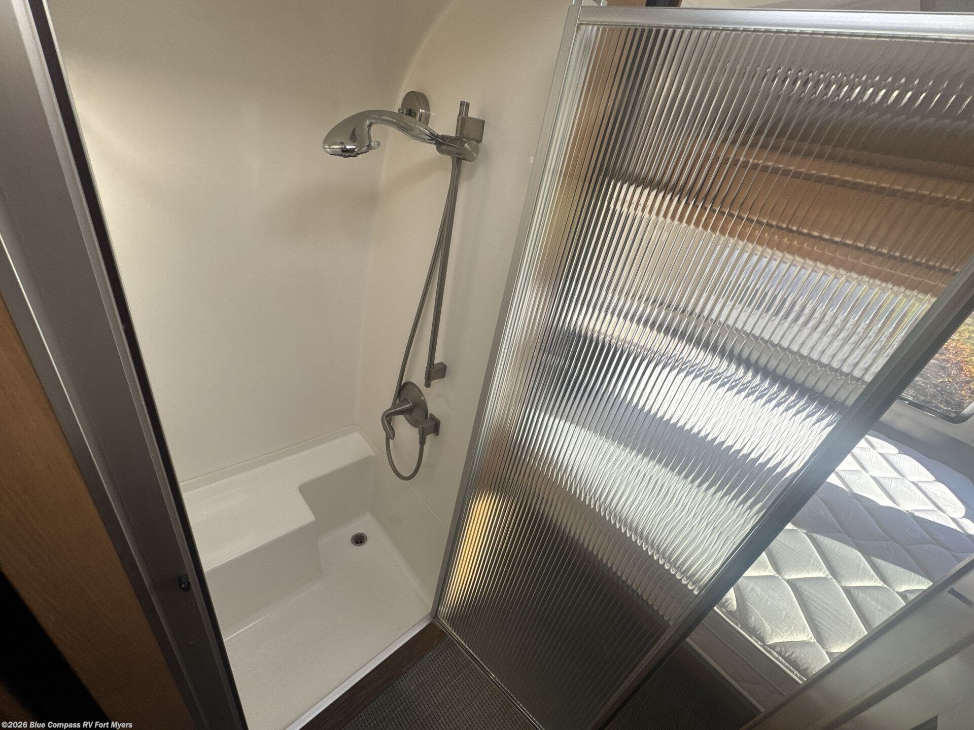 The rear bedroom space offers a power queen bed with nightstands on either side. There is an LED TV off the rear corner of the bed near the shower, plus so much more!