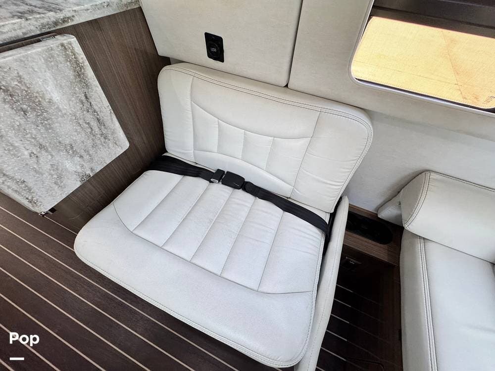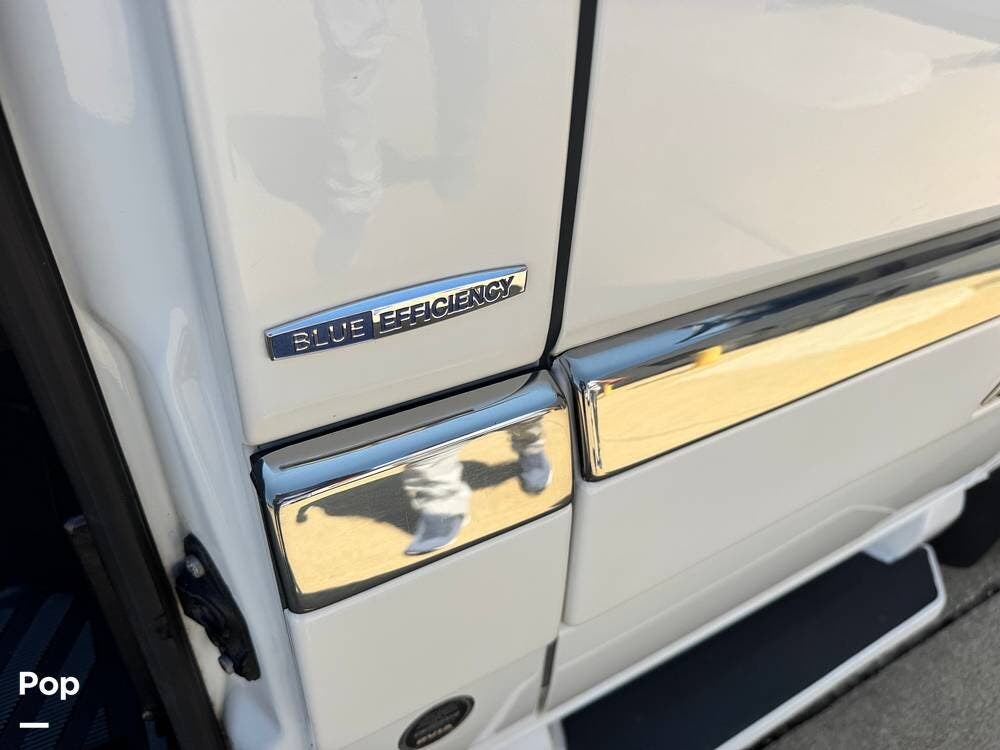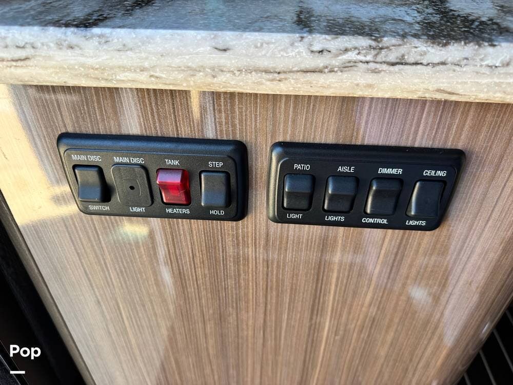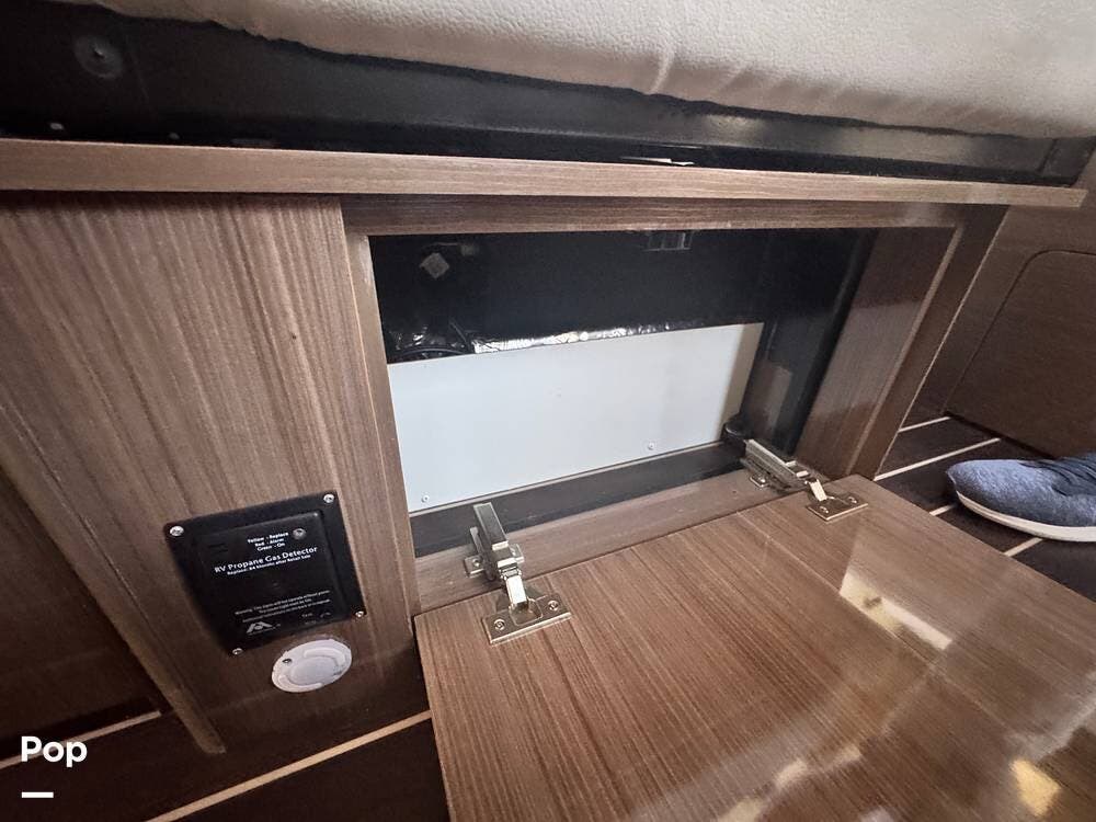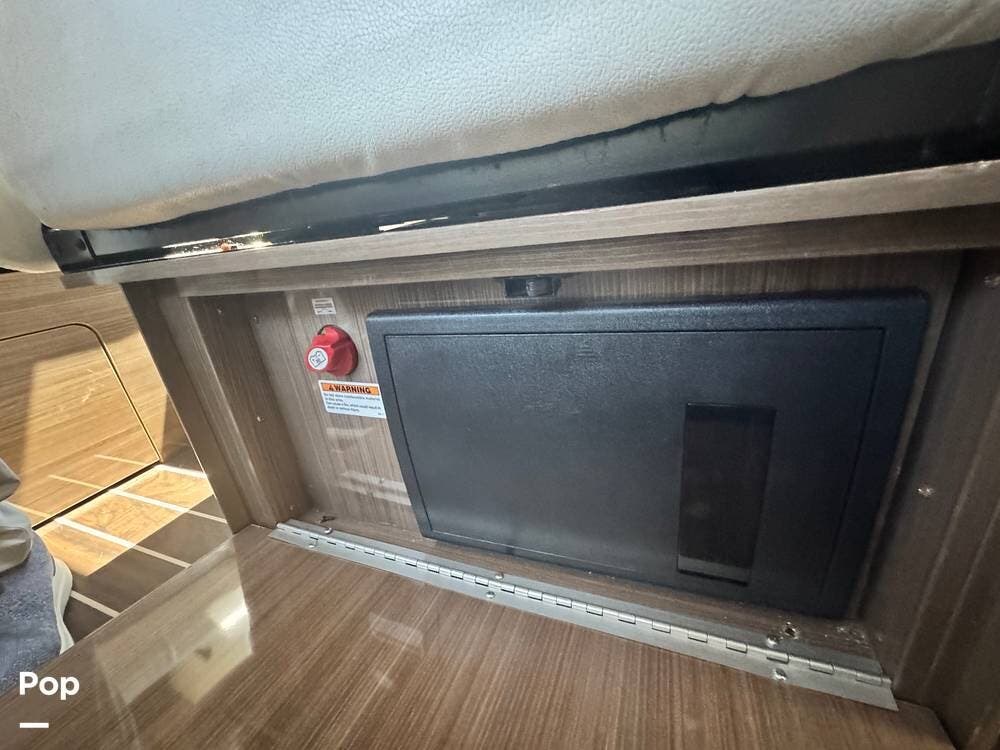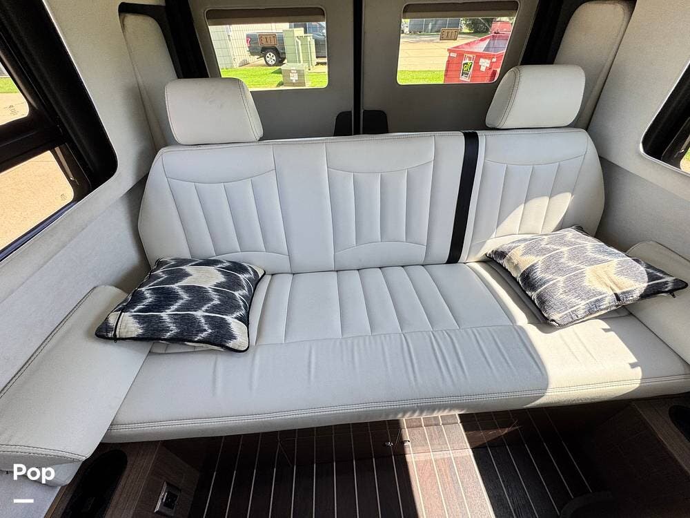 You will love the modern, clean styling amidst a very functional RV. The marine-grade floors are durable, easy to clean, and maintain. This features custom ultra-leather as well as Corian countertops and European-style cabinetry.