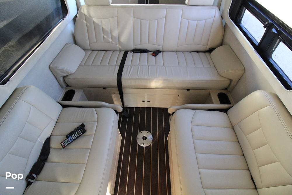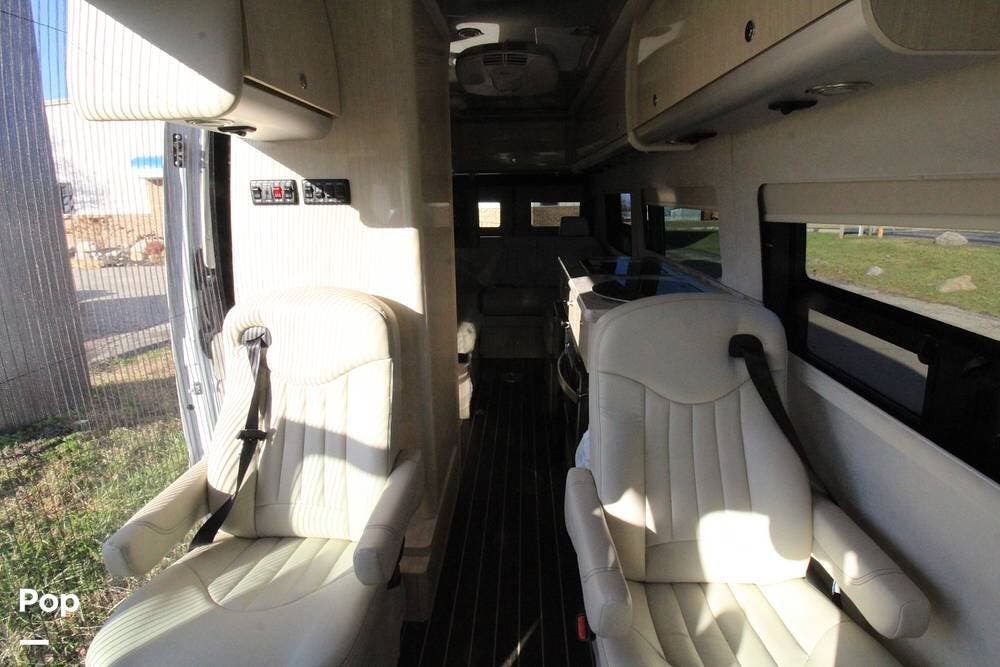 The coach features four (4) captain's chairs up front, a full-width bench in the back, and a side-mounted jump seat.