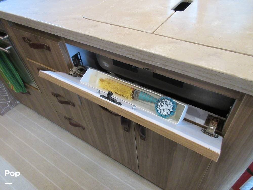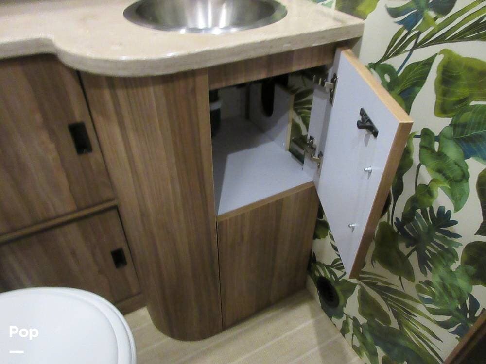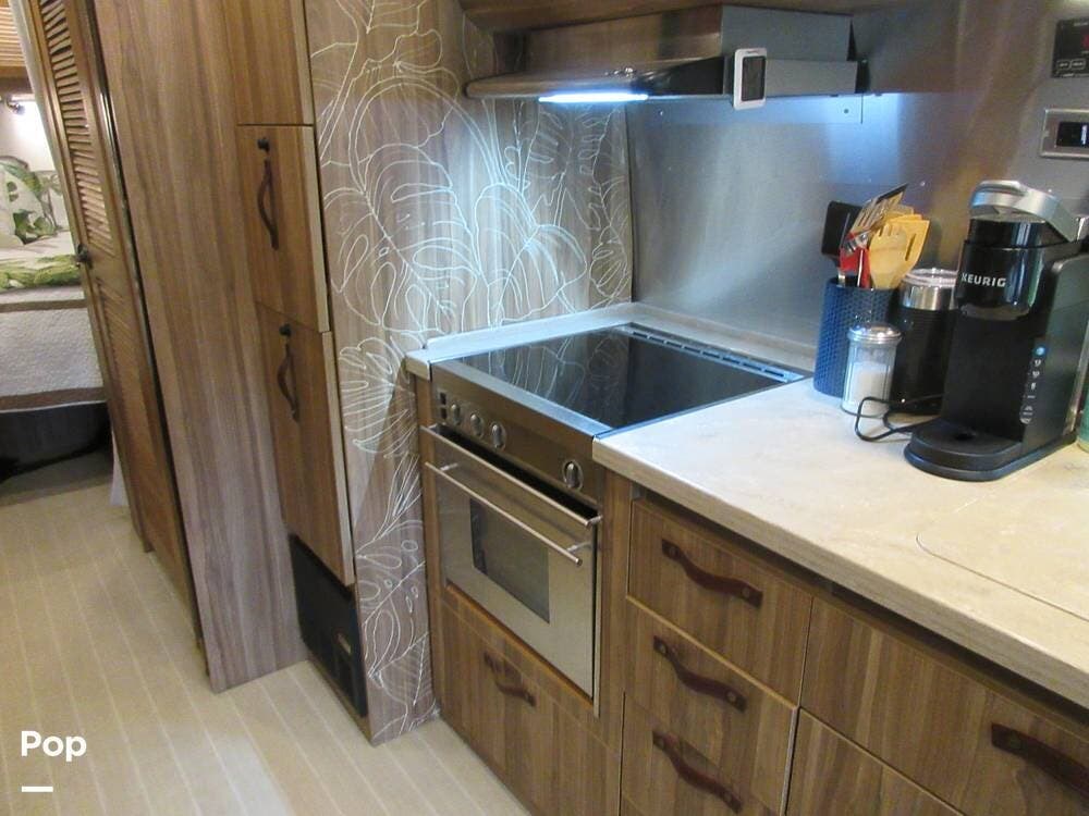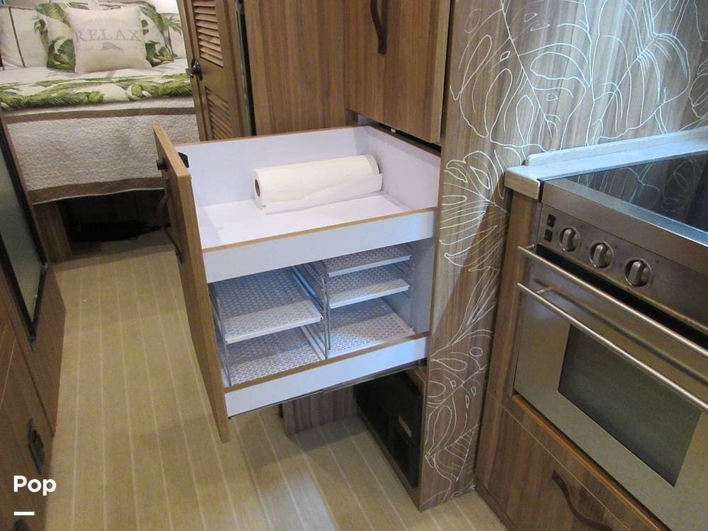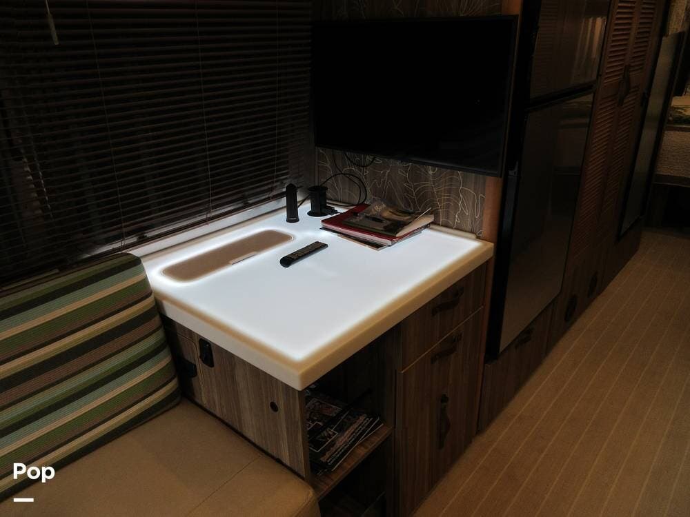 Do you like to cook? This kitchen has plenty of counter and cabinet space and is equipped with a stove, microwave, oven, and refrigerator. Entertainment is at your fingertips with a stereo, DVD player, and two TVs. This Bahama model has an illuminated wine bar for serving concoctions and spirits.