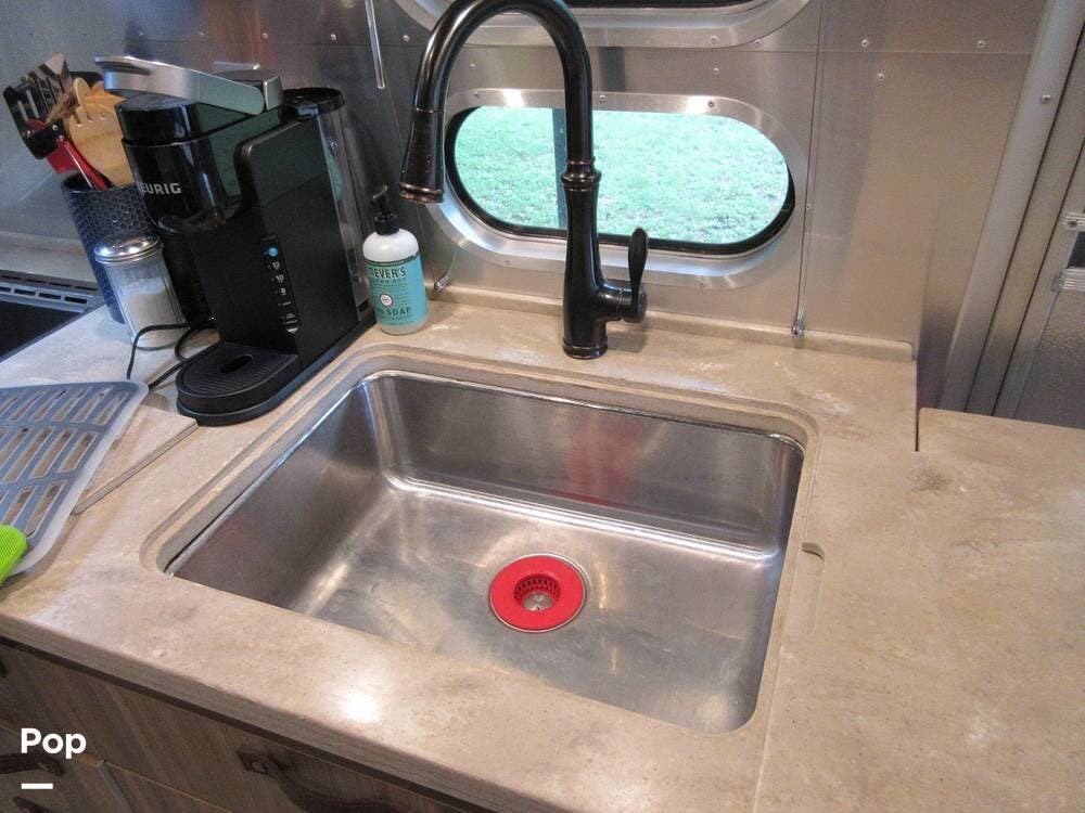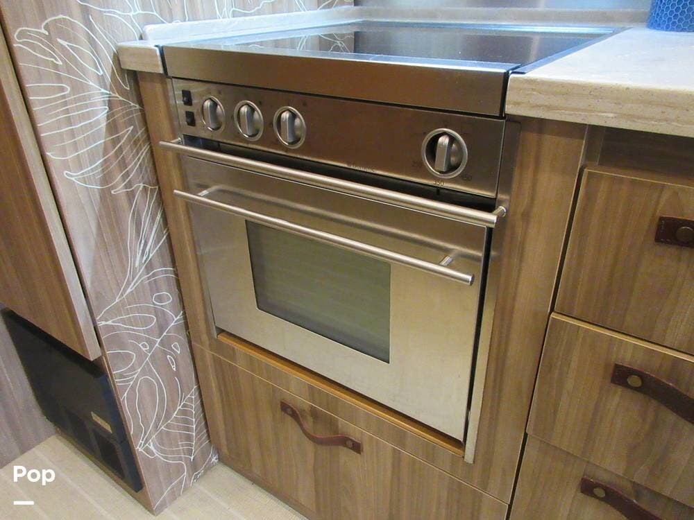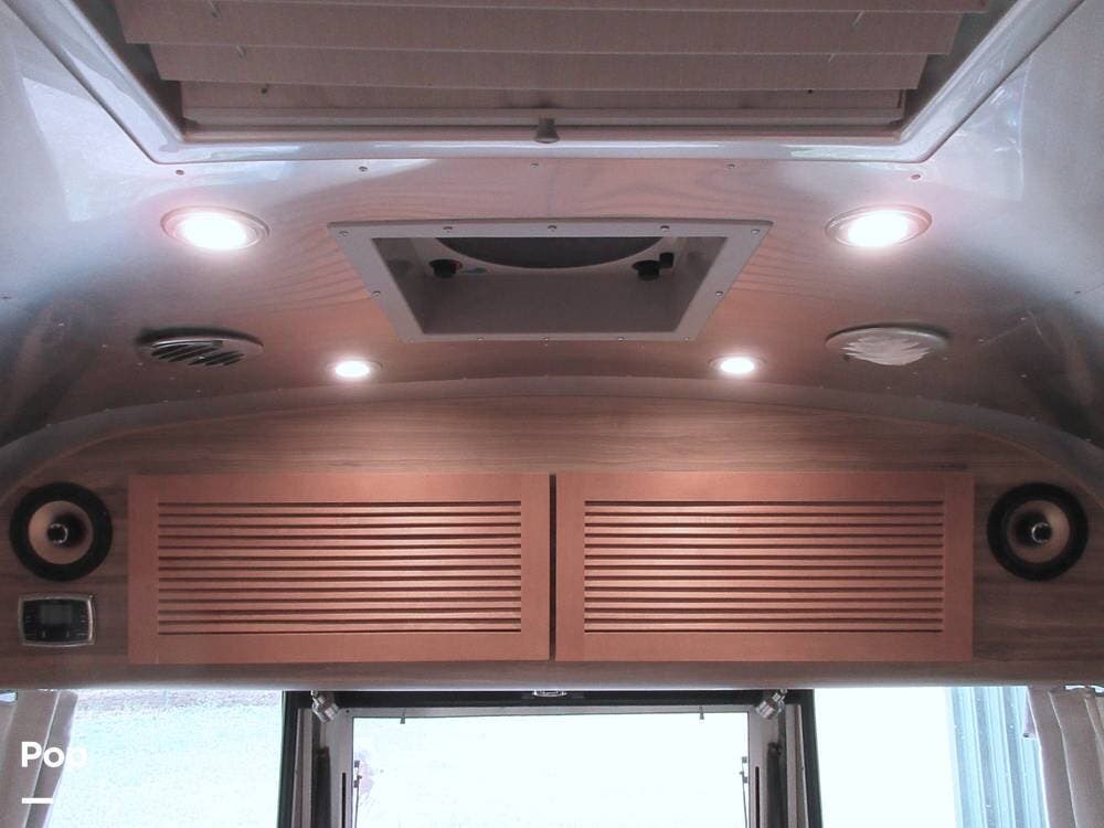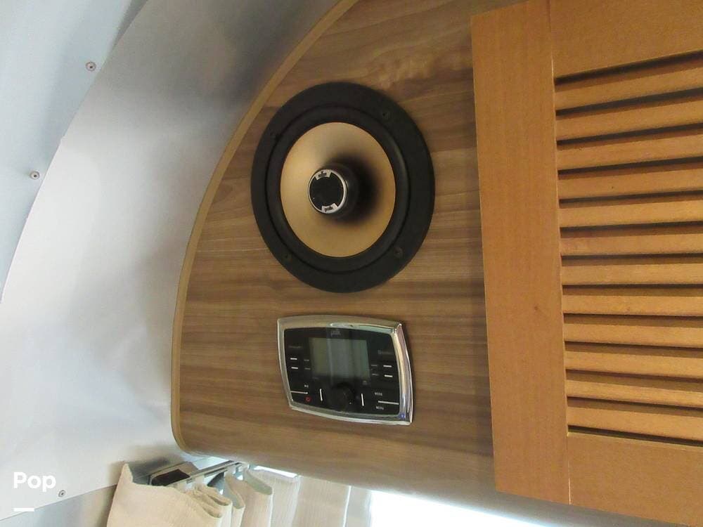 As with any high-end Airstream, the list of features is extensive. Extras include a powered patio awning, window awnings, powered stabilizer jacks, a tankless water heater, a Winegard antenna, a cell phone booster, a Polk audio sound system, and more.