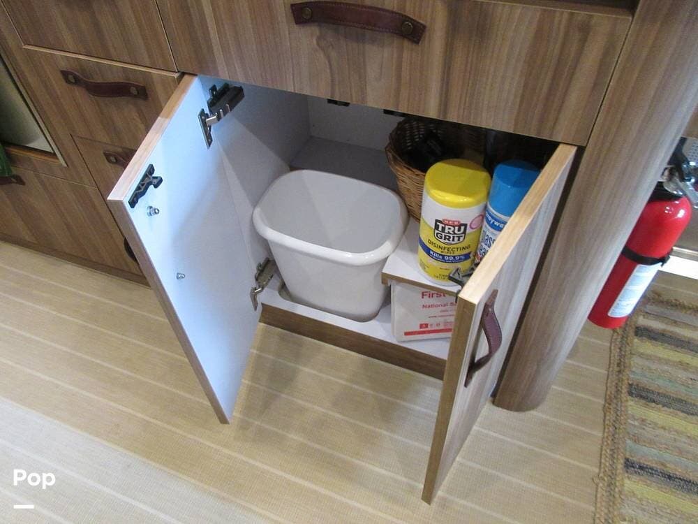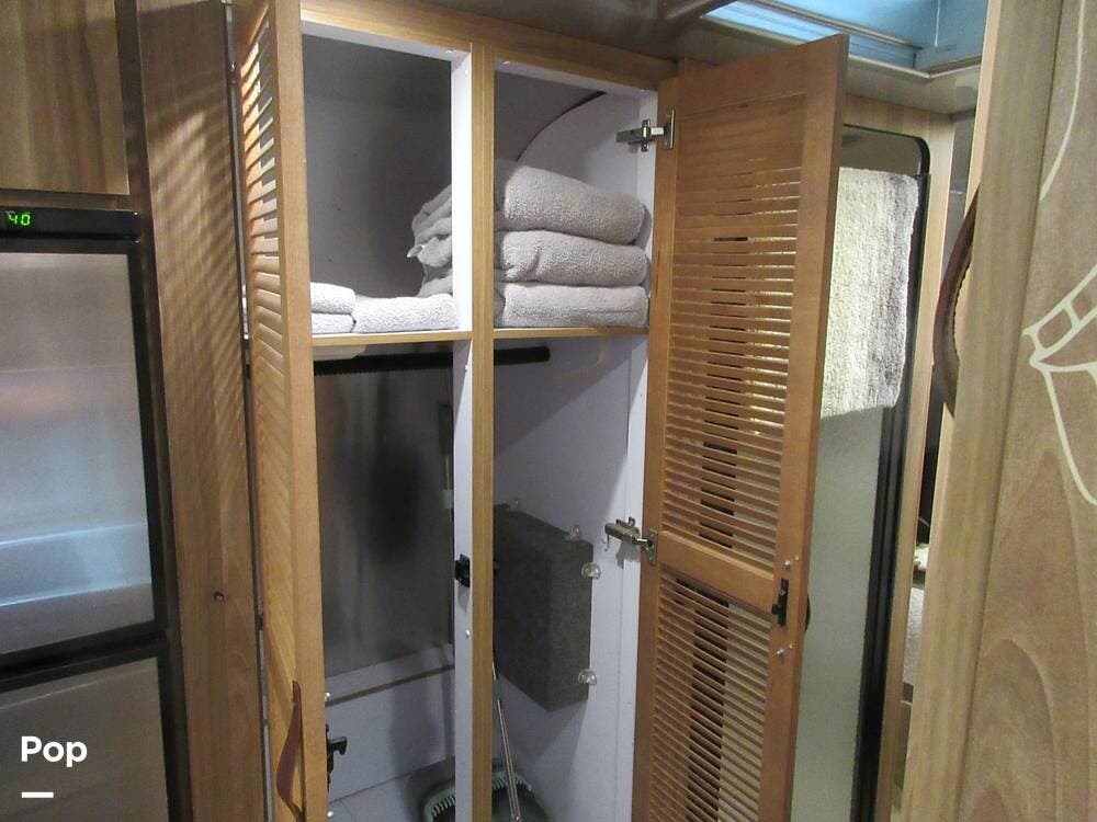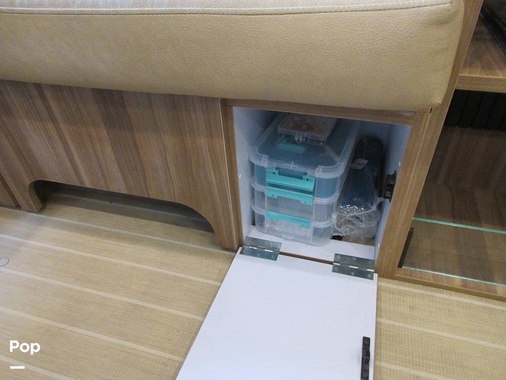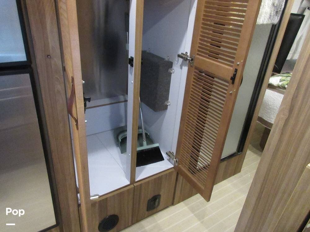 Storage is not a problem in this 27FB. You will find plenty of space available in the exterior front compartment, the interior overhead compartments along each wall, the storage closet in the hallway, and compartments under the queen bed.