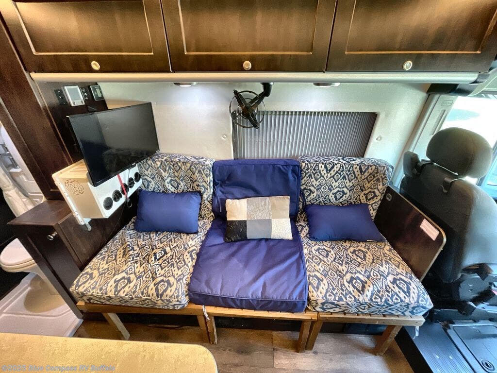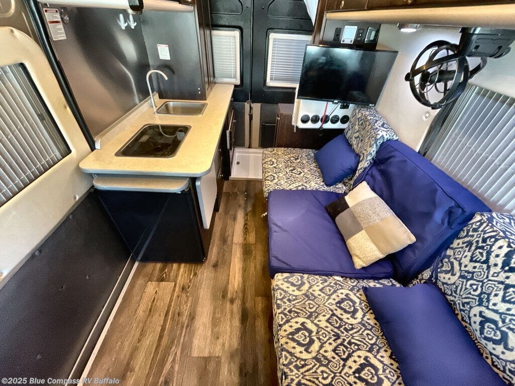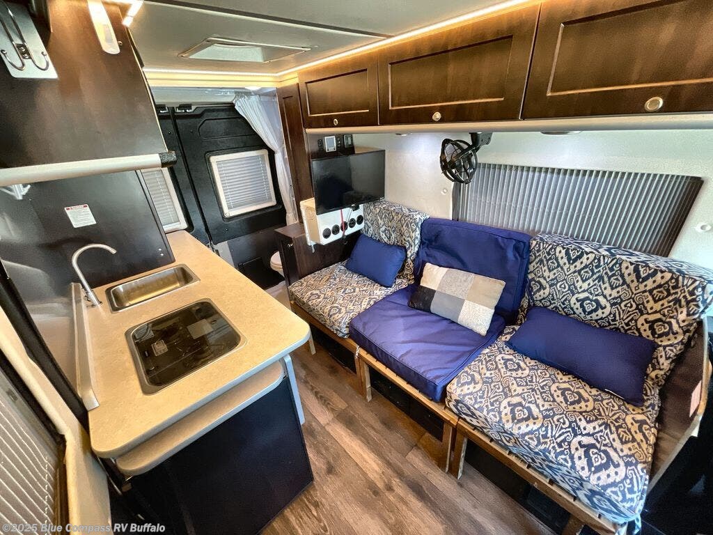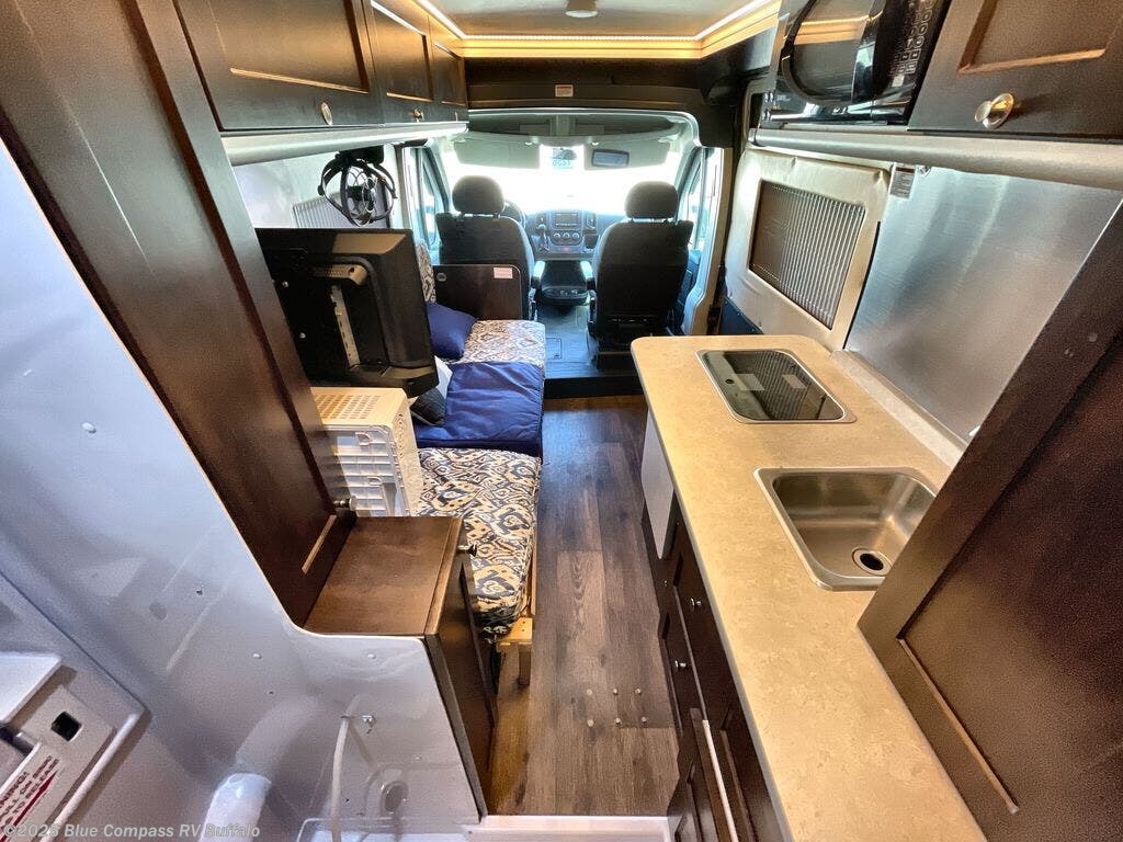 There’s so much to see when you’re exploring with the Axion. Experience the comfort and ease of driving with the Axion’s shorter exterior length of 17’9” while still offering the conveniences of home. A compact floor plan packs a lot for its size, allowing you to enjoy a fully equipped kitchen with 2-burner propane stove, refrigerator, microwave, sink, expanding countertop and pantry storage. Easily set up the front table and swivel the captain’s chairs or sit back on the couch for a well-prepared meal and card game, or pop-up the computer desk for a handy work station. The rear wardrobe has ample storage and includes multiple drawers and a sliding shirt hanger to serve all your needs. The Axion interior can be accessed from both the passenger side door and rear doors, which makes storing bulky items a breeze, prevents tracking dirt throughout the coach, and allows you to use the facilities without having to rearrange your space. The convertible couch offers the option of a double or twin bed, while the large panel windows encourages you to admire the scenery before closing the privacy shade when you are ready to call it a night.