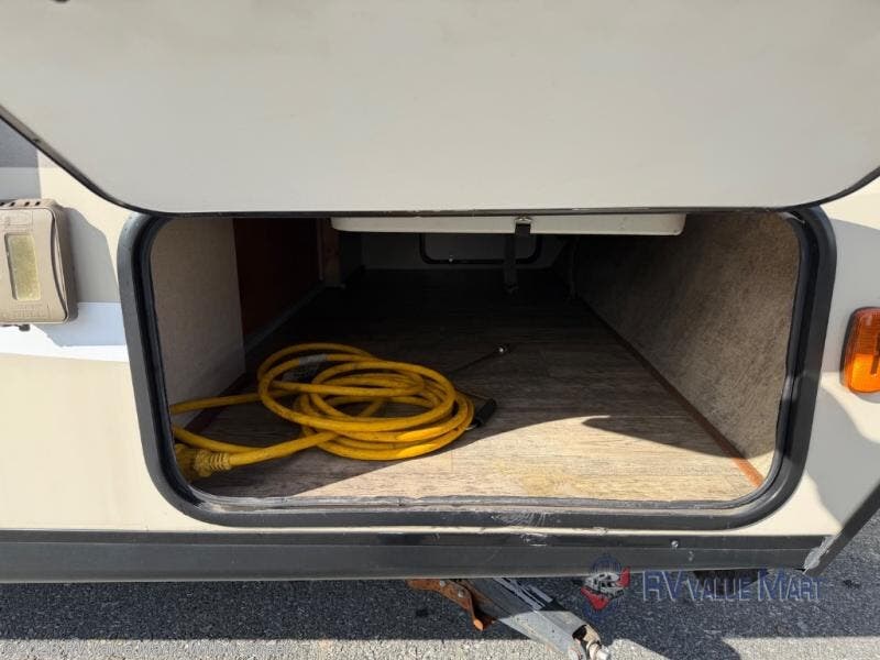 There is also a pass-thru compartment up front that can be accessed by two large exterior doors. This is perfect storage for all of your outdoor camping gear, plus so much more!