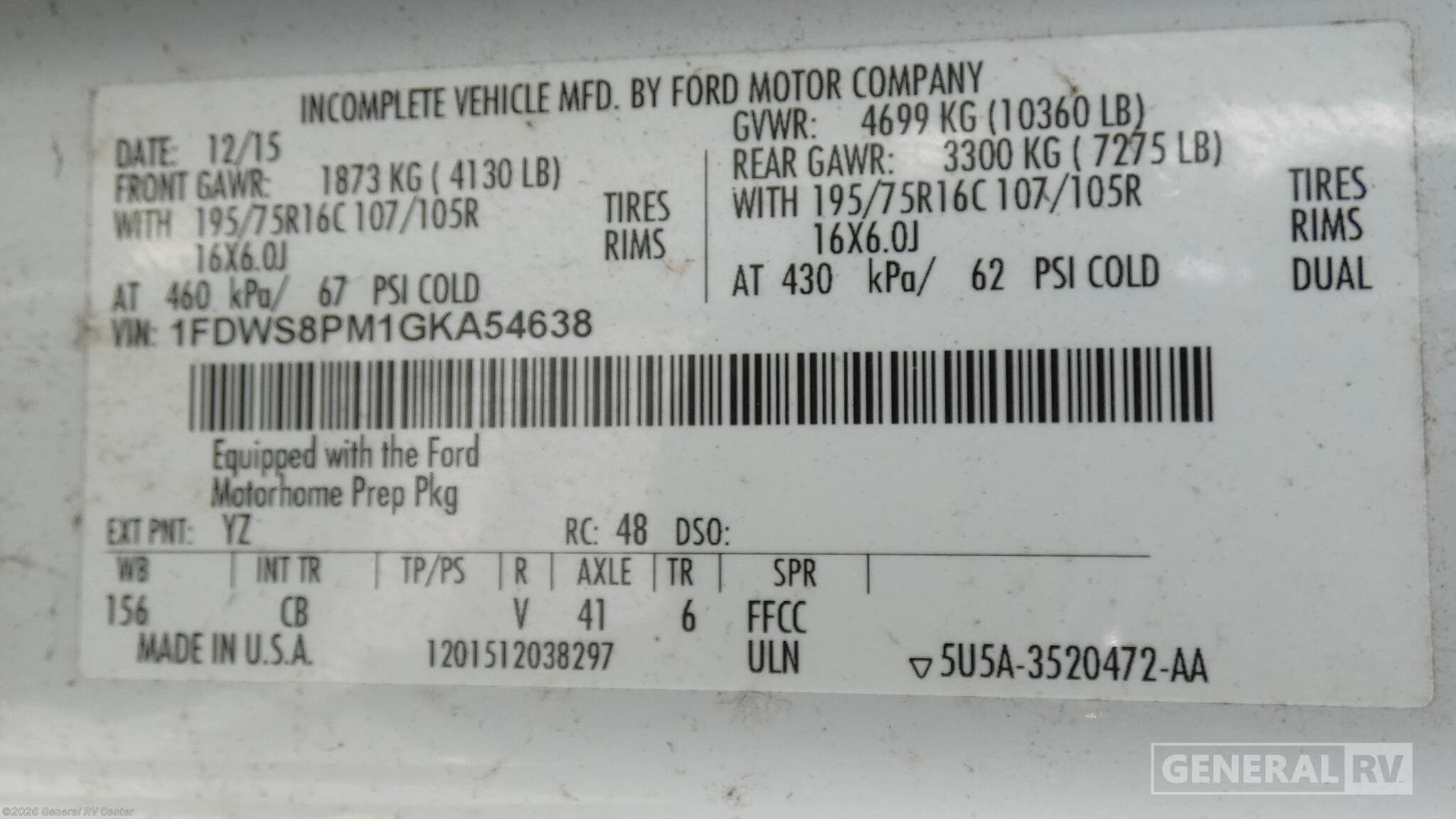 - VIN1FDWS8PM1GKA54638.